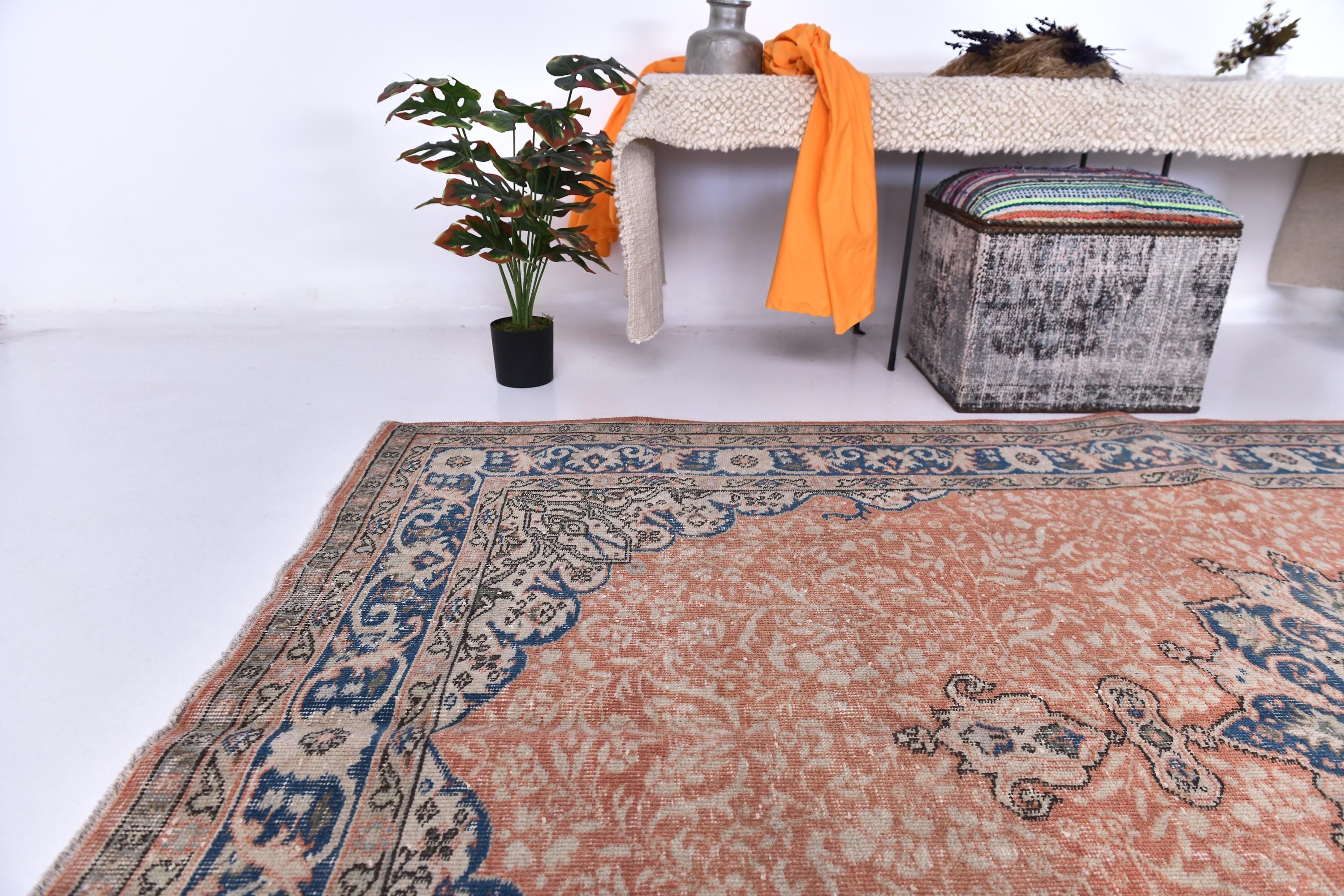 -**Choosing our Vintage Turkish Rug**: means bringing home more than just a **decorative item**—it’s an investment in artistry, history, and soul. **Each rug is hand-knotted** by **master artisans** using **time-honored techniques** and **high-quality wool or cotton,** giving every piece its own **unique** character. **Unlike machine-made rugs,** **vintage Turkish rugs** have a patina and richness that only age can provide. Their **faded colors** and **organic patterns** tell stories of the past while seamlessly fitting into **modern interiors.** They are perfect for those who **value authenticity**, **durability,** and **timeless beauty.** Whether you're **redecorating your living room,** **bedroom,** or **dining room,** a **vintage Turkish rug** will add warmth, elegance, and a sense of worldliness **to your home**. Our curated collection ensures each rug is ethically sourced, professionally cleaned, and ready to grace your space with its **unique charm.**