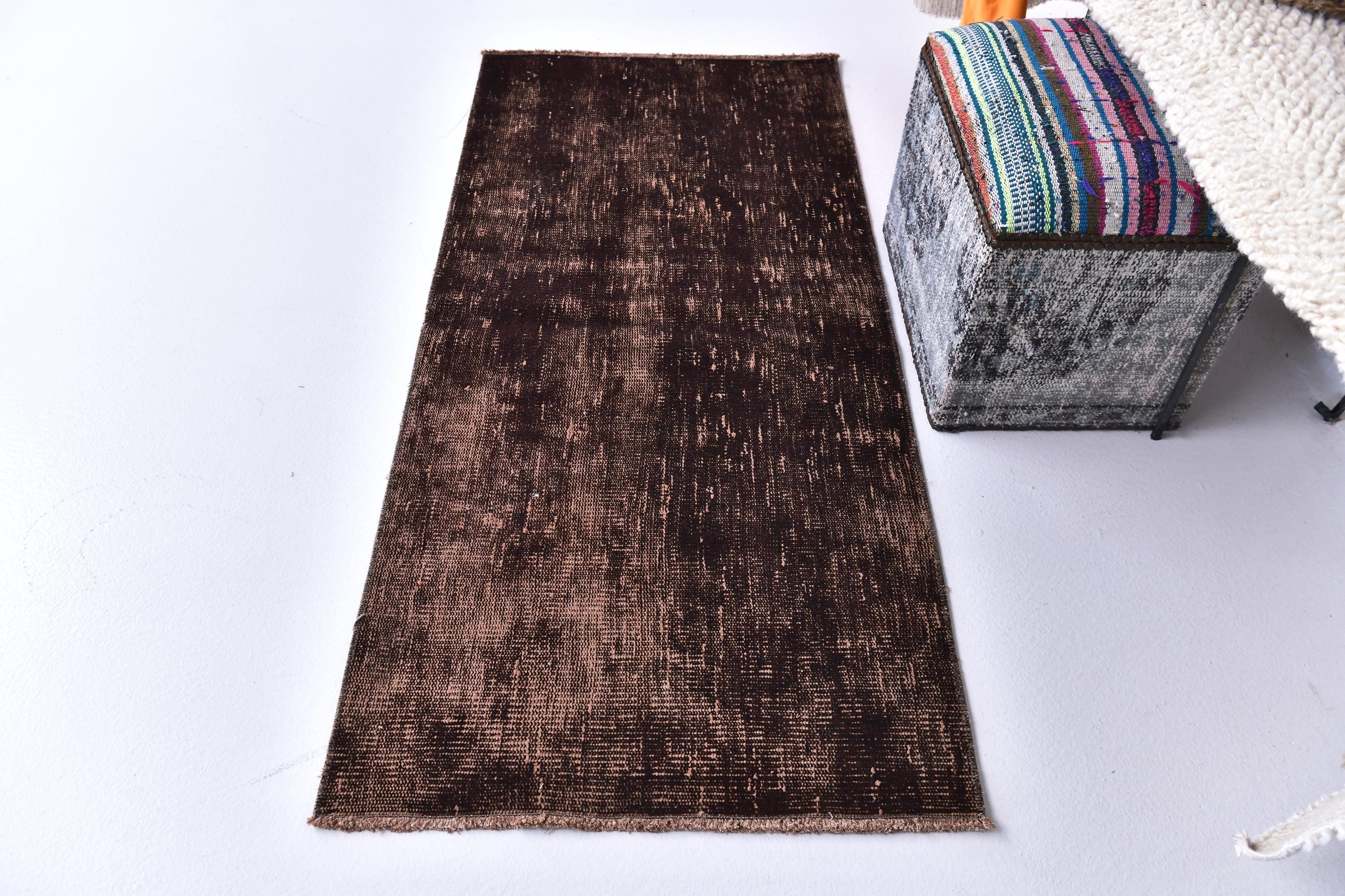 📜📌Vintage hand-knotted Turkish runner rug with heavily distressed and worn appearance featuring beige center field and navy blue floral borders. The narrow wool runner displays authentic aged patina with visible low pile, faded tan and coral tones, perfect for hallways and entryways seeking rustic charm.