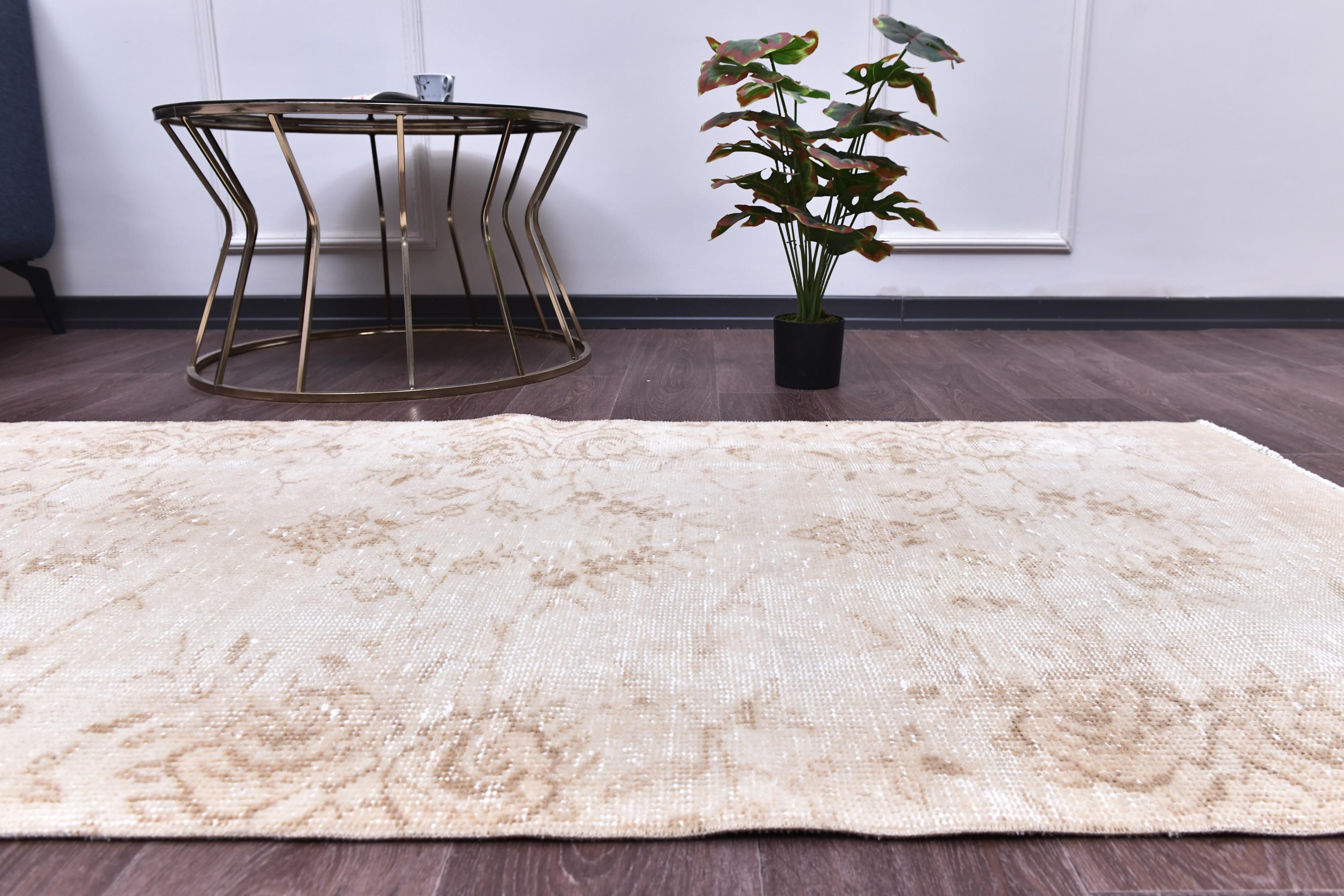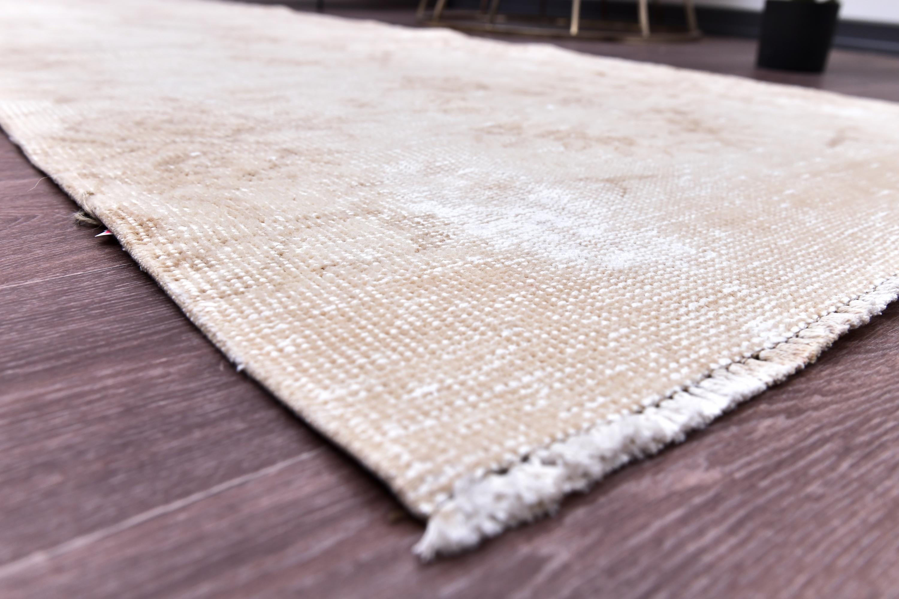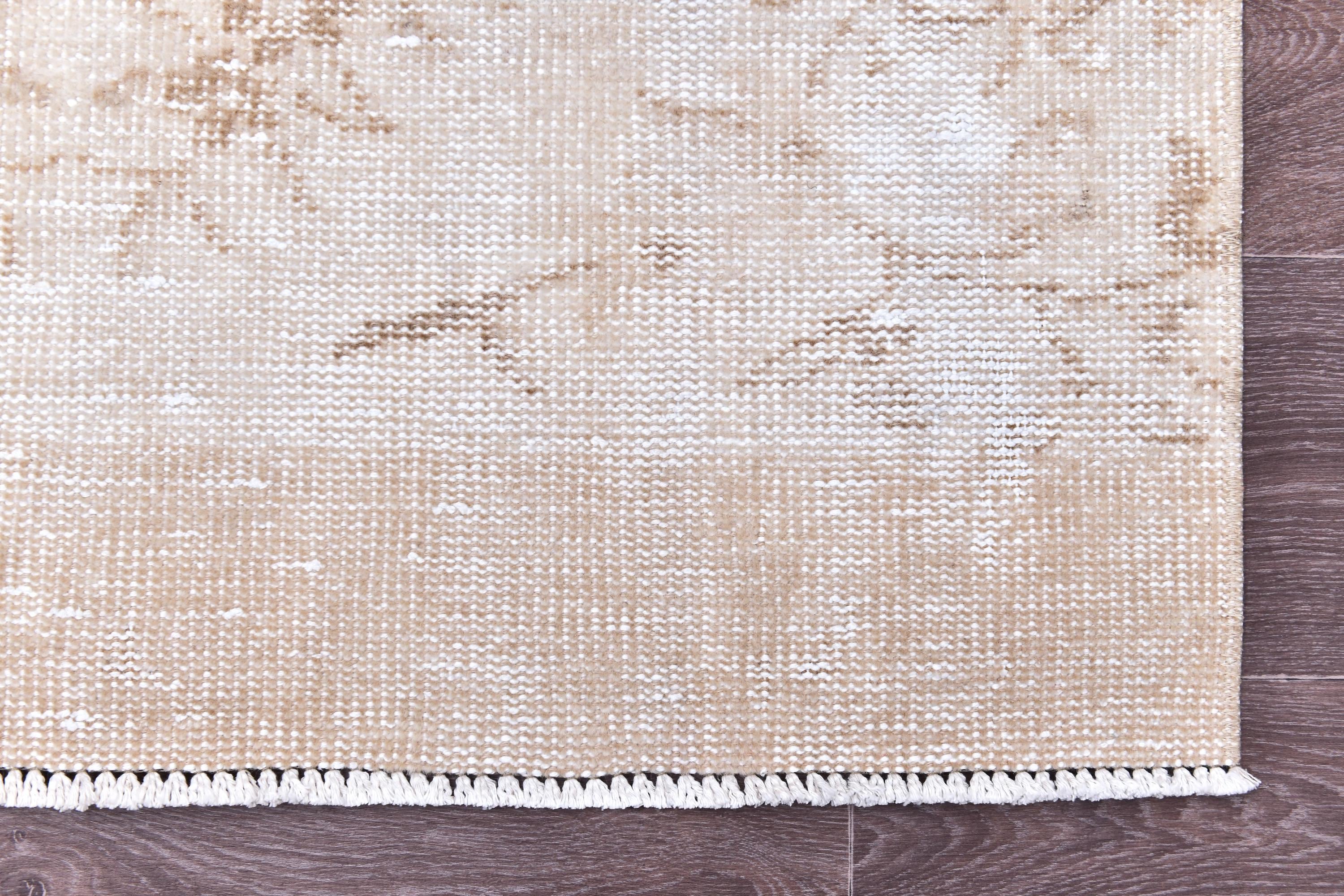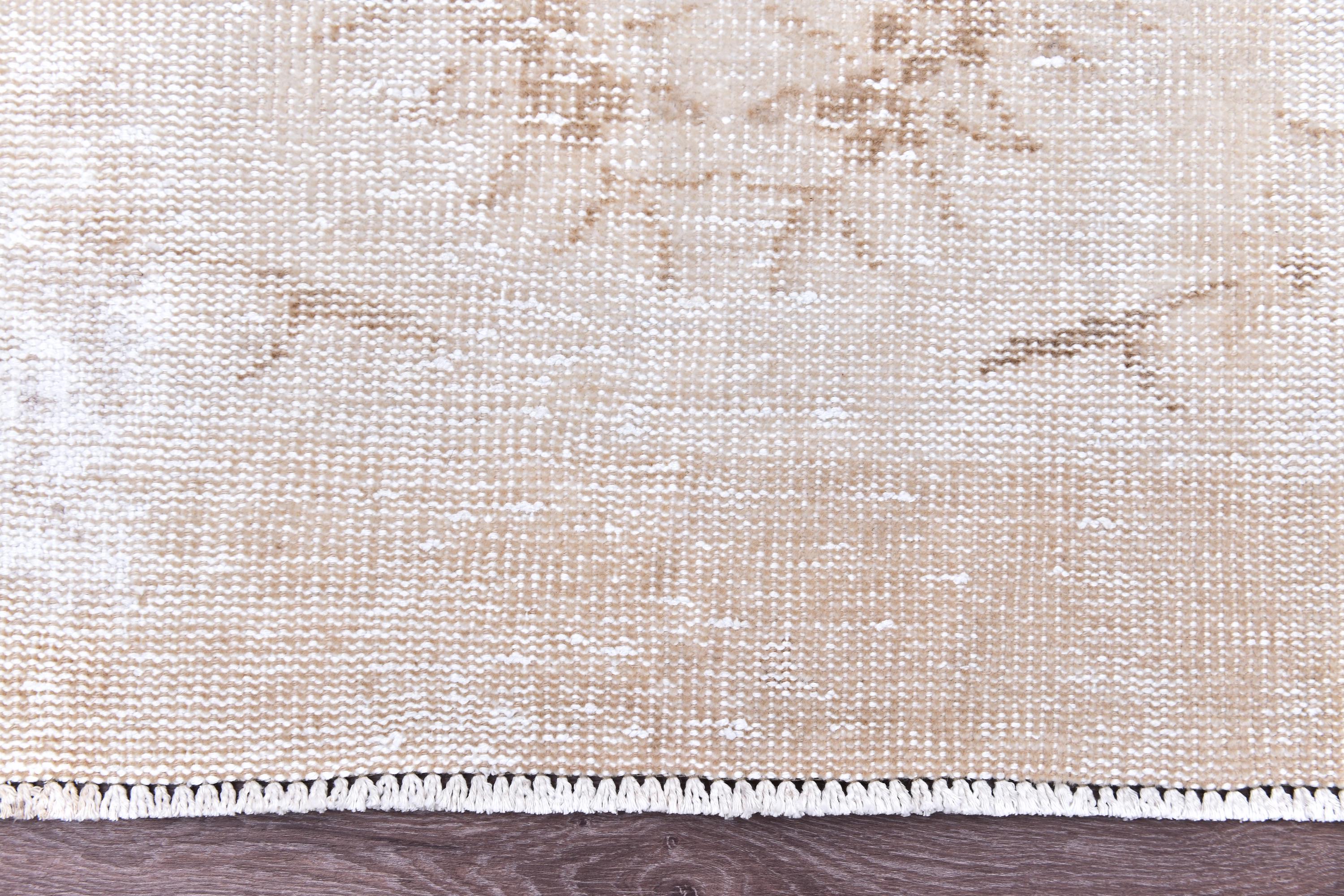📜📌 Vintage Turkish runner rug in soft beige and cream tones with faded floral medallion patterns. Long narrow hand-knotted wool hallway carpet featuring distressed vintage patina, subtle botanical motifs, and neutral color palette. Perfect for hallways, kitchens, or narrow spaces in bohemian or farmhouse style homes.
