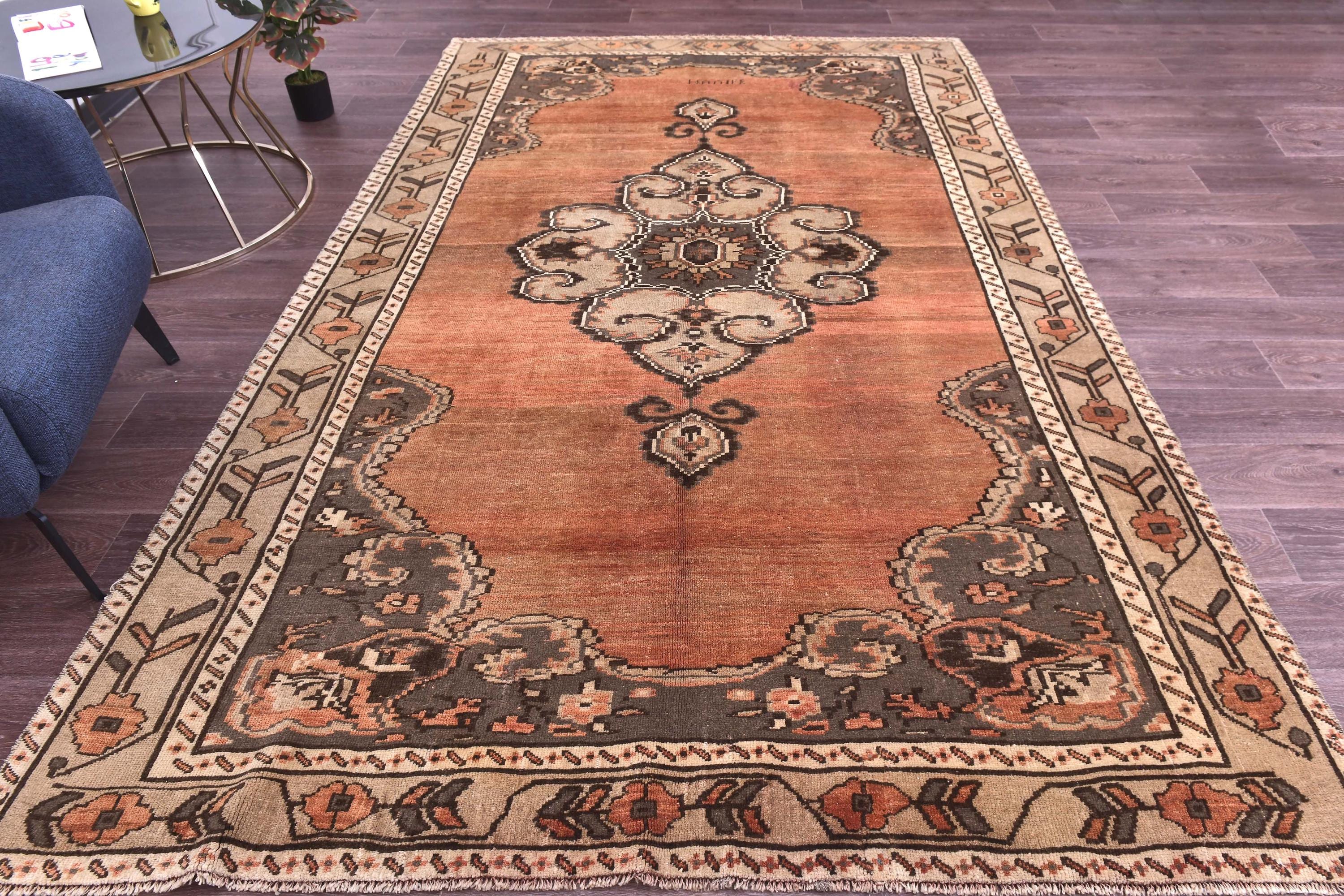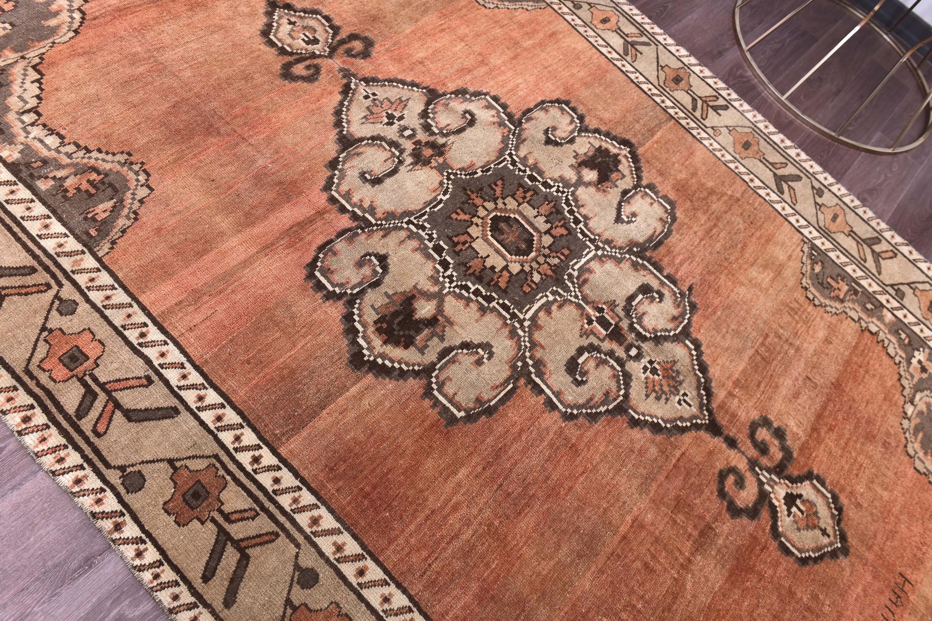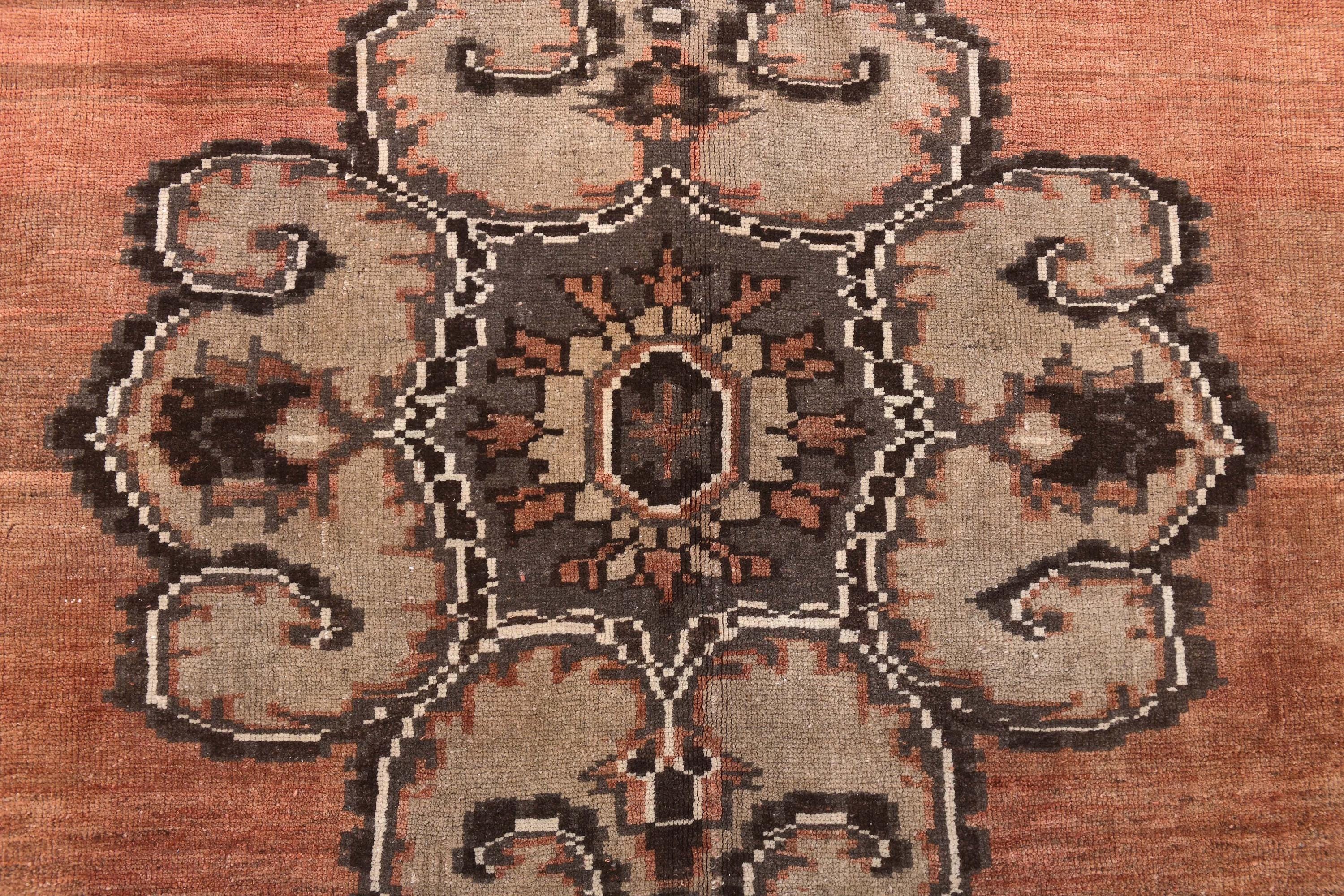 📜📌 Beautiful large oriental carpet showcasing classic medallion centerpiece in terracotta brown tones with intricate corner spandrels, decorative borders, and authentic aged patina perfect for traditional decor.