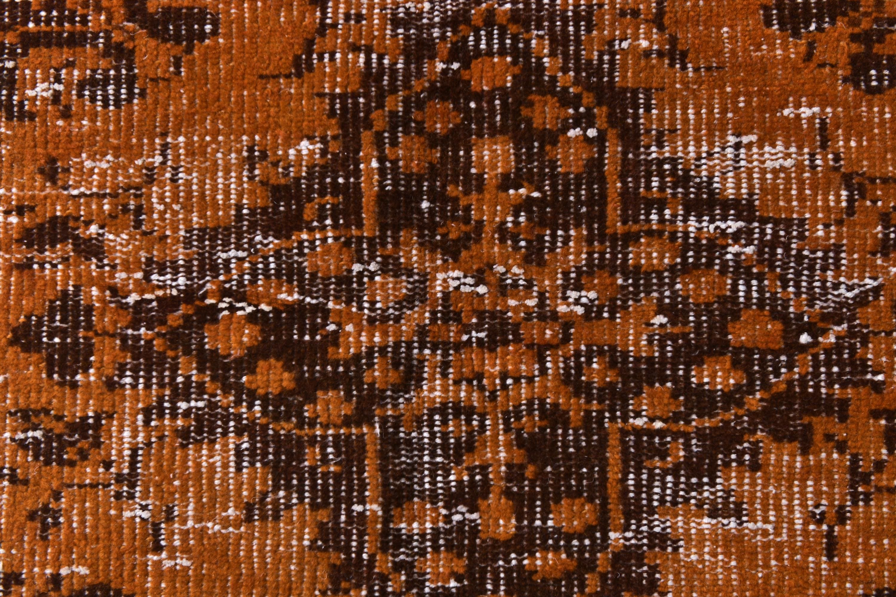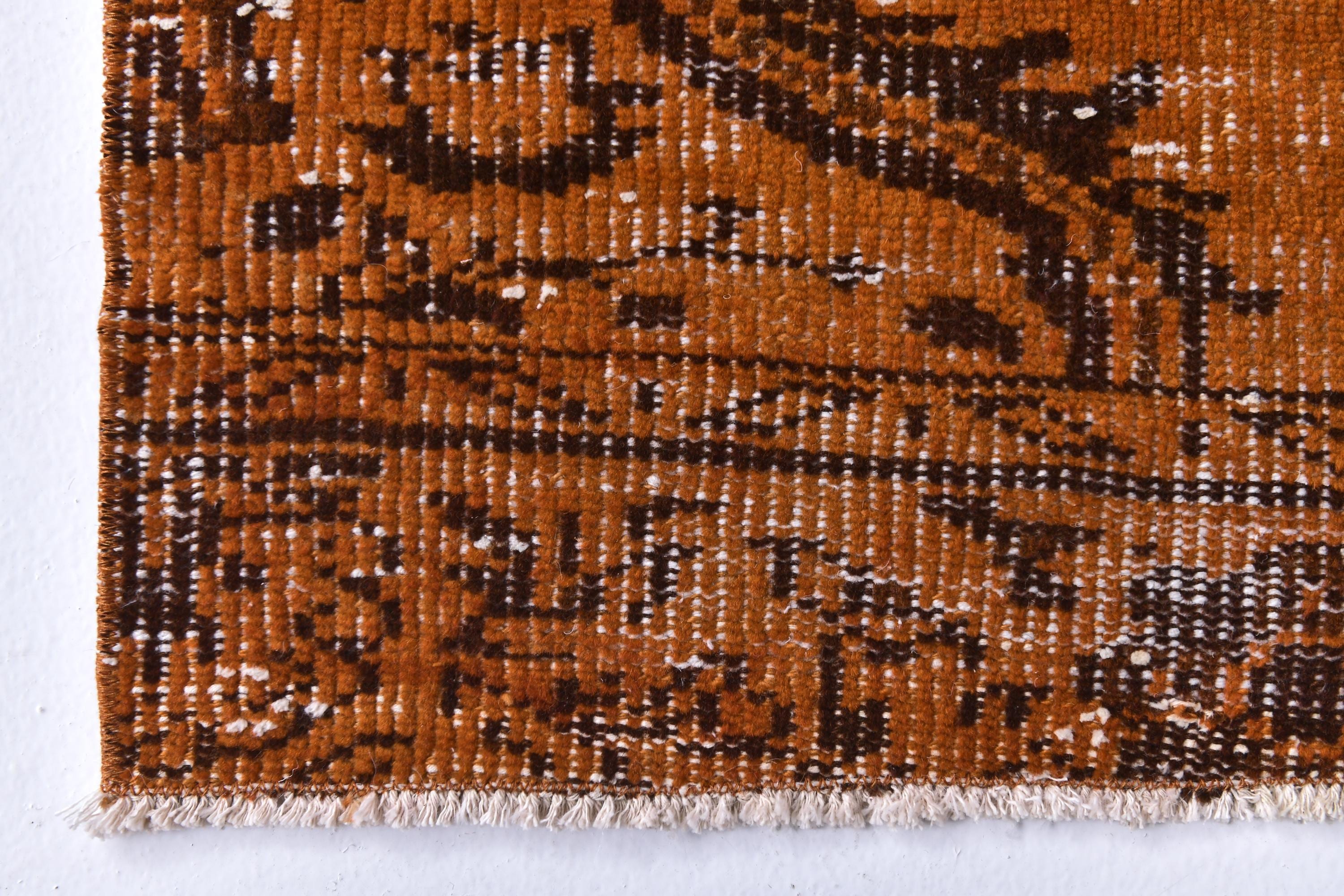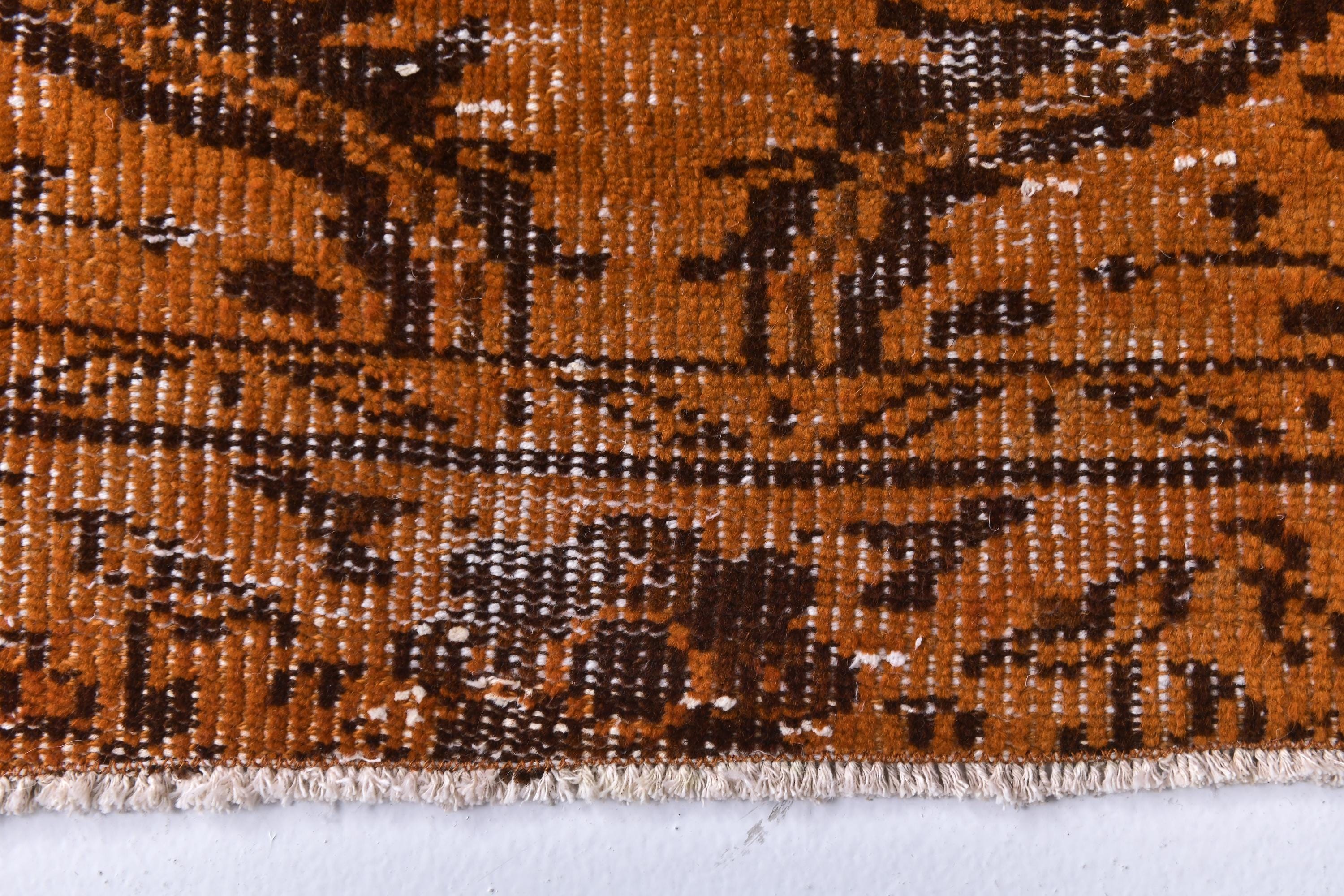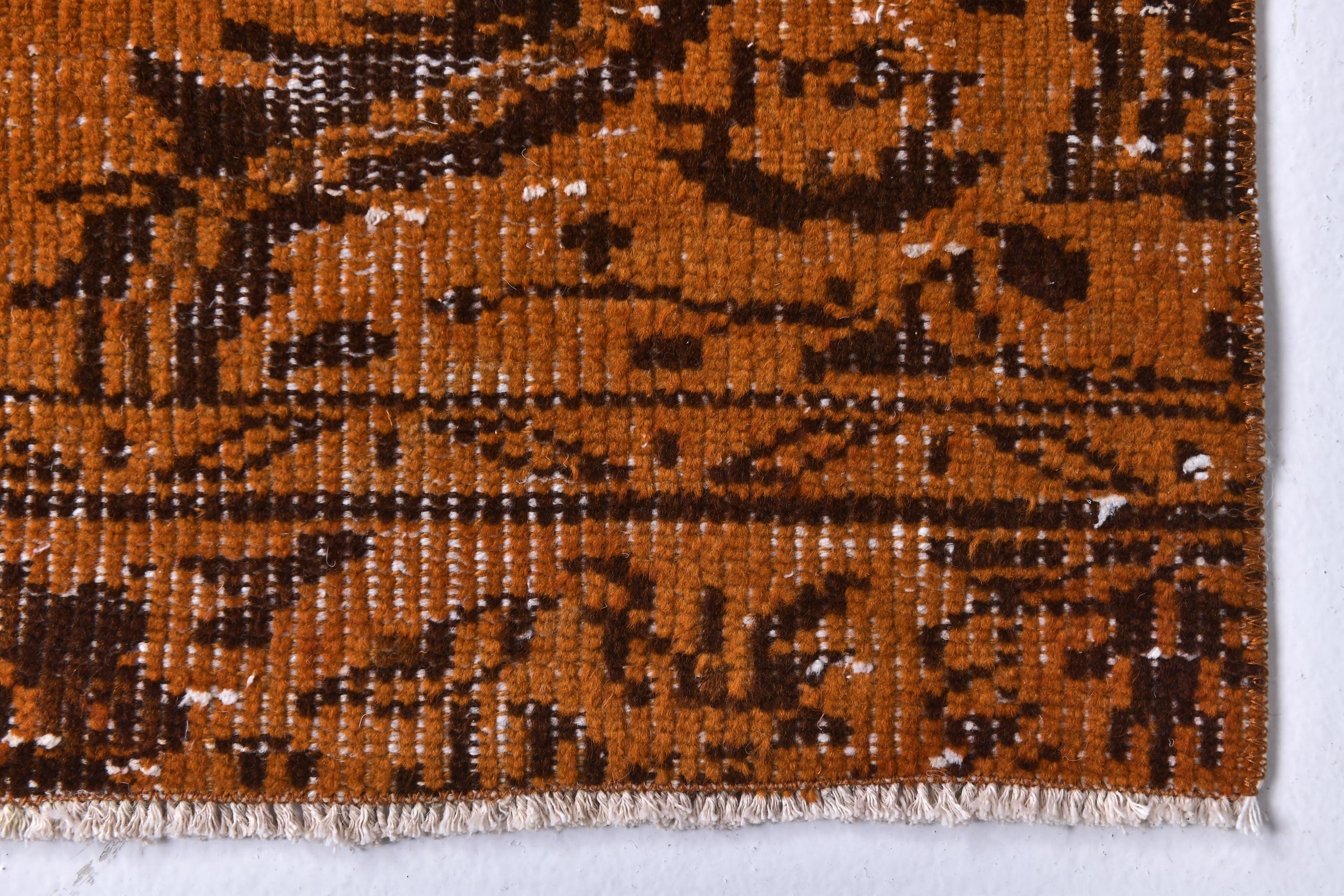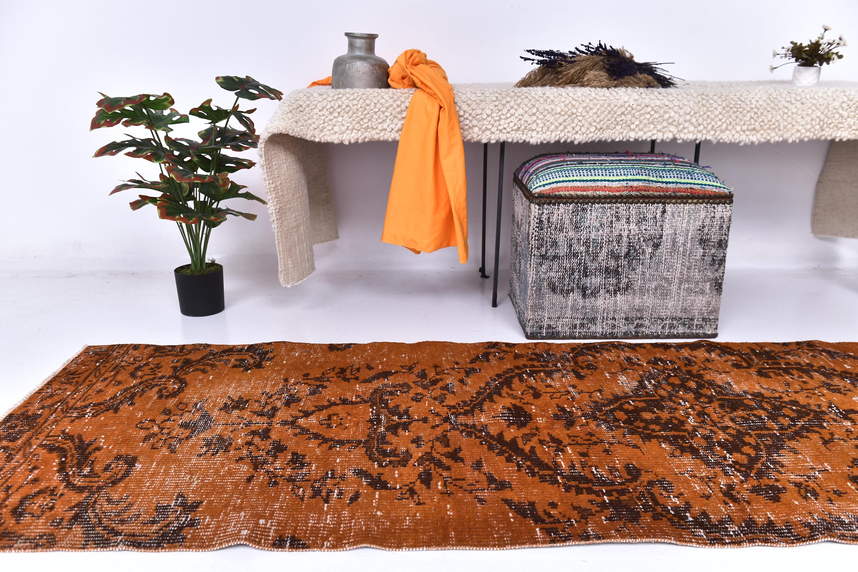 📜📌 Vintage Turkish runner rug featuring sophisticated faded color palette with rich terracotta and black tones, showcasing intricate all-over floral vine pattern with traditional ornate borders, hand-knotted low pile wool with authentic distressed texture and naturally worn appearance, perfect long narrow carpet for hallways, entryways and corridors in bohemian and vintage inspired interiors