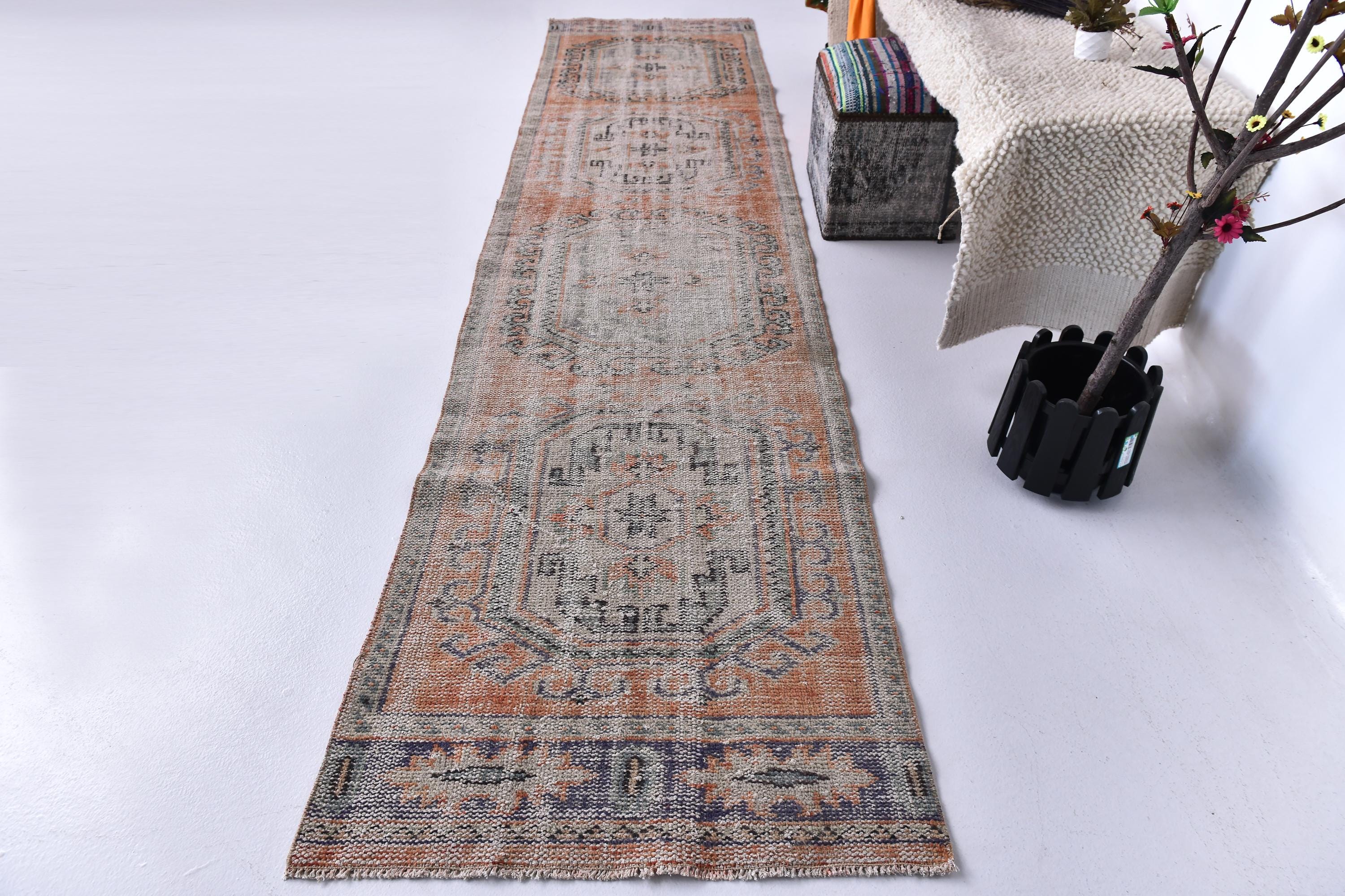 3x13 Vintage Turkish Runner Rug, 3x13 Turkish Hand Knotted Hallway Rug, 3x13 Brown Color Rug, Handmade Wool Rug, 3x13 Wool Hallway Rug, Hallway Decor, 3x13 Handmade Hallway Rug, 3x13 Terracotta Runner Rug, 3x13 Brown Rug, Soft Wool Rug, Tribal Rug, Doorway Rug, 3x13 Vintage Runner,