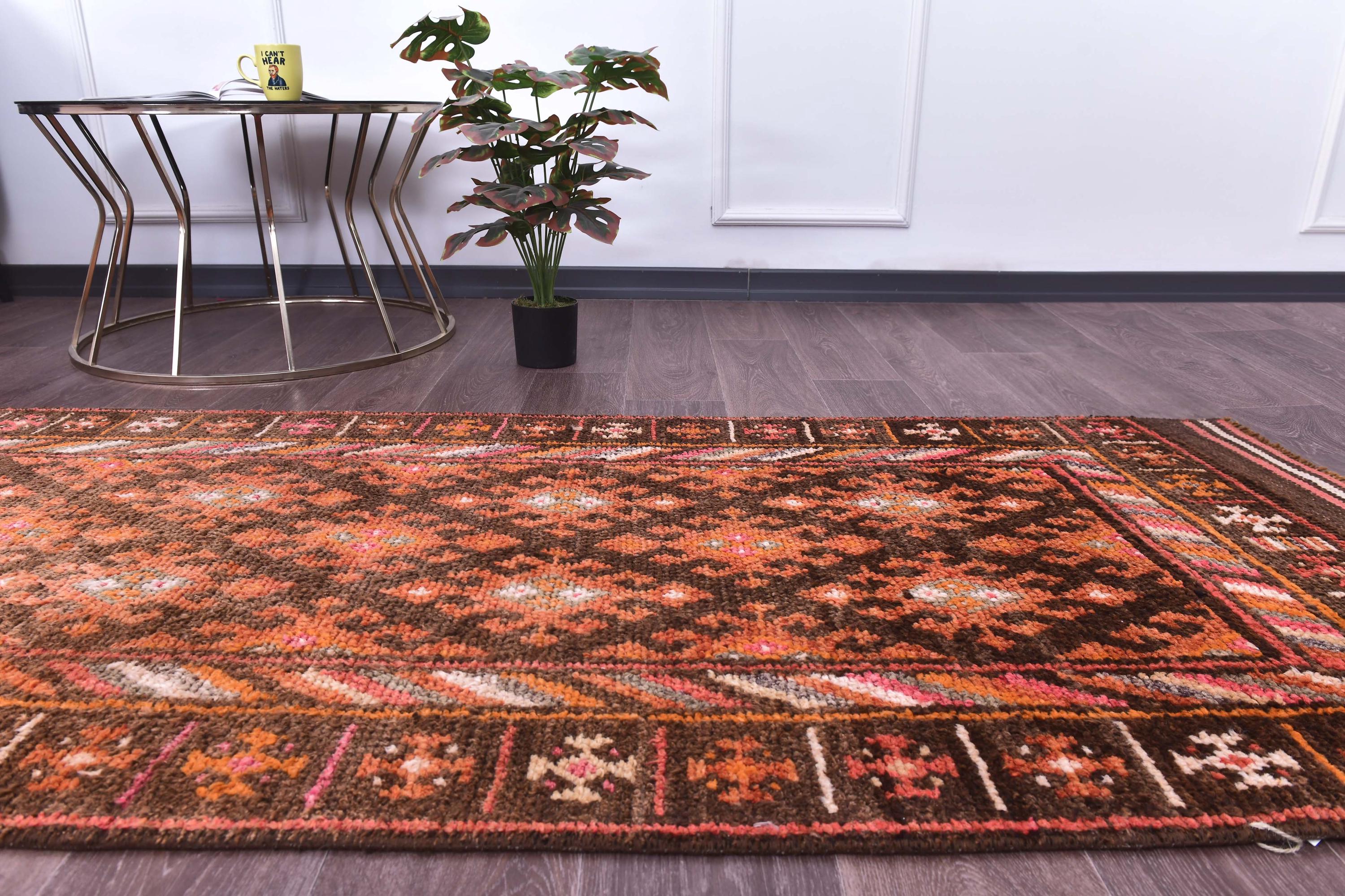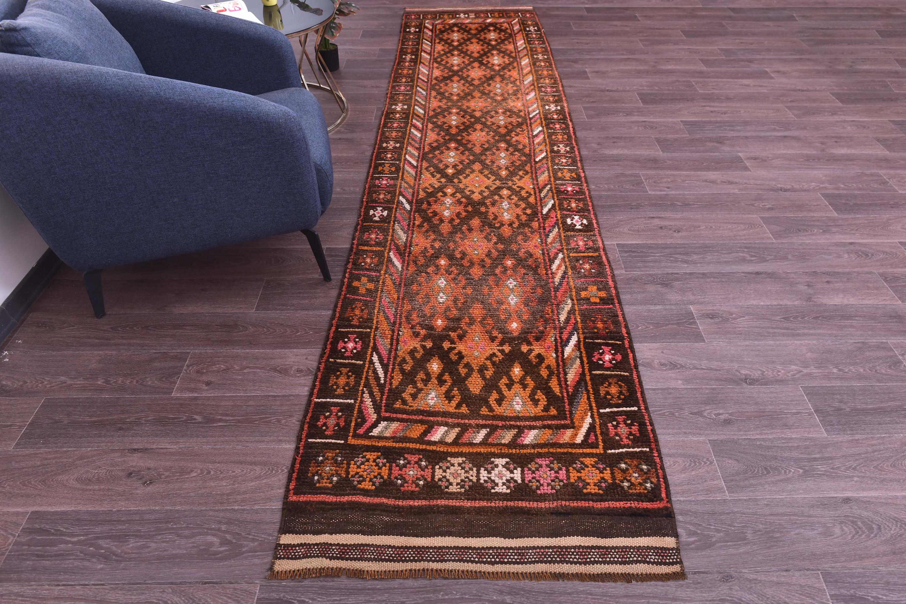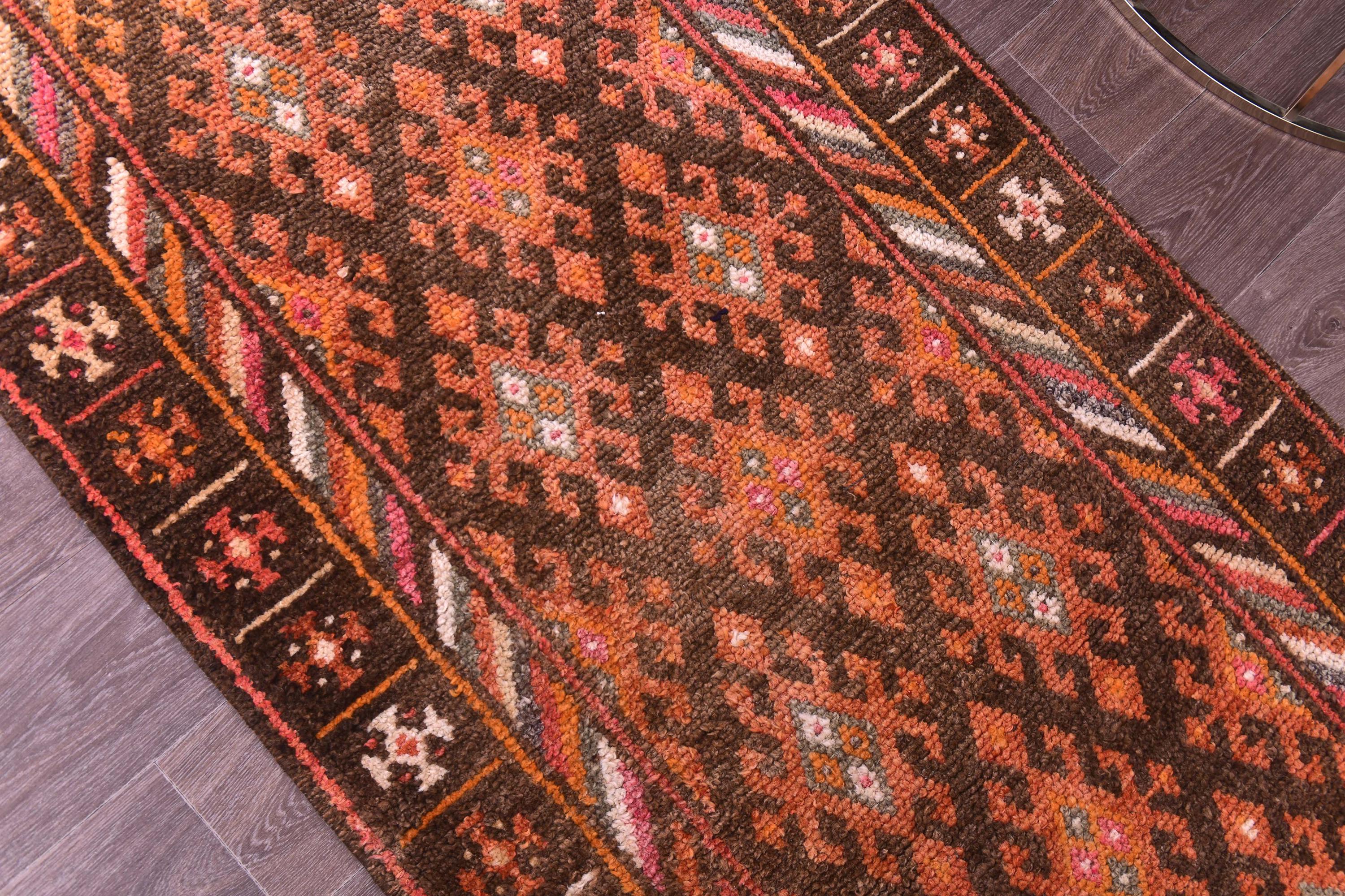 3x13 Vintage Turkish Runner Rug, 3x13 Turkish Hand Knotted Hallway Rug, 3x13 Brown Color Rug, Handmade Wool Rug, 3x13 Wool Hallway Rug, Hallway Decor, 3x13 Handmade Hallway Rug, 3x13 Terracotta Runner Rug, 3x13 Brown Rug, Soft Wool Rug, Tribal Rug, Doorway Rug, 3x13 Vintage Runner,
