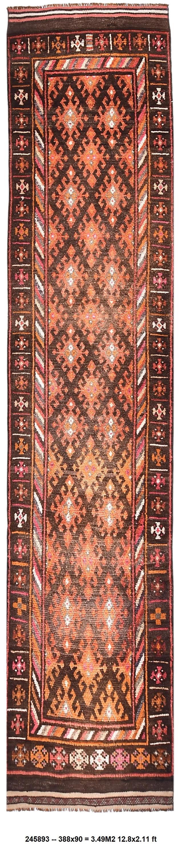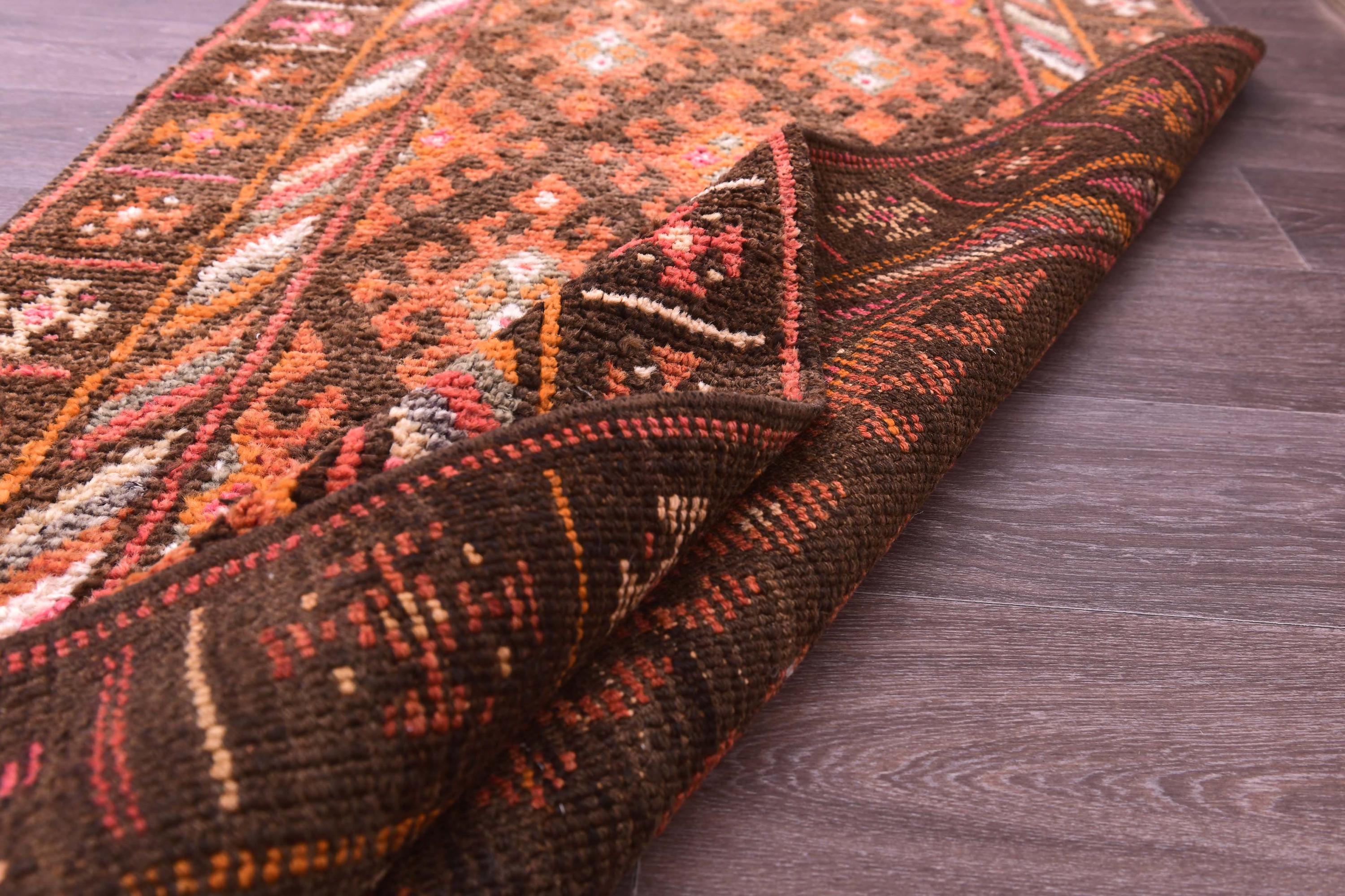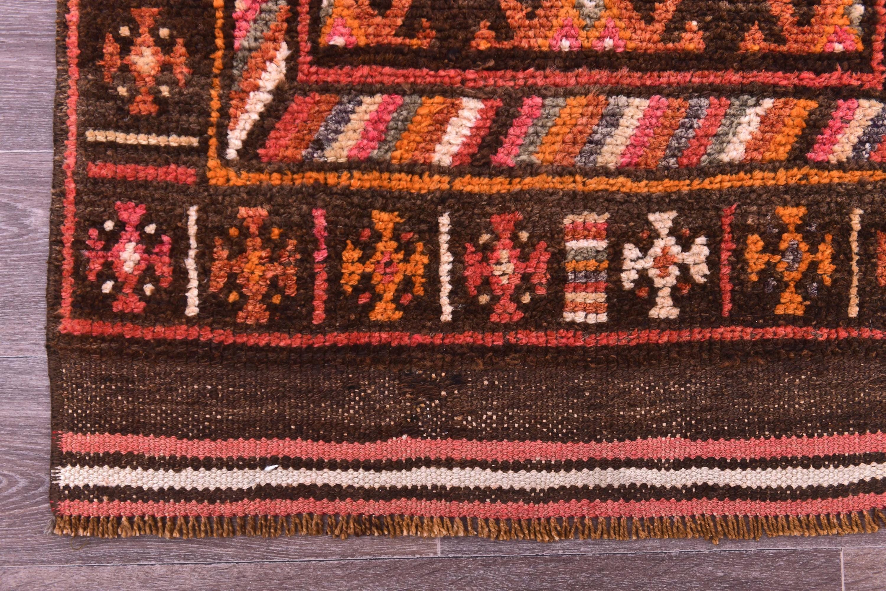 3x13 Vintage Turkish Runner Rug, 3x13 Turkish Hand Knotted Hallway Rug, 3x13 Brown Color Rug, Handmade Wool Rug, 3x13 Wool Hallway Rug, Hallway Decor, 3x13 Handmade Hallway Rug, 3x13 Terracotta Runner Rug, 3x13 Brown Rug, Soft Wool Rug, Tribal Rug, Doorway Rug, 3x13 Vintage Runner,
