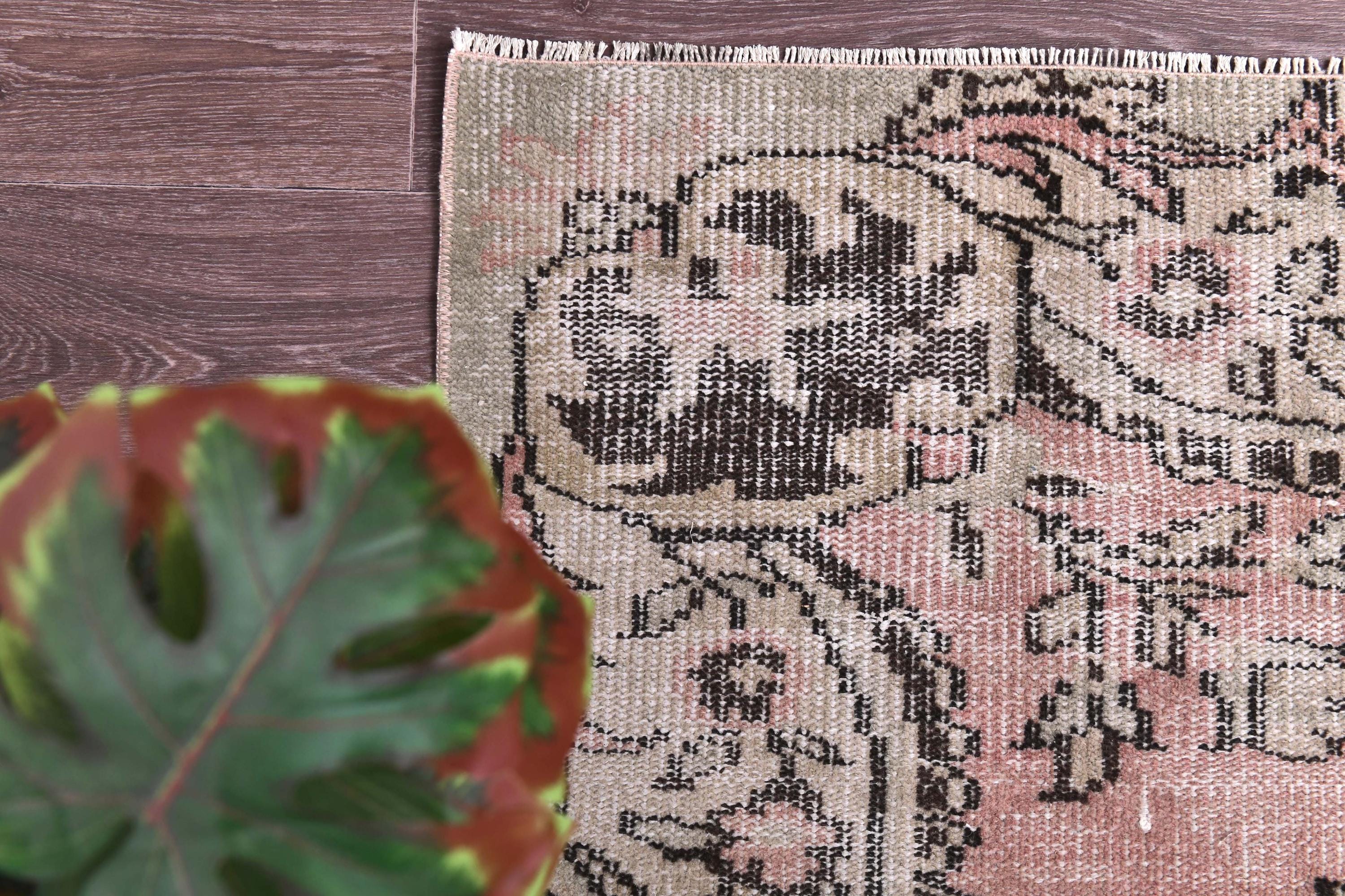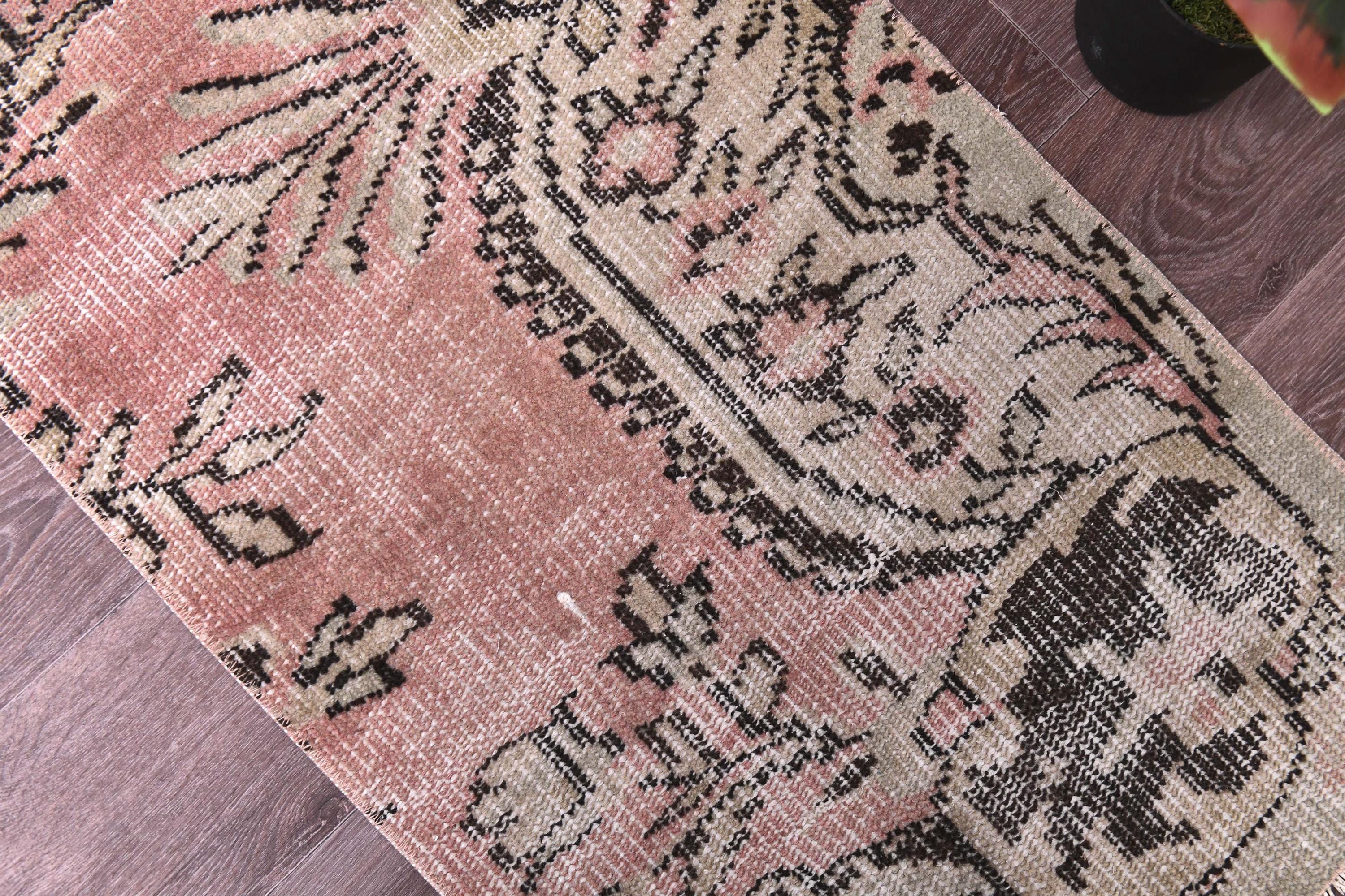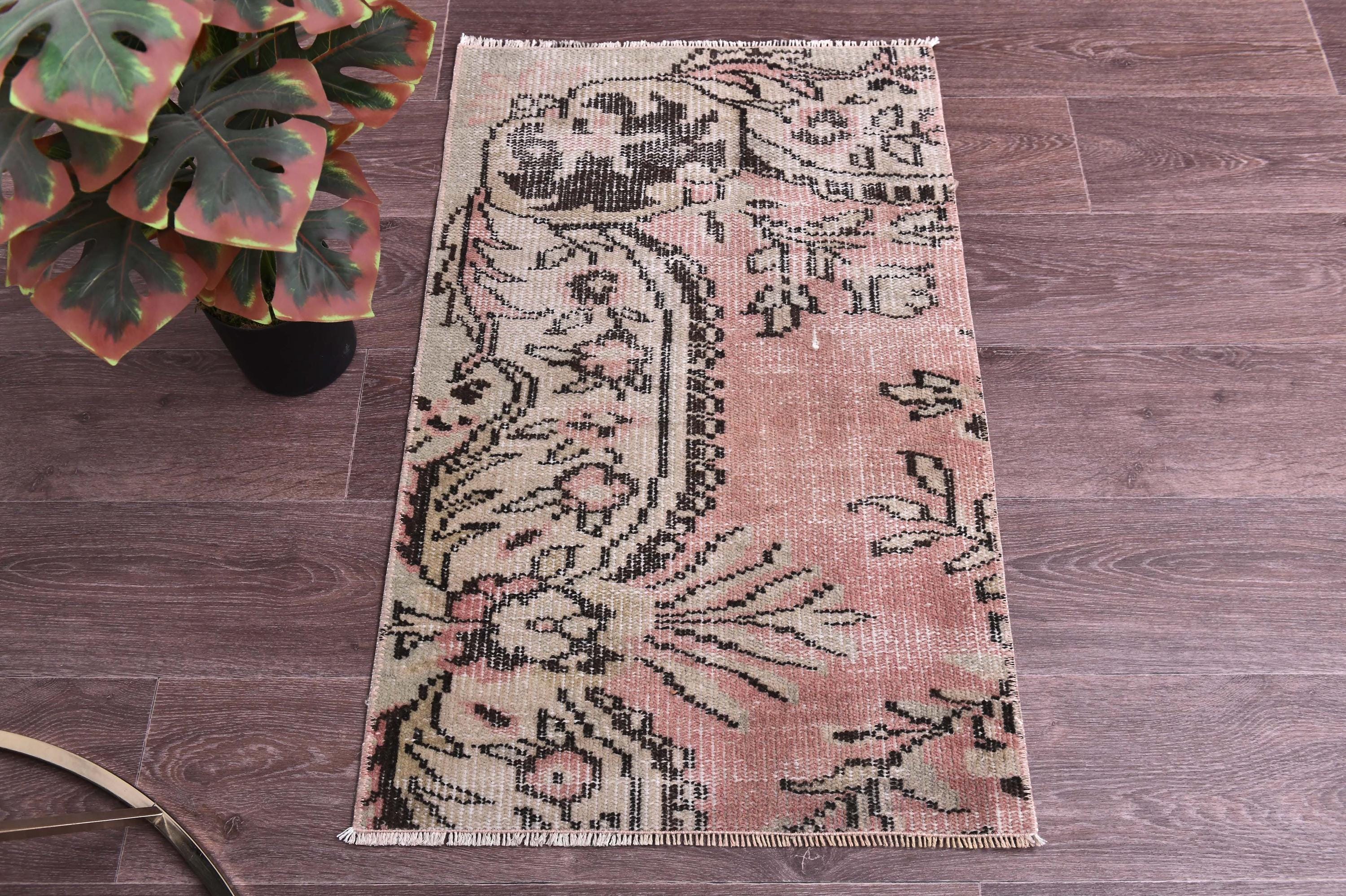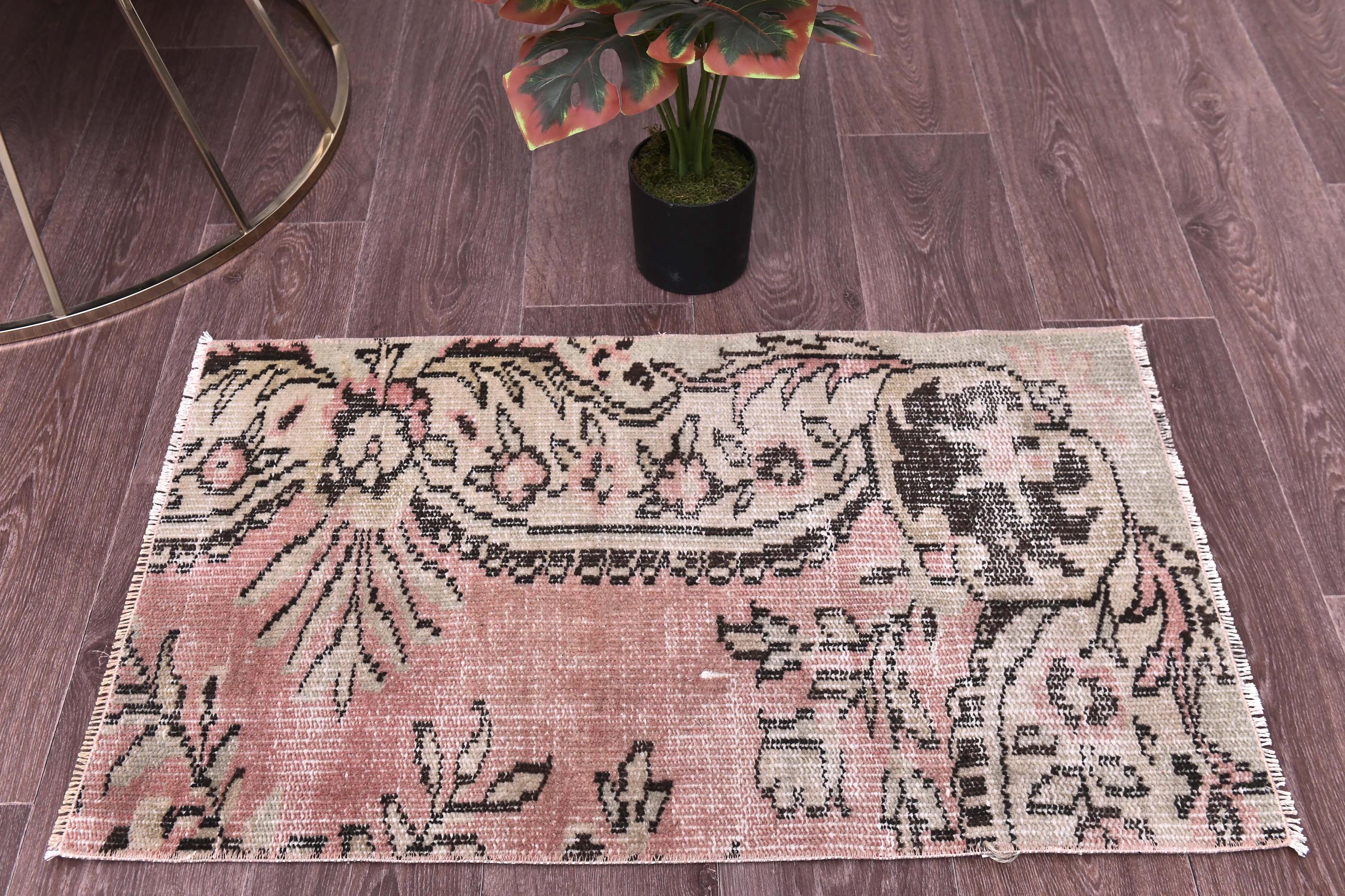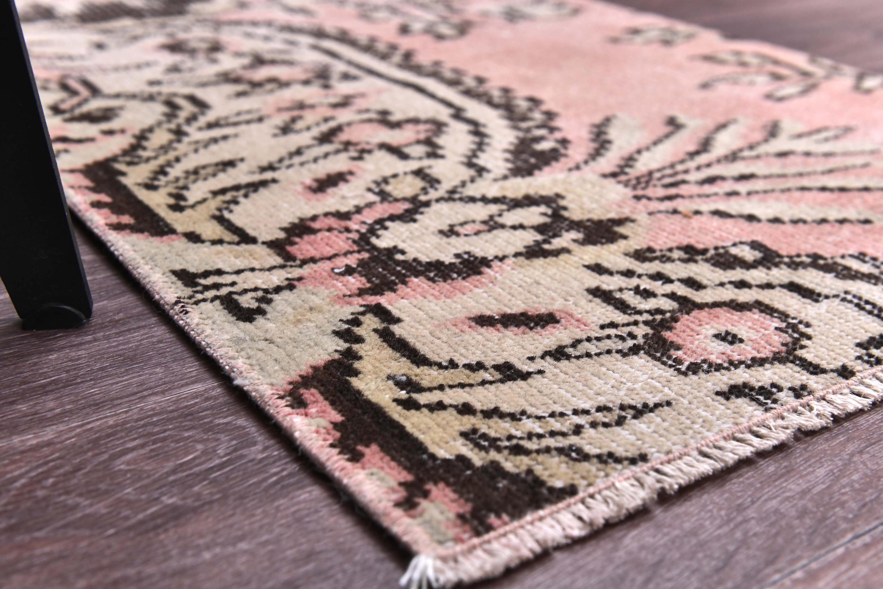 2x4 Cream Pink Vintage Doormat Rug, 2x4 Doormat Rug, 2x4 Rug, Small Handmade Wool Rug, 2x3 Turkish Rug, Rug For Bedroom Accent Bathmat