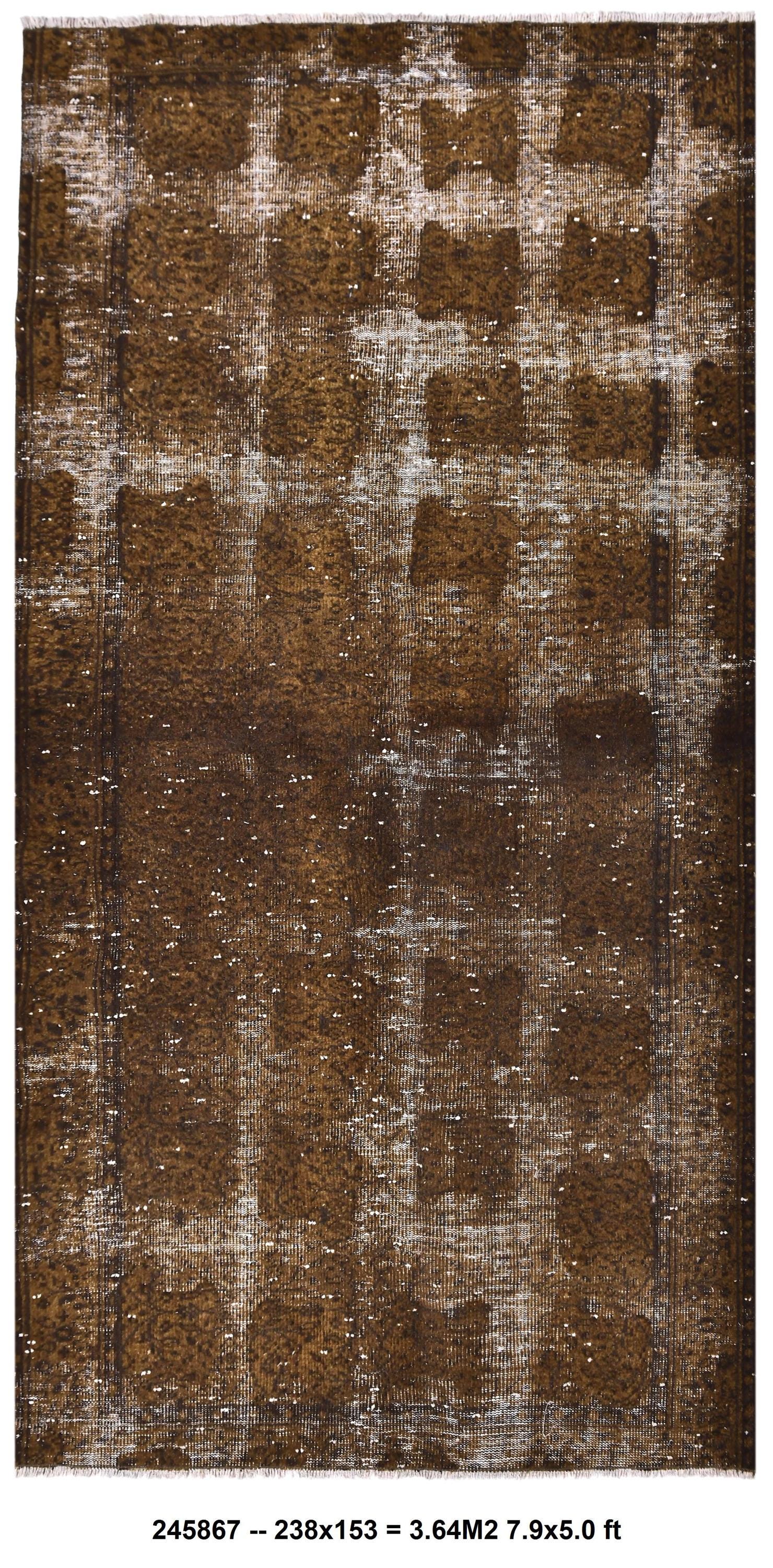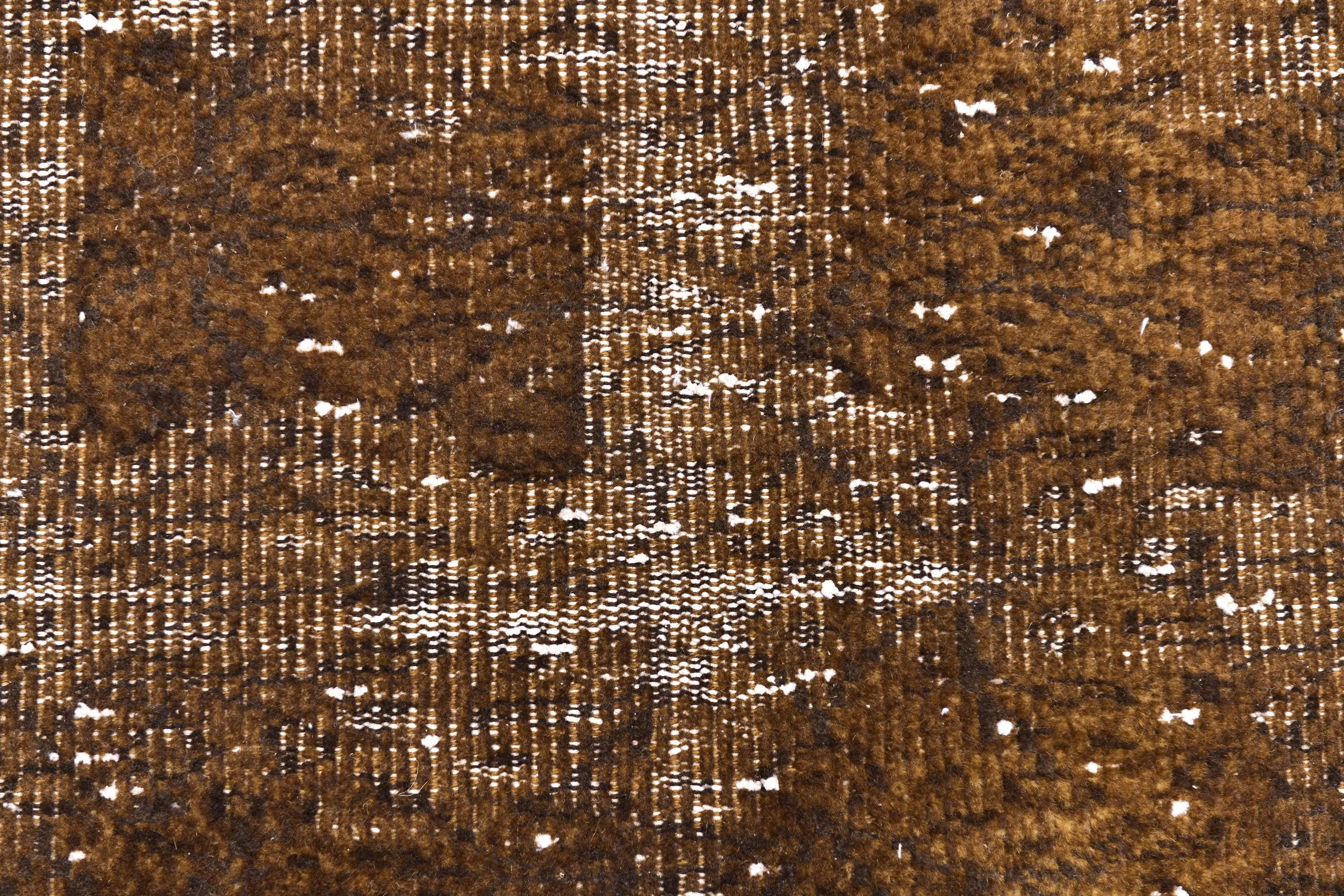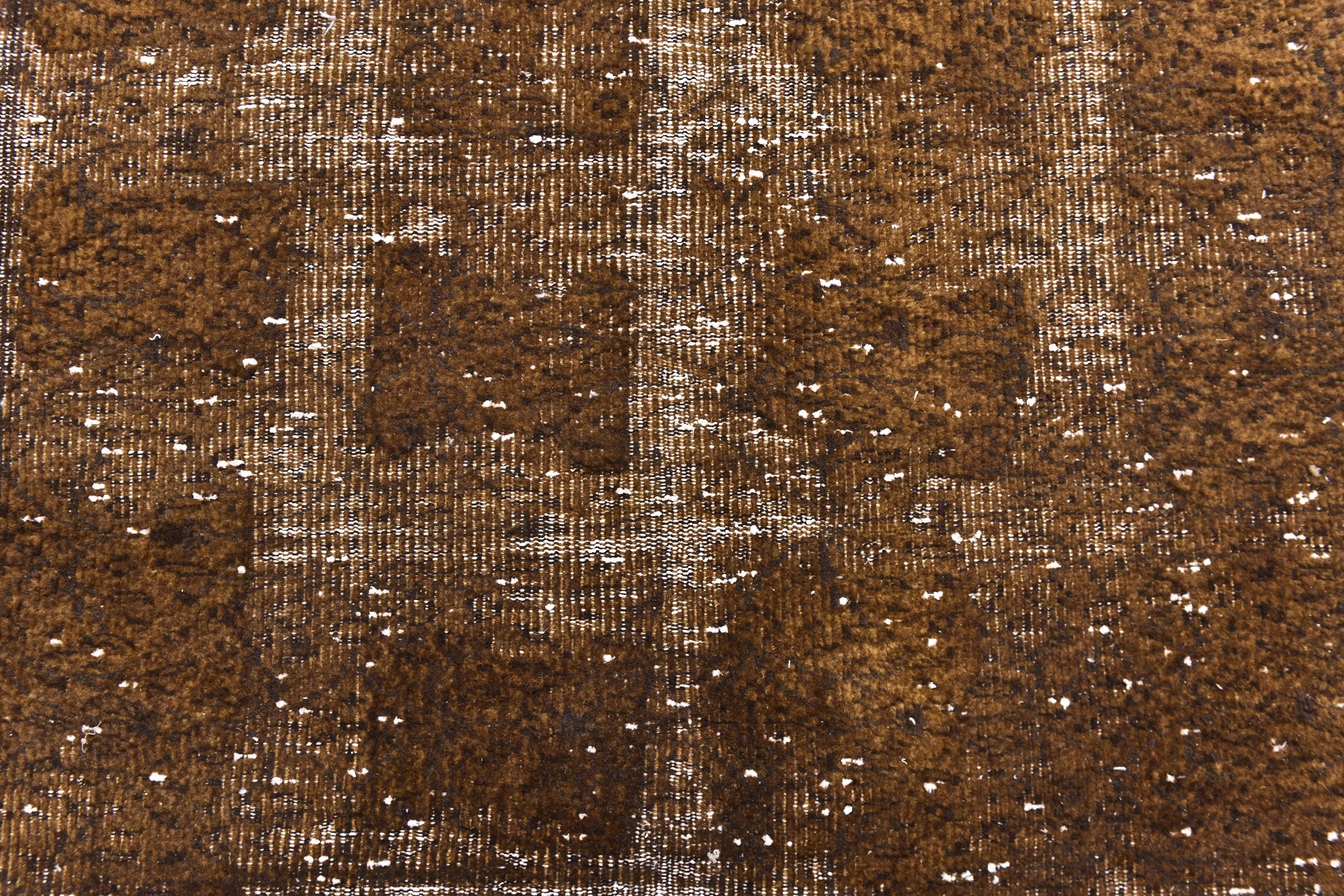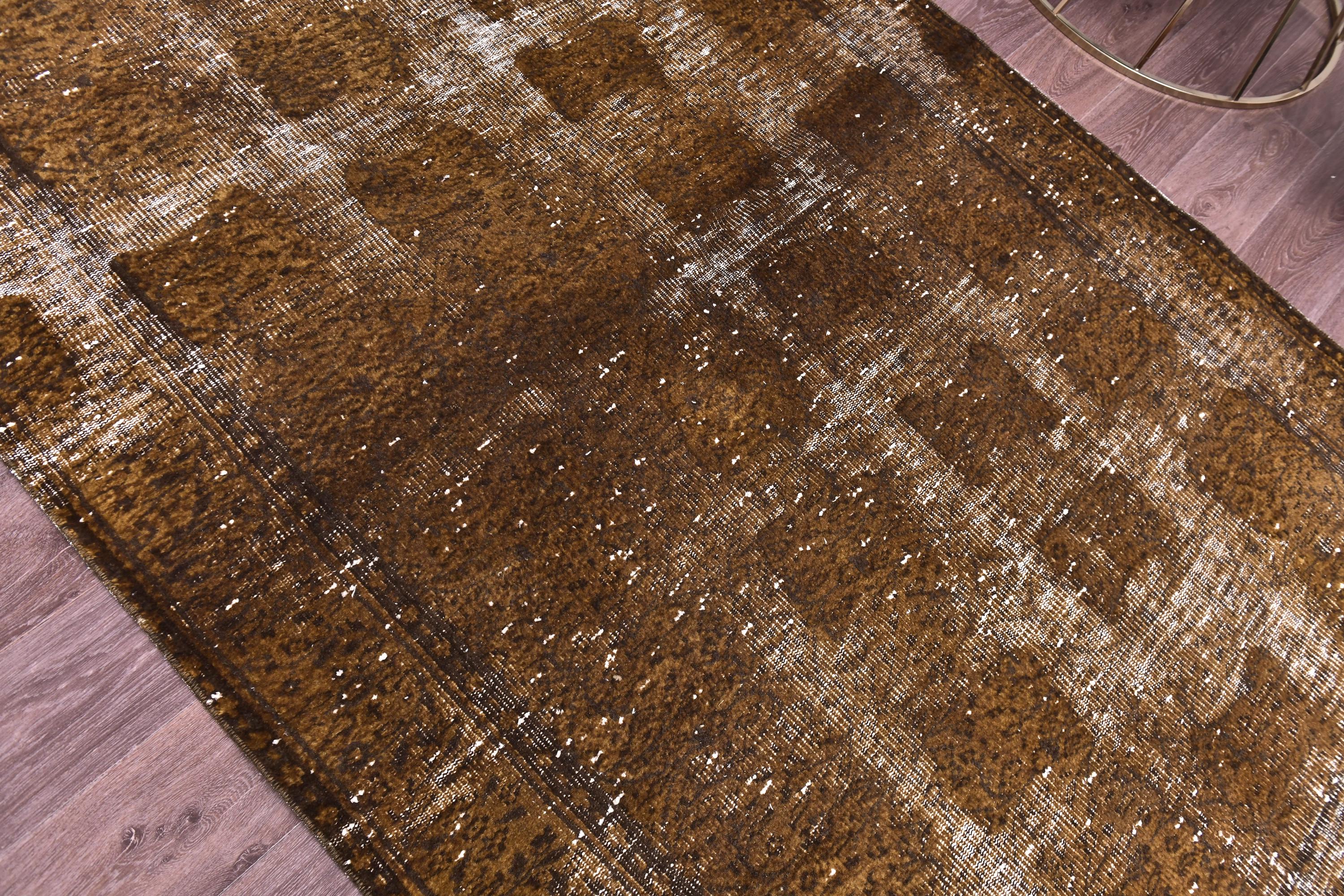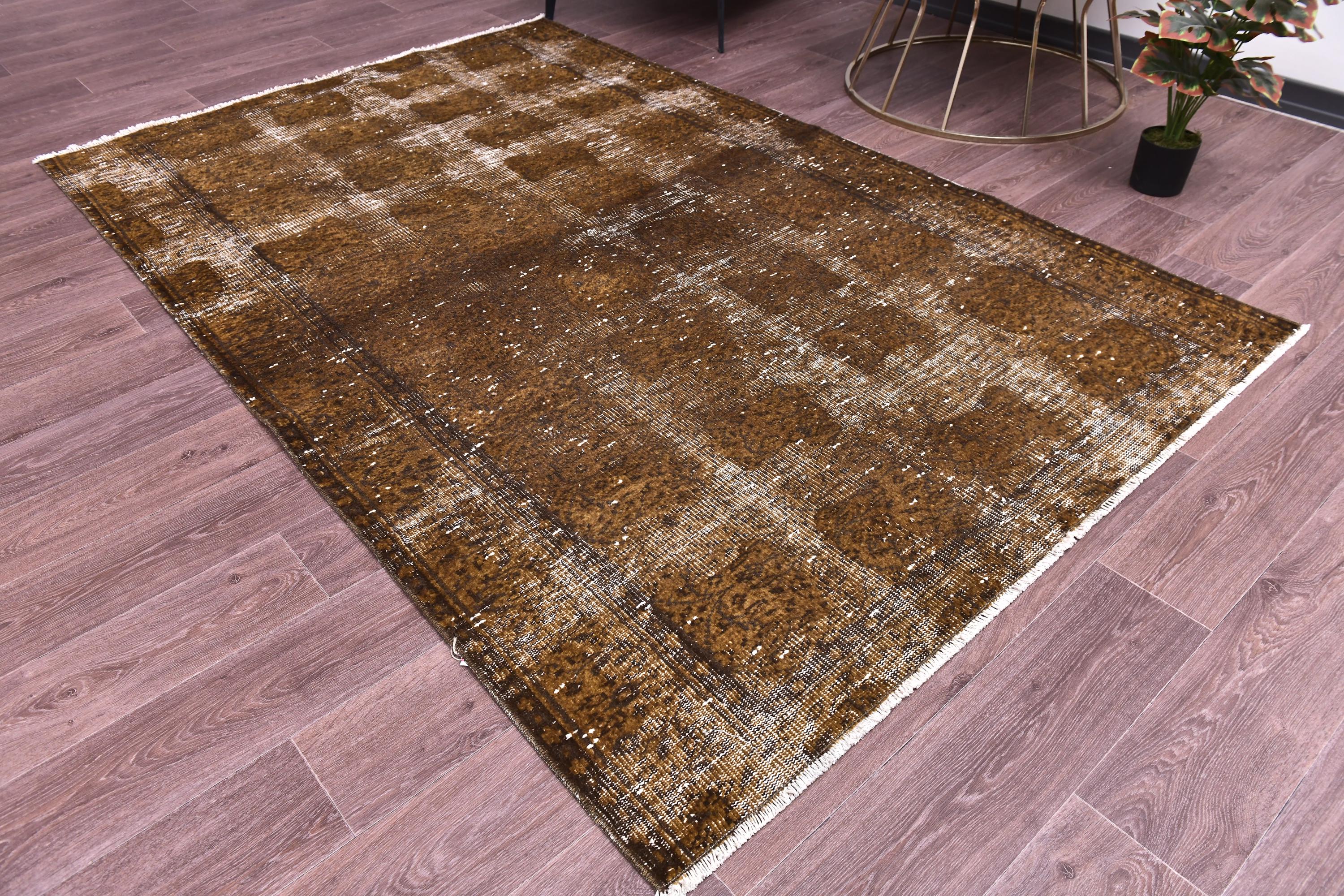 📜📌 Vintage overdyed area rug featuring golden mustard and brown tones with distressed floral medallion patterns throughout. Hand-knotted wool carpet with weathered appearance, cream-colored abrash effects, and traditional Oriental border design. Perfect for bohemian or eclectic interior spaces.