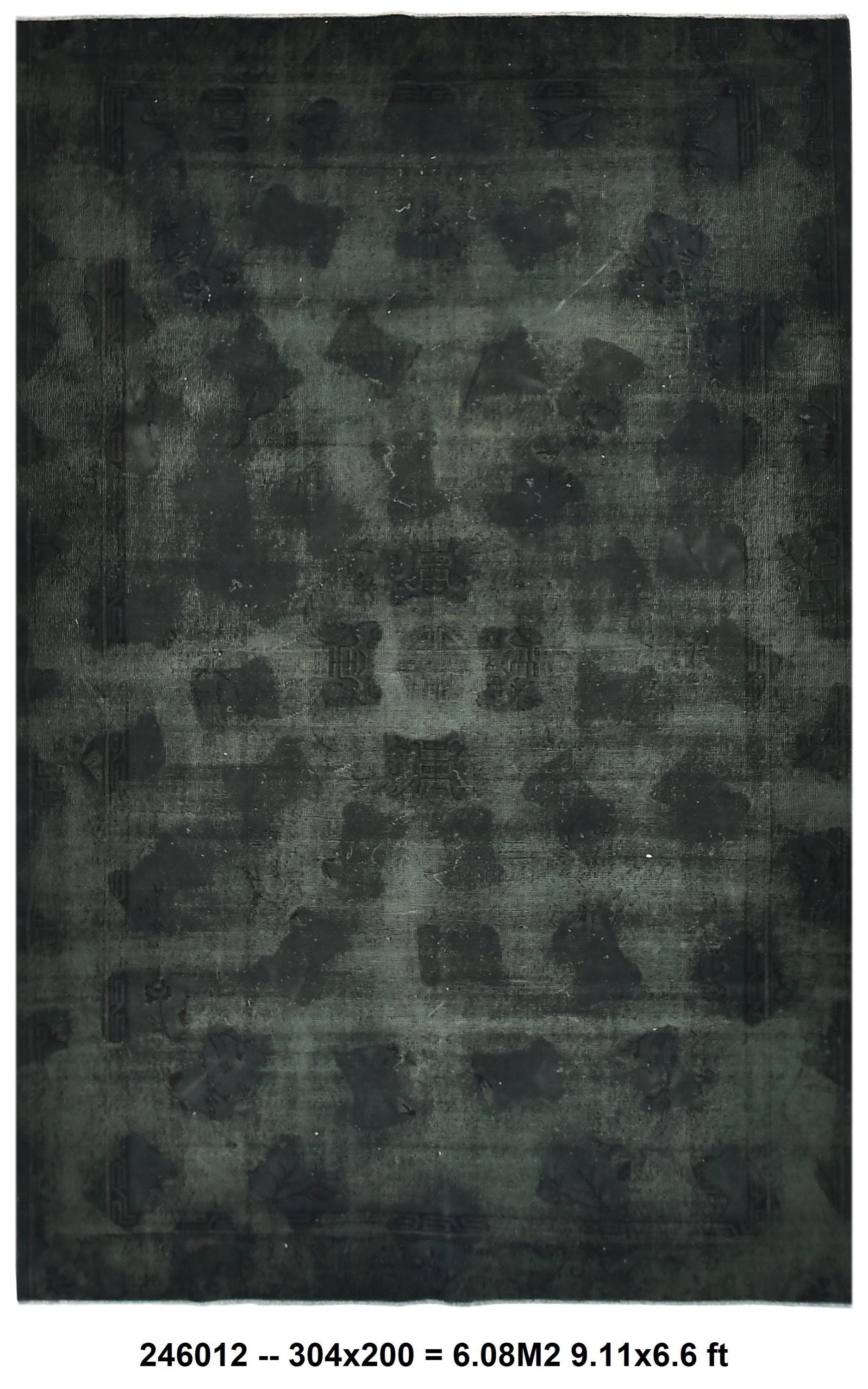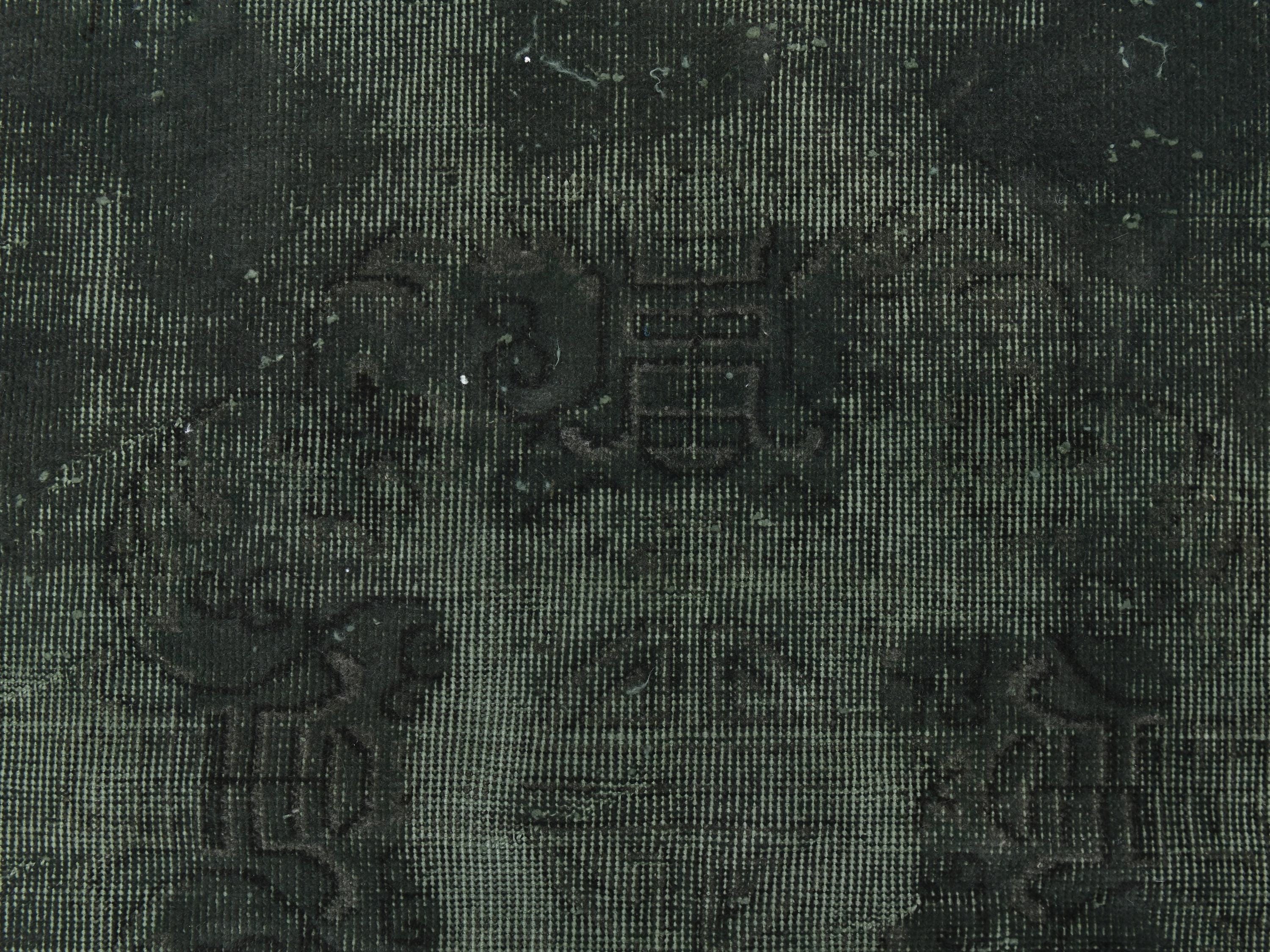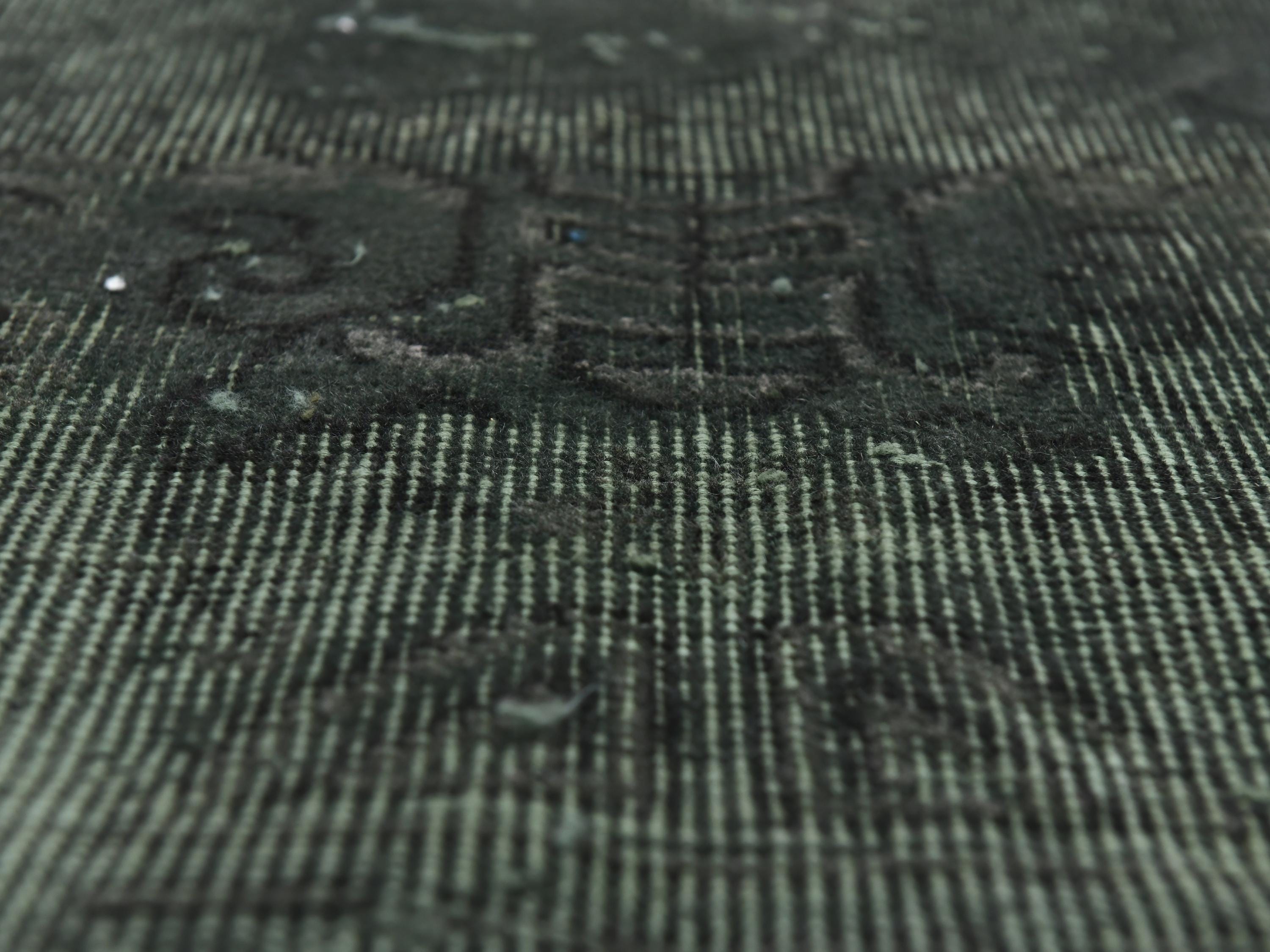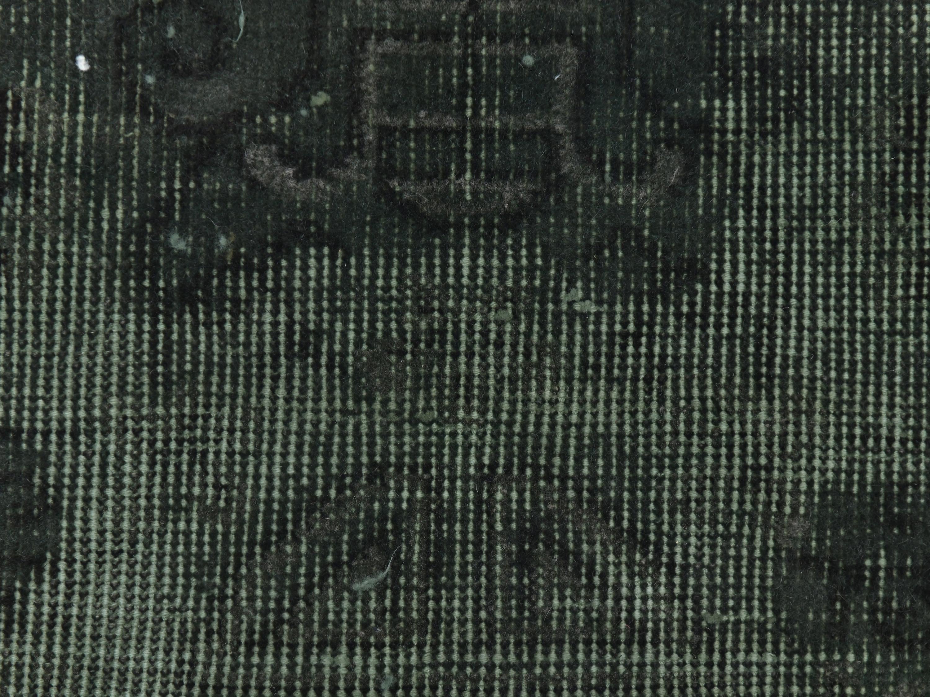 📜📌Green overdyed area rug featuring vintage distressed appearance with tonal variations from dark forest to sage green, hand-knotted wool with faded ornamental border and central medallion design barely visible beneath the rich green overdye treatment