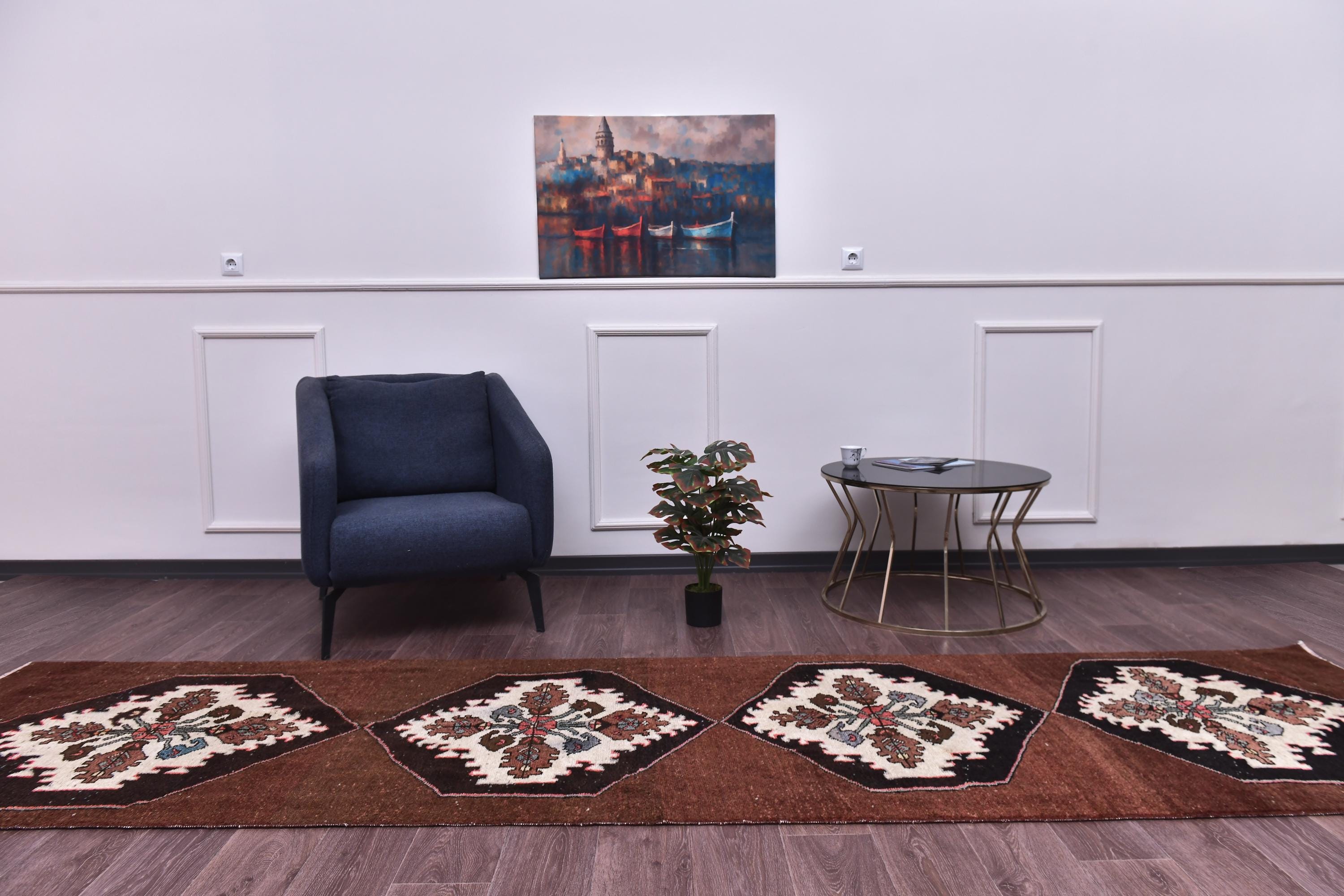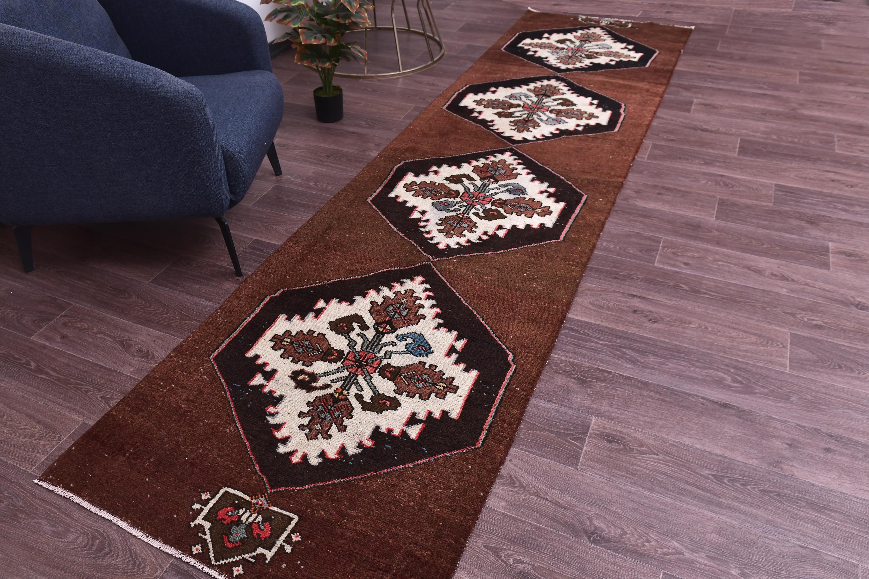3x13 Vintage Turkish Runner Rug, 3x13 Turkish Hand Knotted Hallway Rug, 3x13 Brown Color Rug, Handmade Wool Rug, 3x13 Wool Hallway Rug, Hallway Decor, 3x13 Handmade Hallway Rug, 3x13 Terracotta Runner Rug, 3x13 Brown Rug, Soft Wool Rug, Tribal Rug, Doorway Rug, 3x13 Vintage Runner,