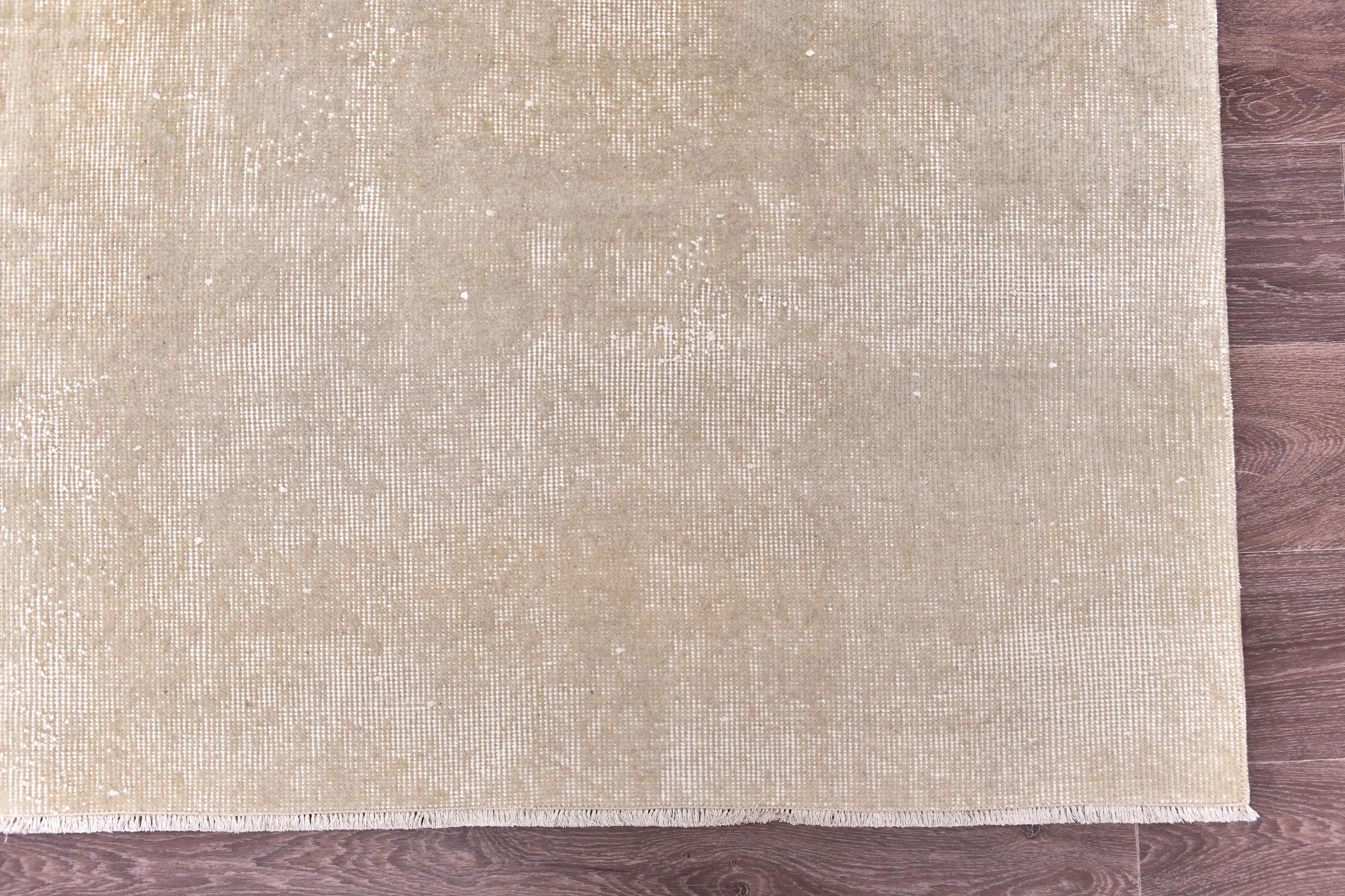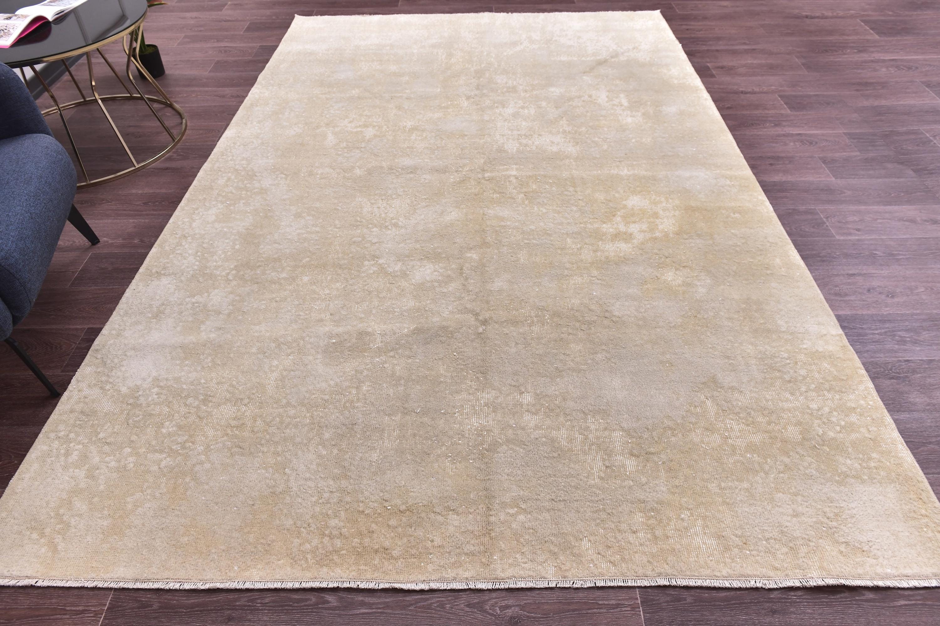 📜📌Large cream and beige hand-knotted wool area rug with subtle distressed vintage pattern and soft neutral tones, featuring natural ivory and sandy beige colors with a textured surface, perfect for modern minimalist or contemporary living room decor