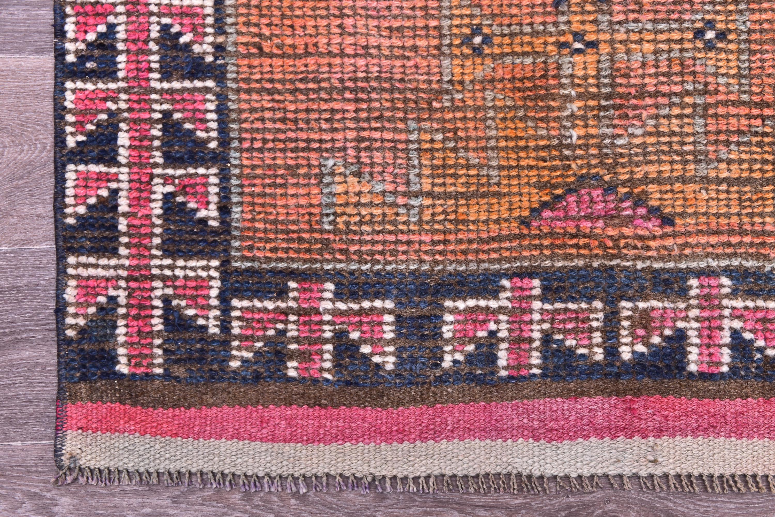 3x13 Vintage Turkish Runner Rug, 3x13 Turkish Hand Knotted Hallway Rug, 3x13 Brown Color Rug, Handmade Wool Rug, 3x13 Wool Hallway Rug, Hallway Decor, 3x13 Handmade Hallway Rug, 3x13 Terracotta Runner Rug, 3x13 Brown Rug, Soft Wool Rug, Tribal Rug, Doorway Rug, 3x13 Vintage Runner,