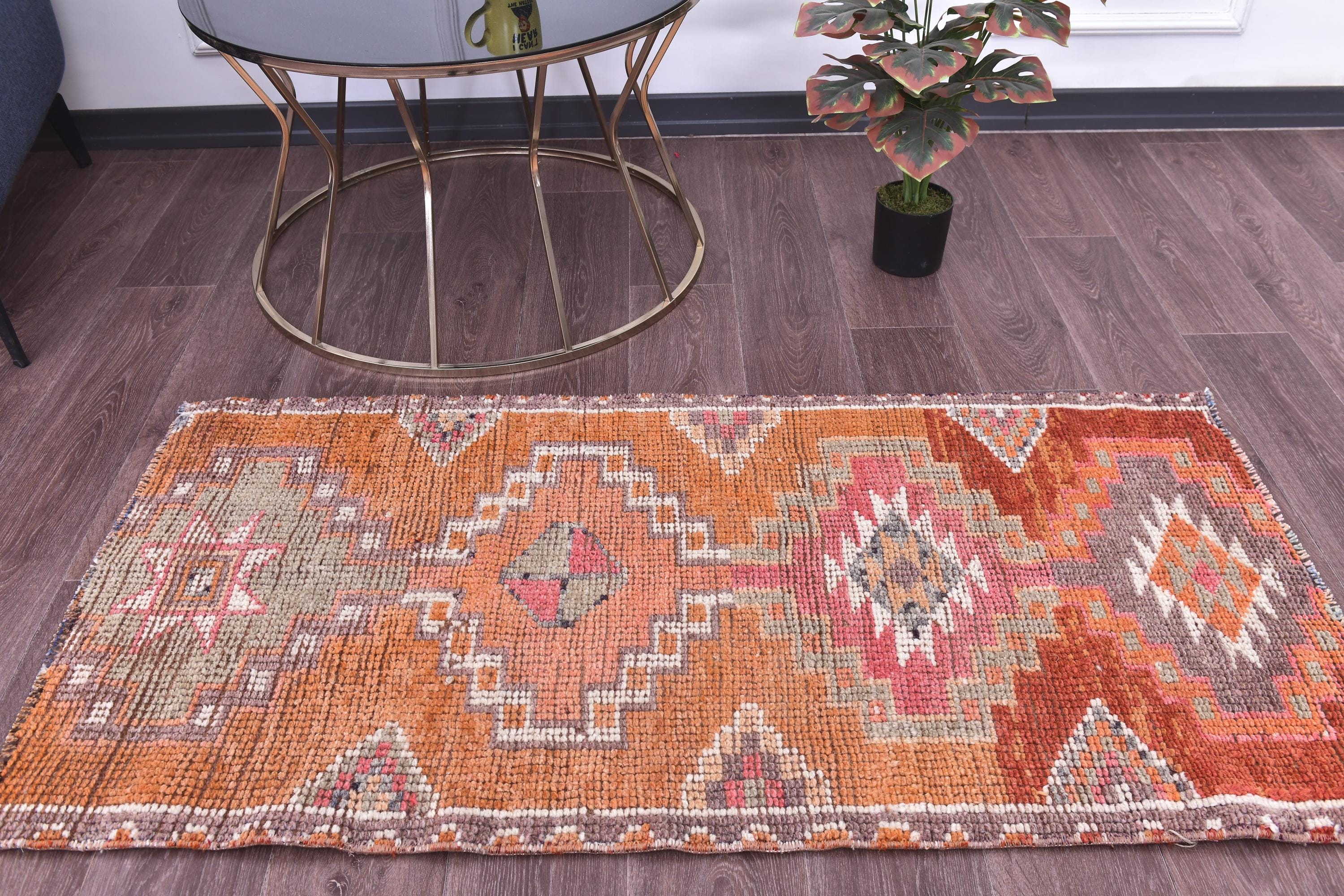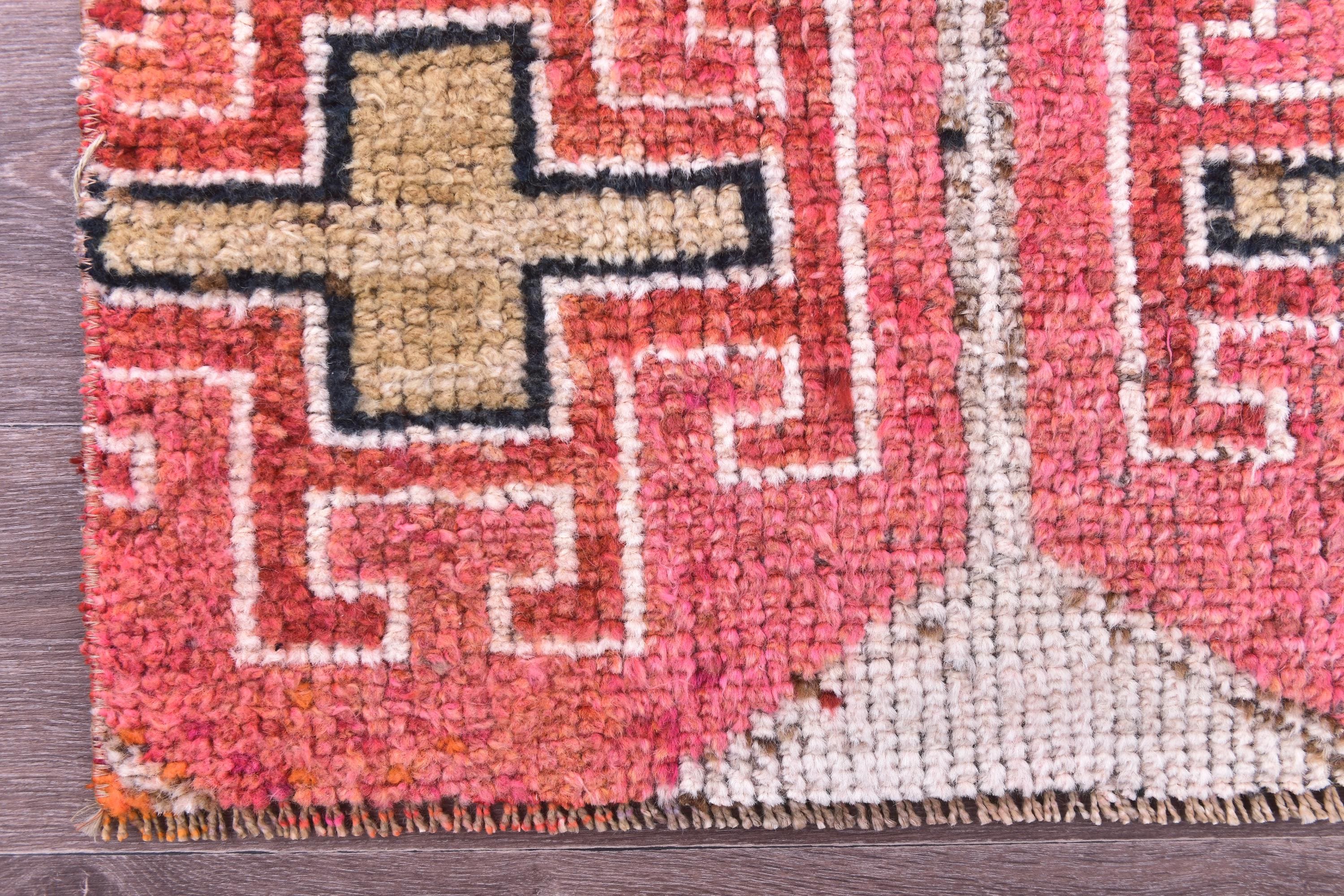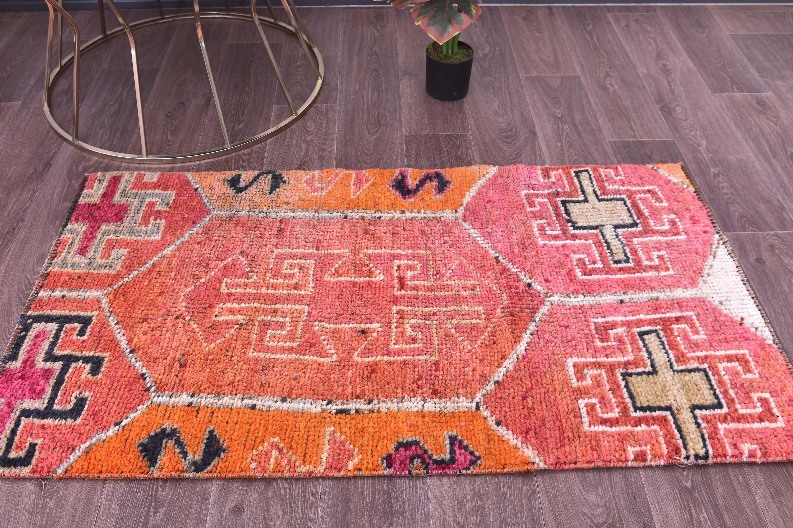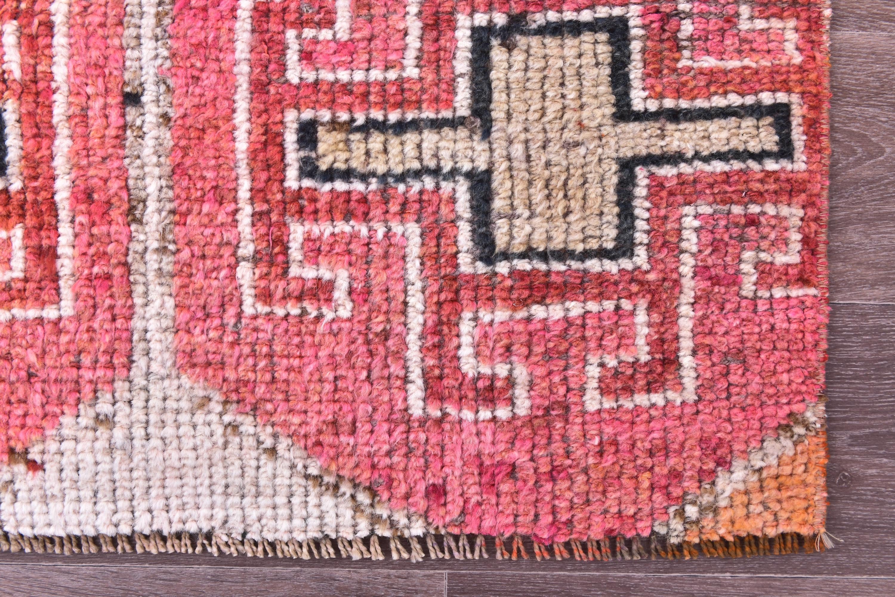 2x4 Cream Pink Vintage Doormat Rug, 2x4 Doormat Rug, 2x4 Rug, Small Handmade Wool Rug, 2x3 Turkish Rug, Rug For Bedroom Accent Bathmat