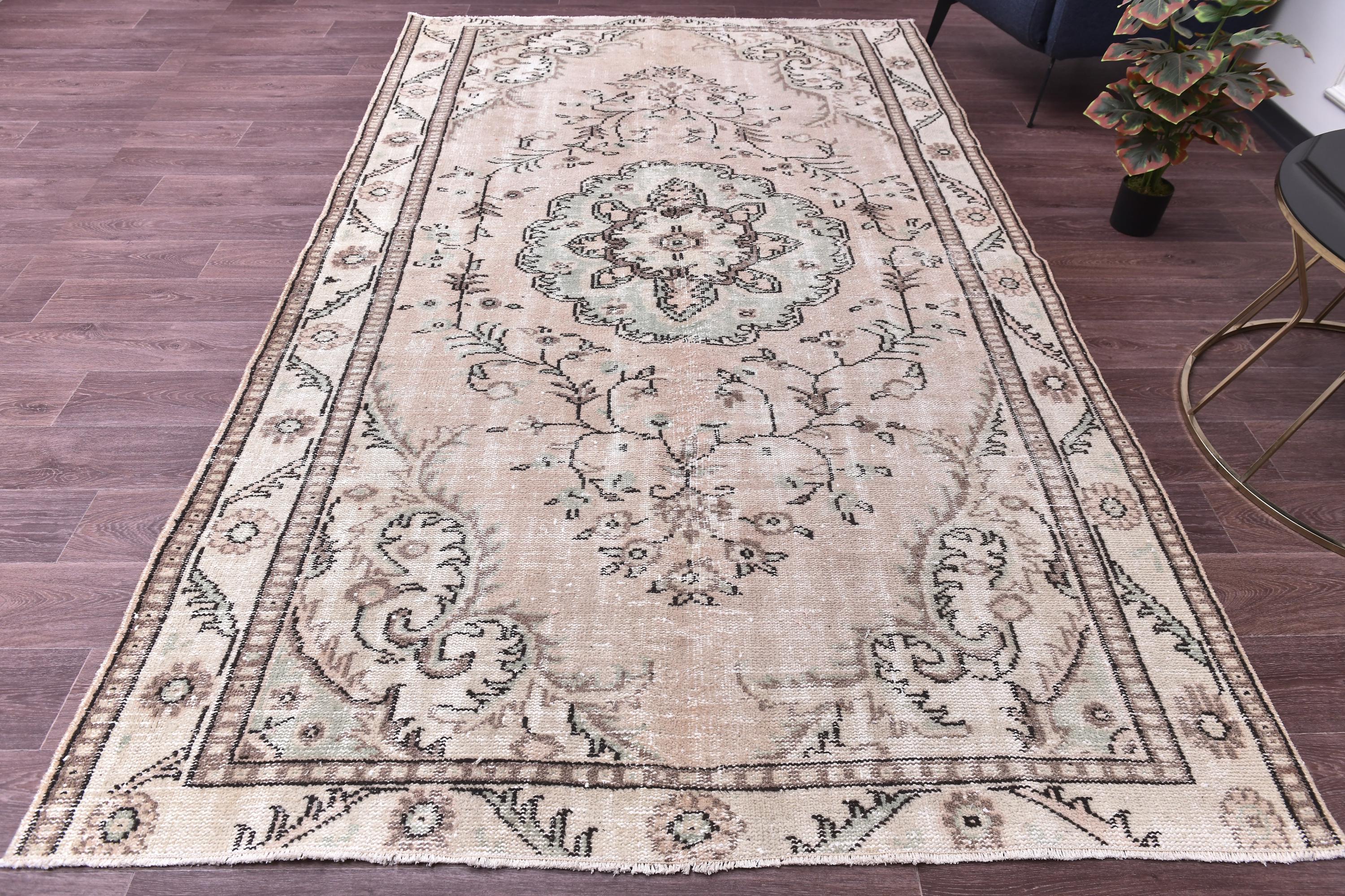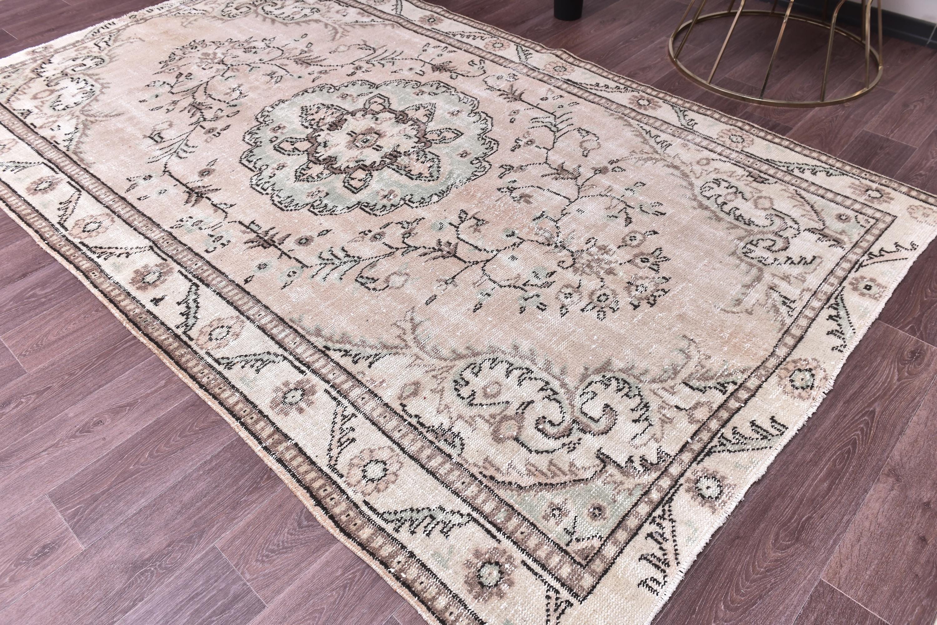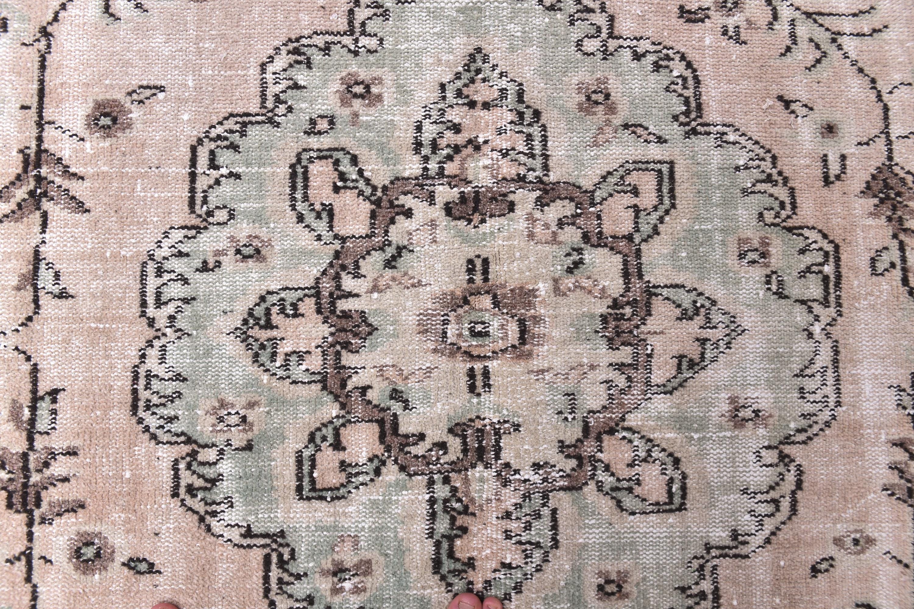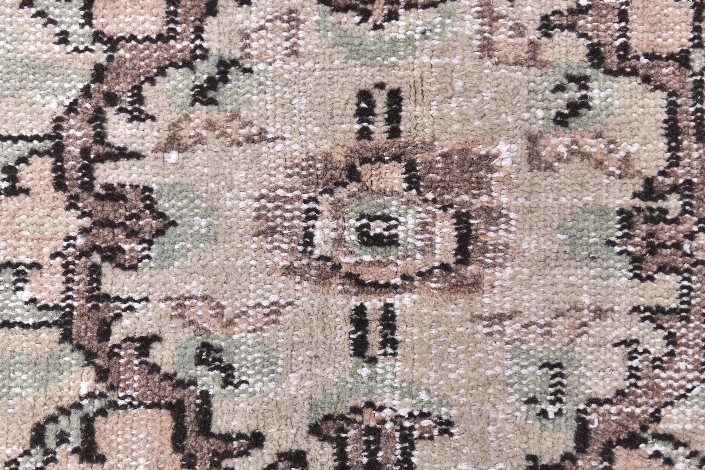 📜📌Elegant vintage area rug with classic Turkish medallion pattern in the center field, decorated with intricate floral and vine scrollwork throughout. The neutral color palette includes shades of cream, beige, taupe, and subtle hints of dusty rose, framed by traditional ornamental borders with geometric and floral motifs, perfect for adding timeless character to any living space.