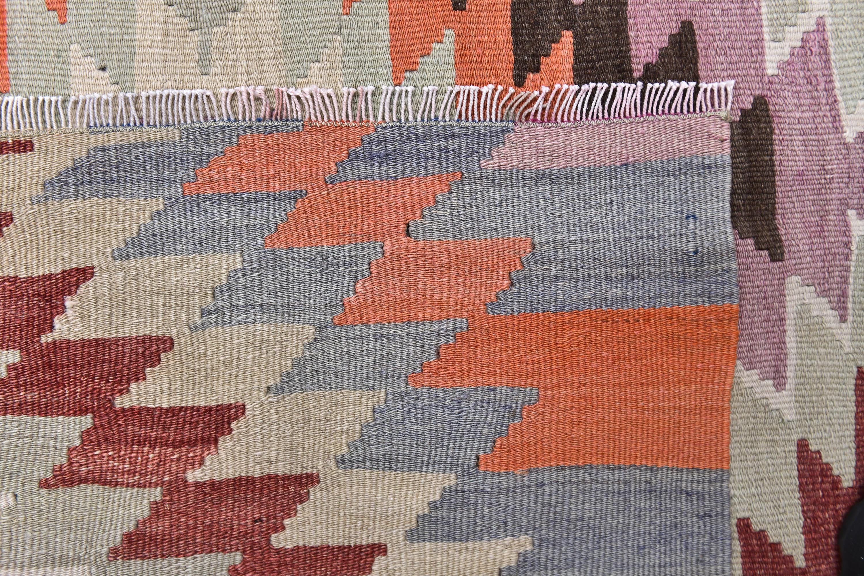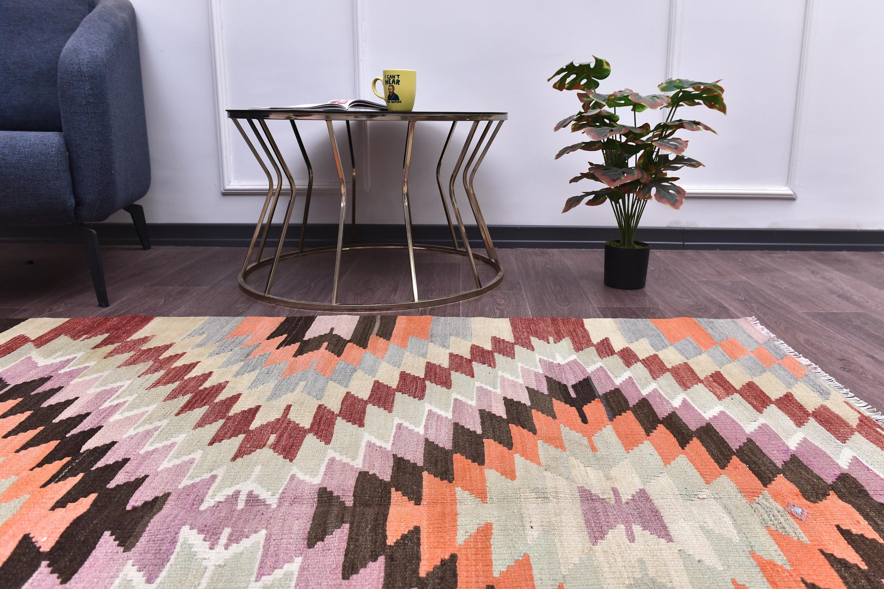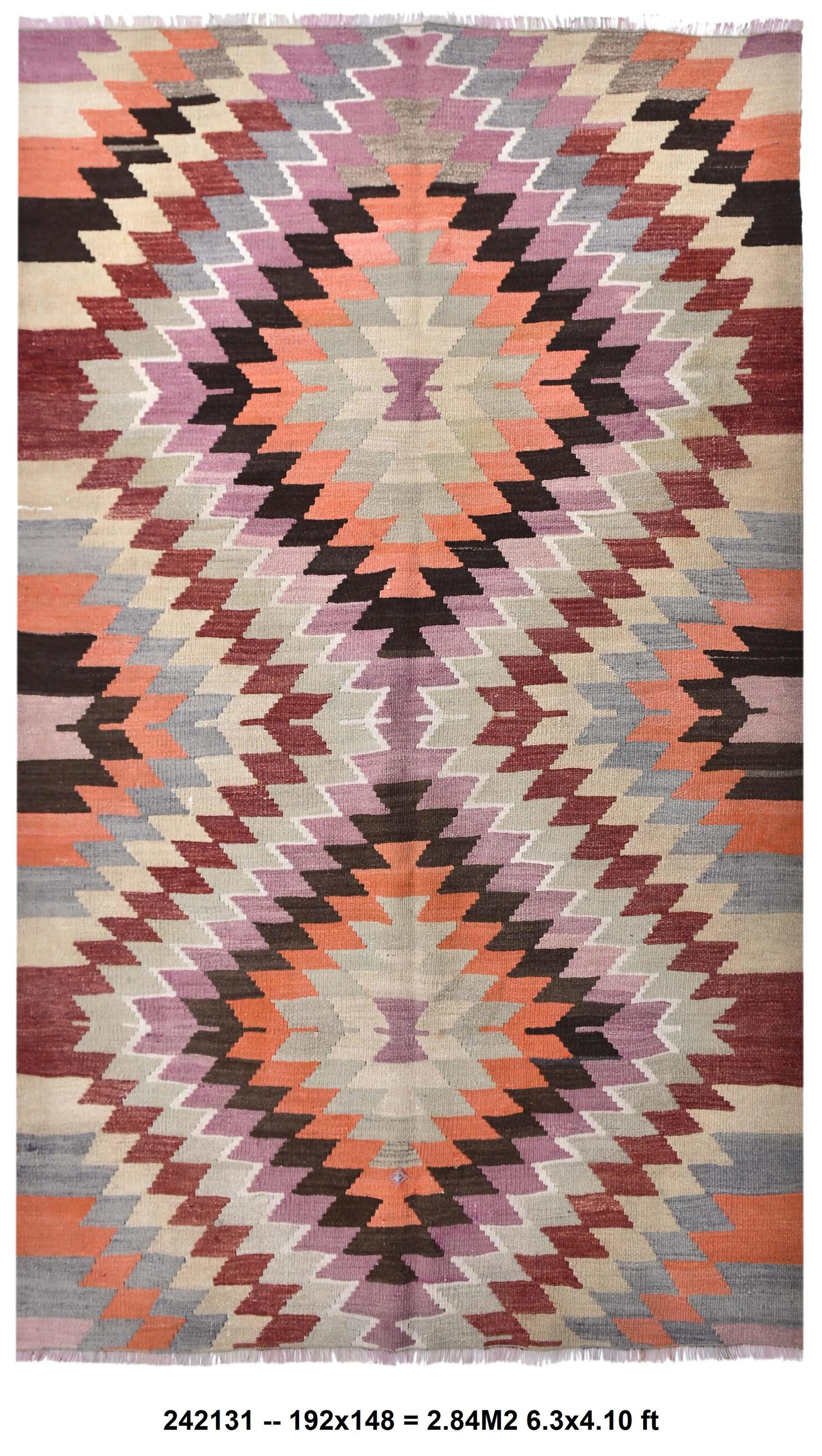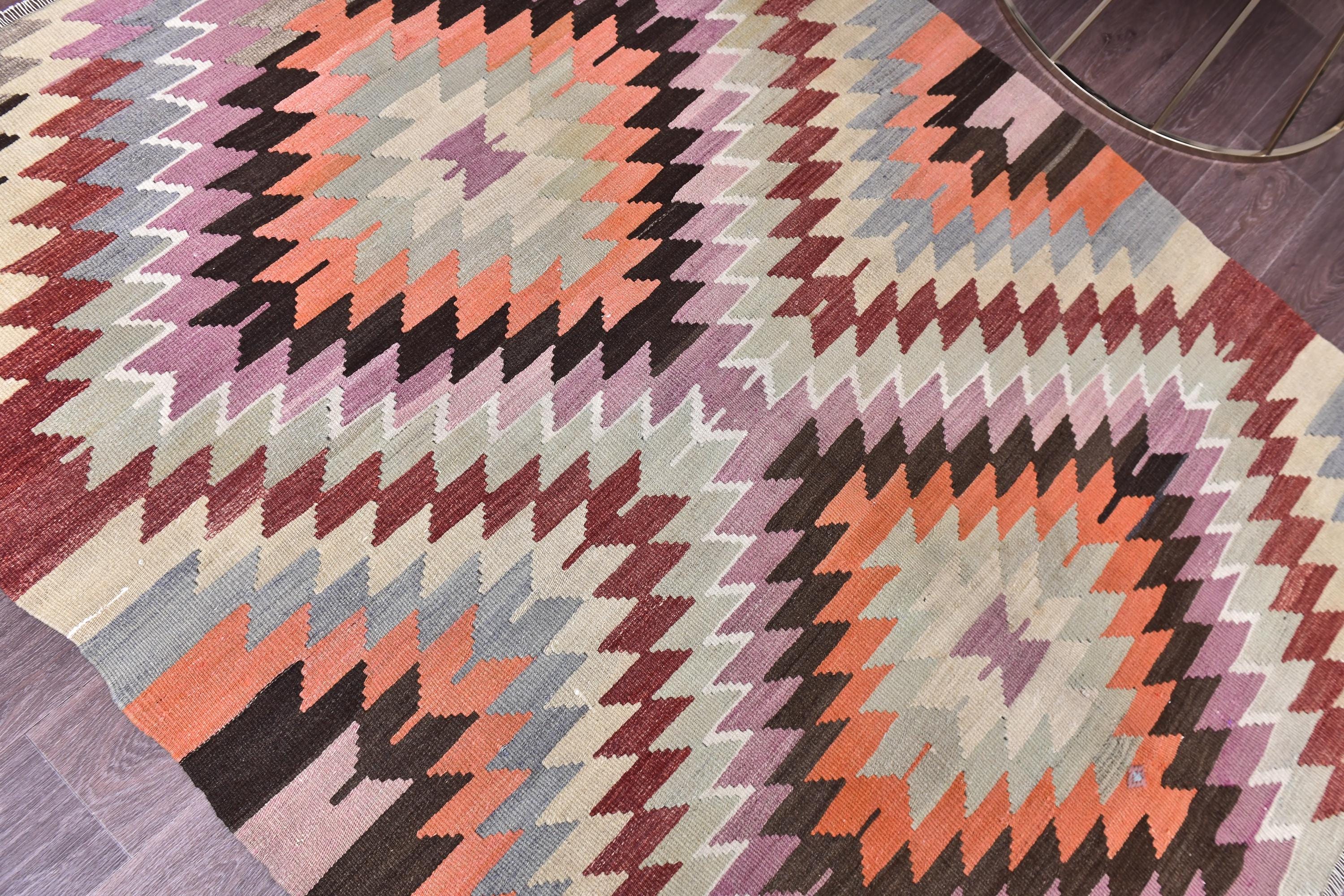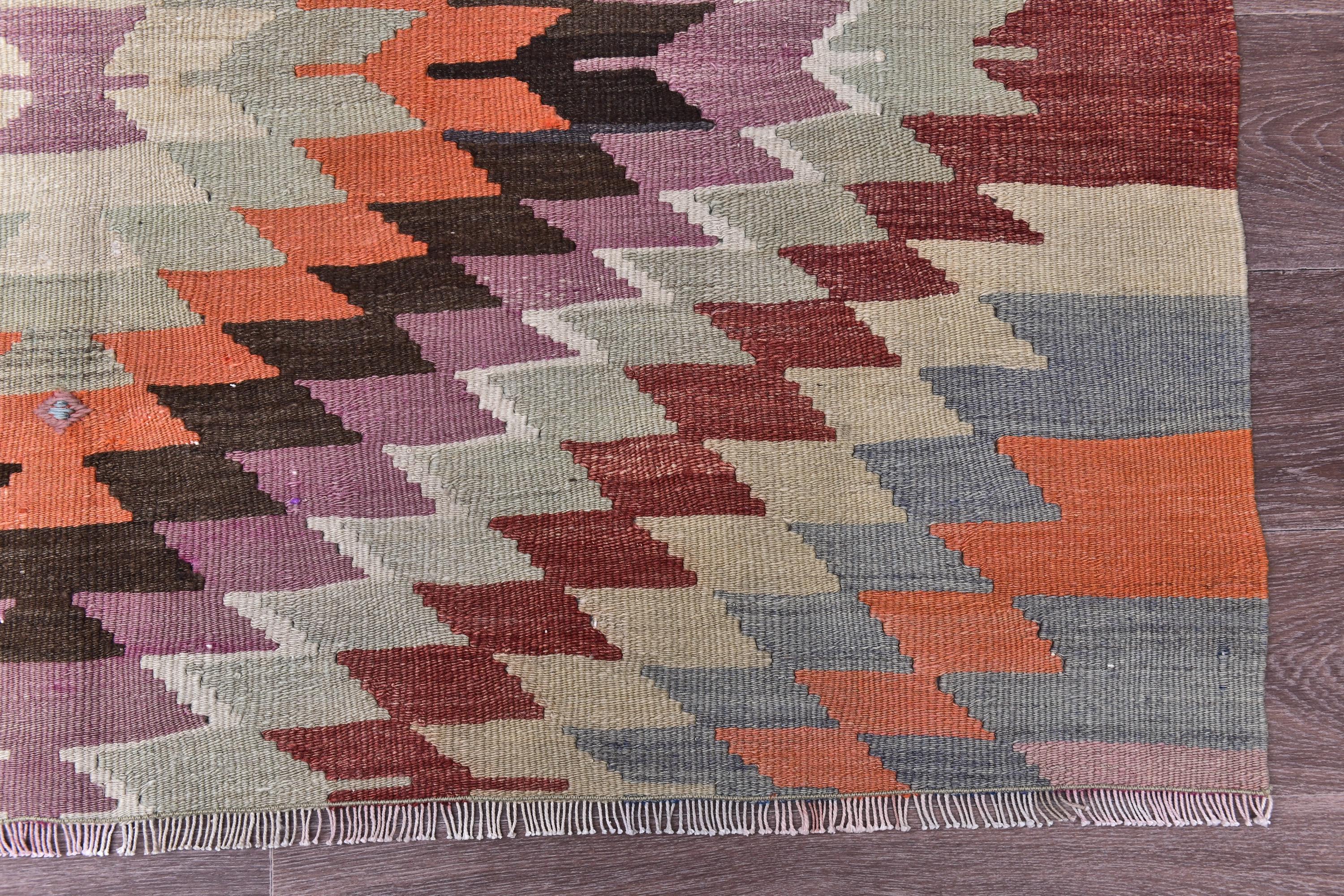 📜📌 5x6 Vintage Turkish Kilim Rug, Purple Orange Green Black Color, 5x6 Handmade Wool Jute Rug, 5x6 Turkish Accent Rug, Traditional Home Decor, Geometric