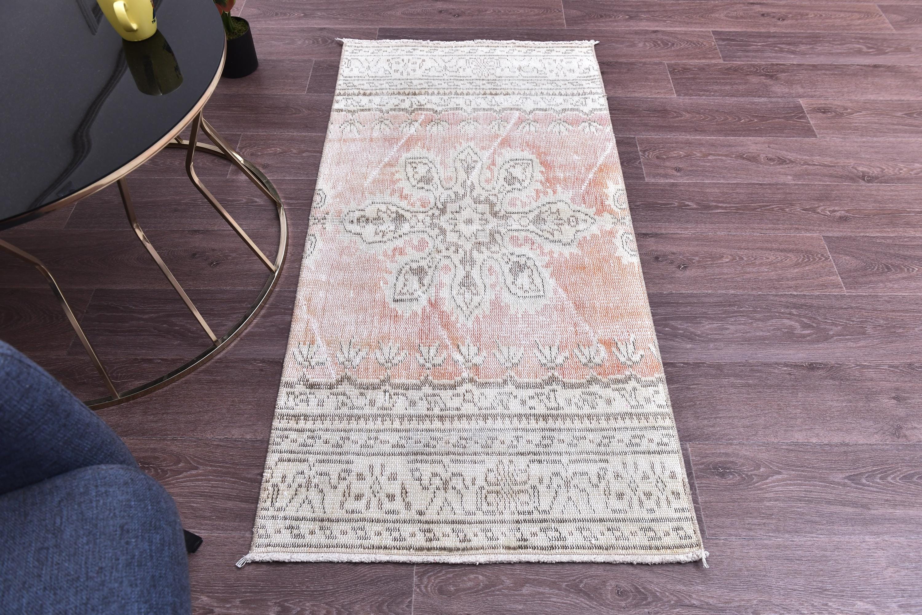 2x5 Vintage Runner Rug, 2x5 Vintage Runner, 2x5 Rug, Hand-Knotted Wool Rug, 2x5 Runner Rug, 2x5 Turkish Runner, Peach Green Runner Rug, Tapis, Teppich