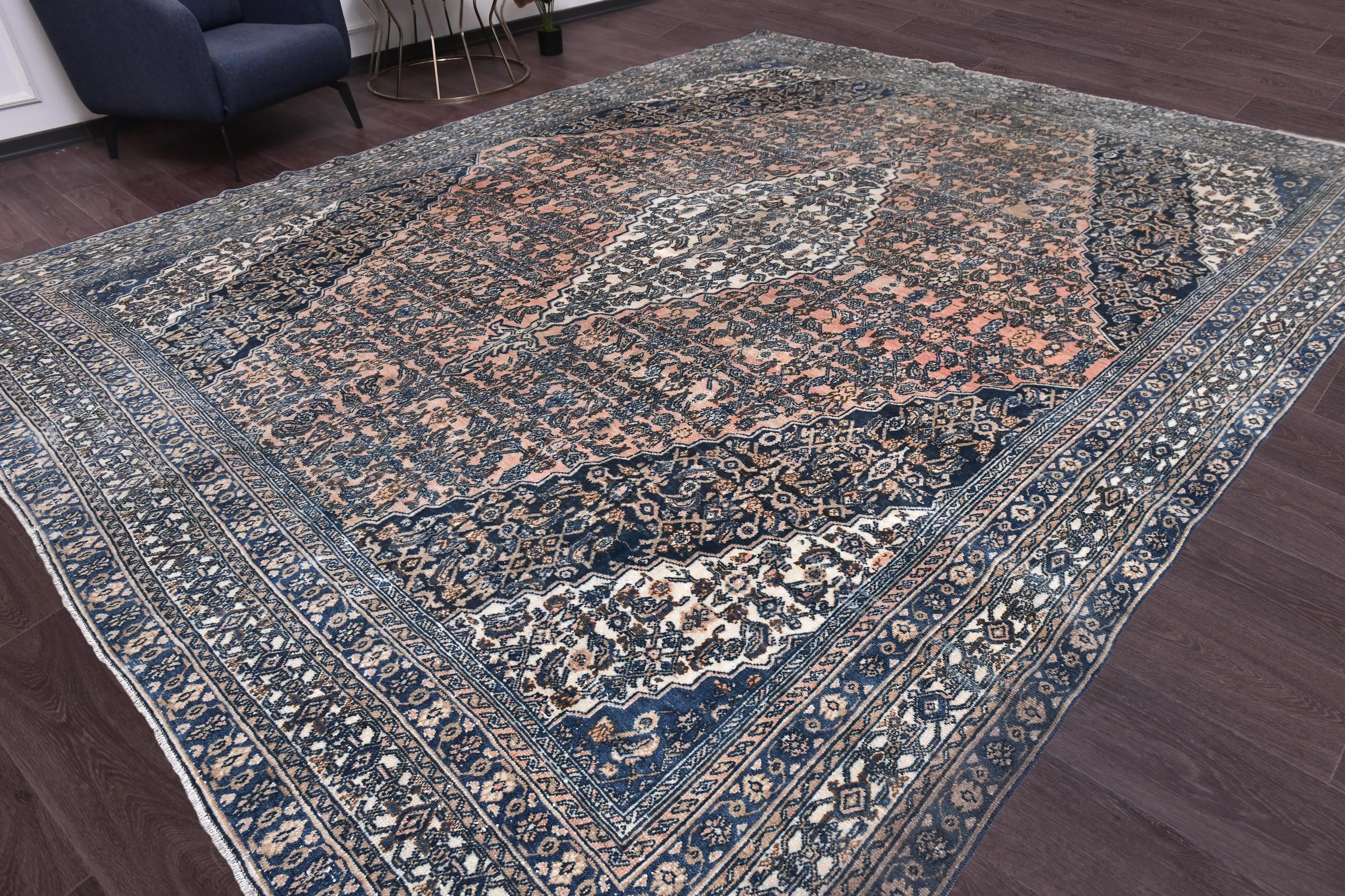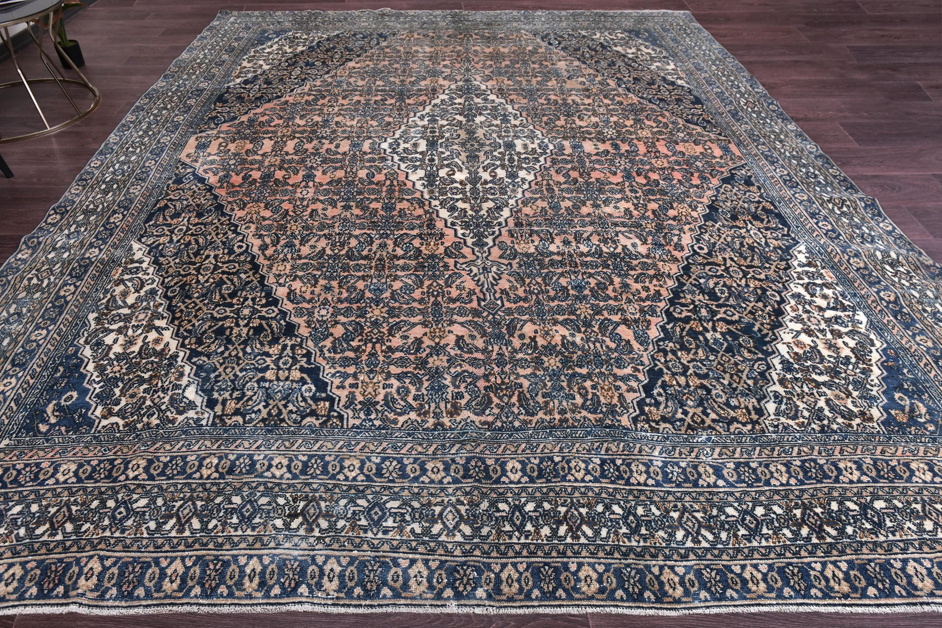 10x13 Antique Persian Area Rug, Brown, Salmon, Navy Blue Color Rug, 10x13 Handmade Luxury Rug, Large Area Rug, 10x13 Rug, Traditional Rug, Genuine Rug 10x13, 10x13 Vintage Rug, Handmade Wool Rug, Handwoven Rug, Oriental Persian Rug, 10x13 Living Room Rug, 10x13 Bedroom Rug, 10x13 Kithcen Rug, 10x13 Oversize Persian Rug, Soft Rug, Wool Area Rug