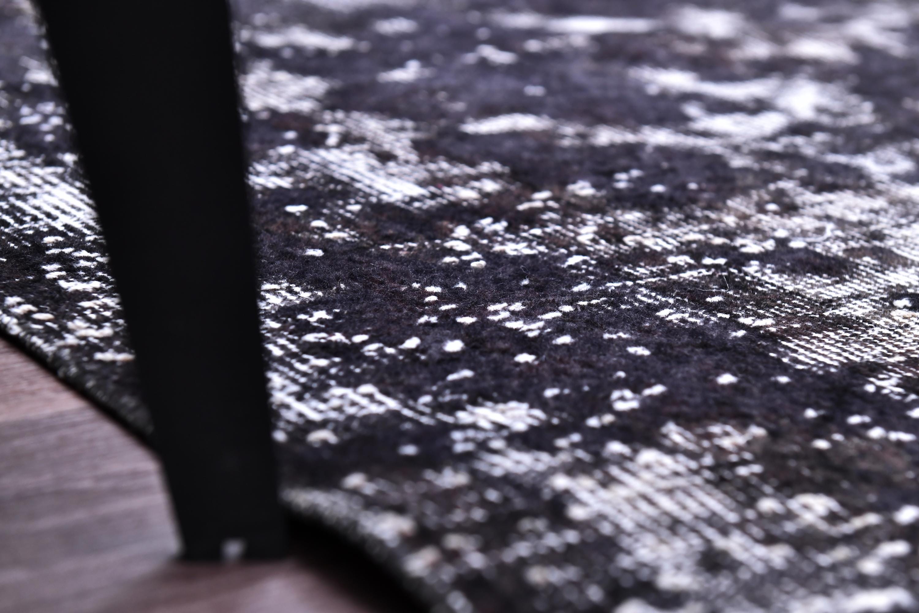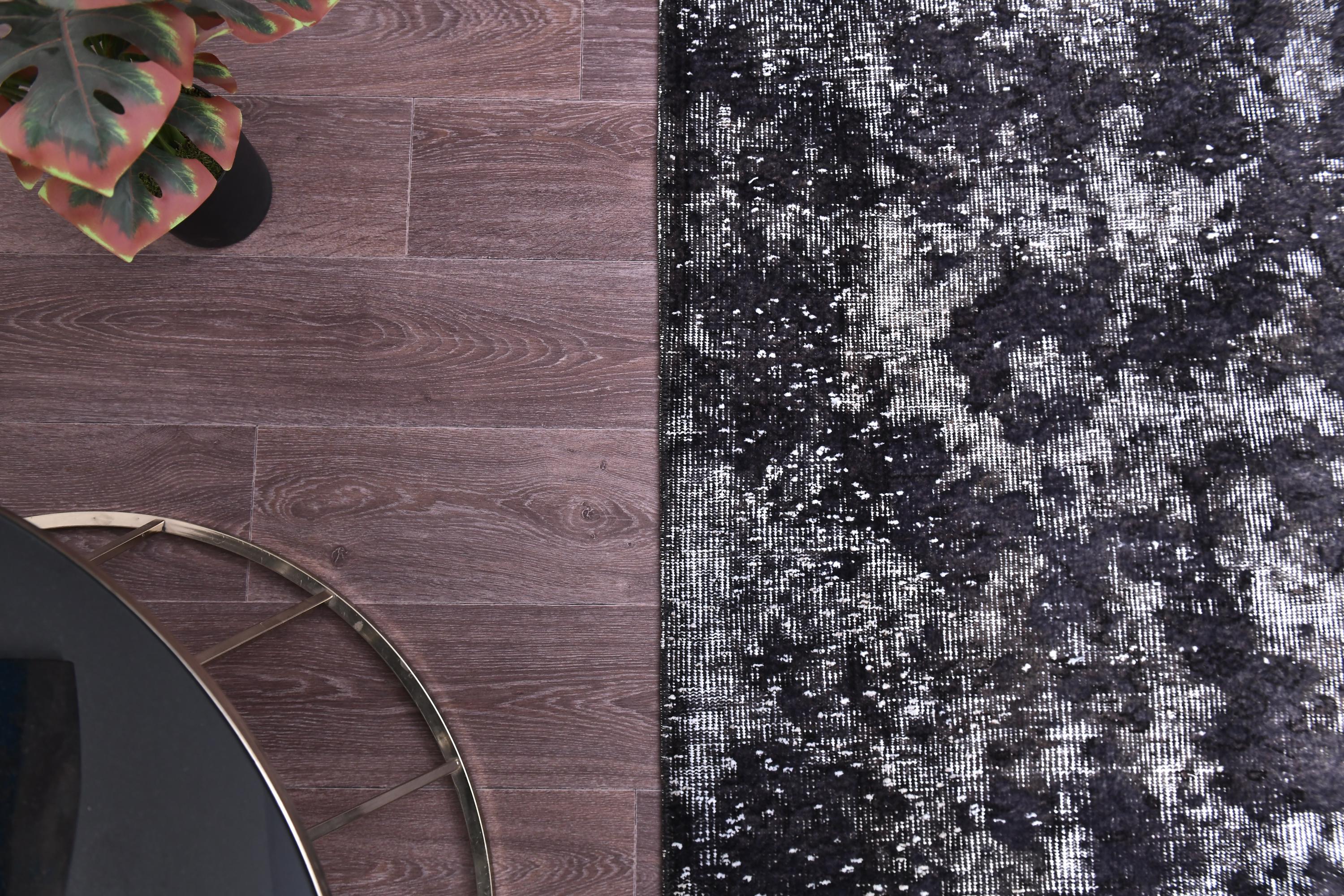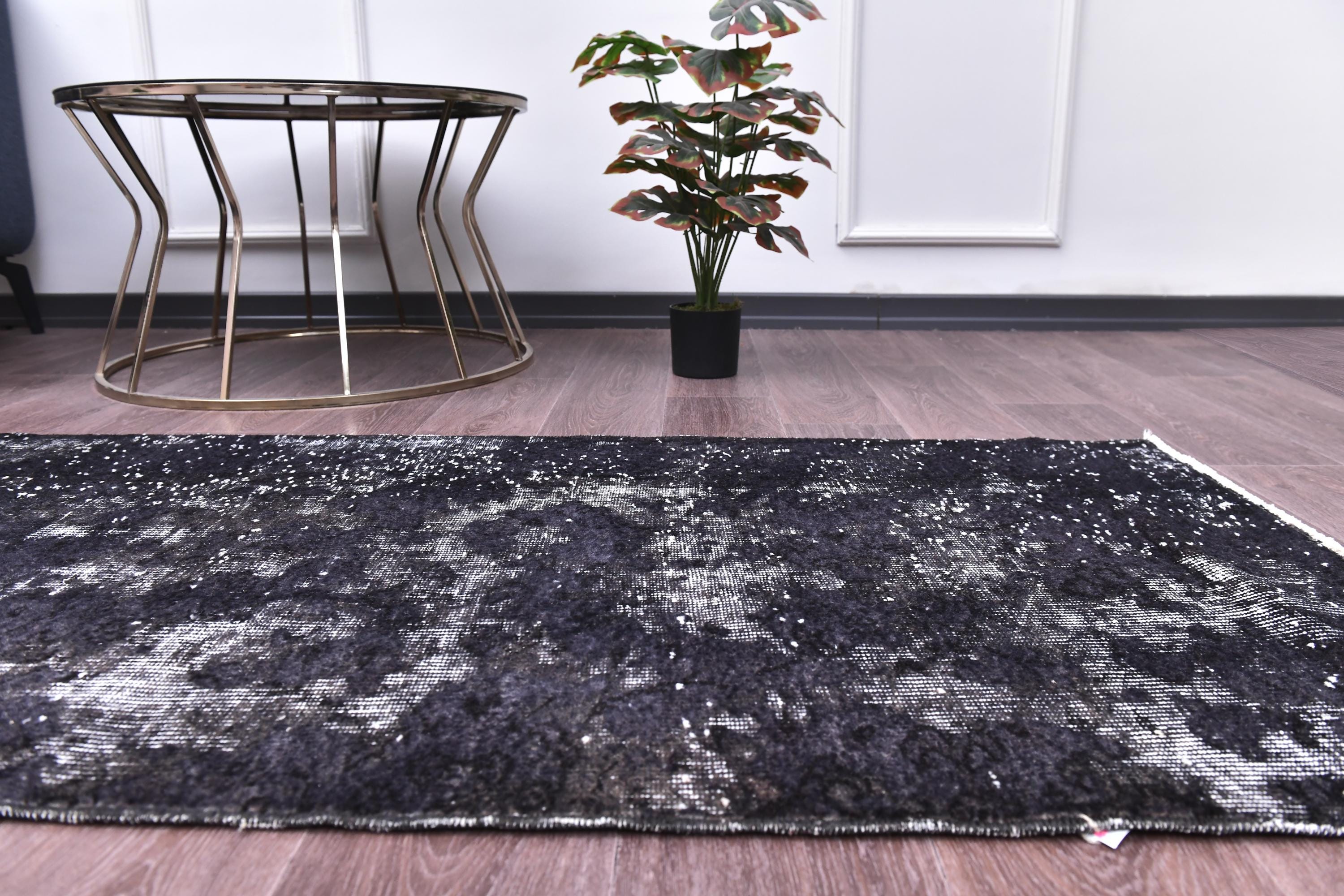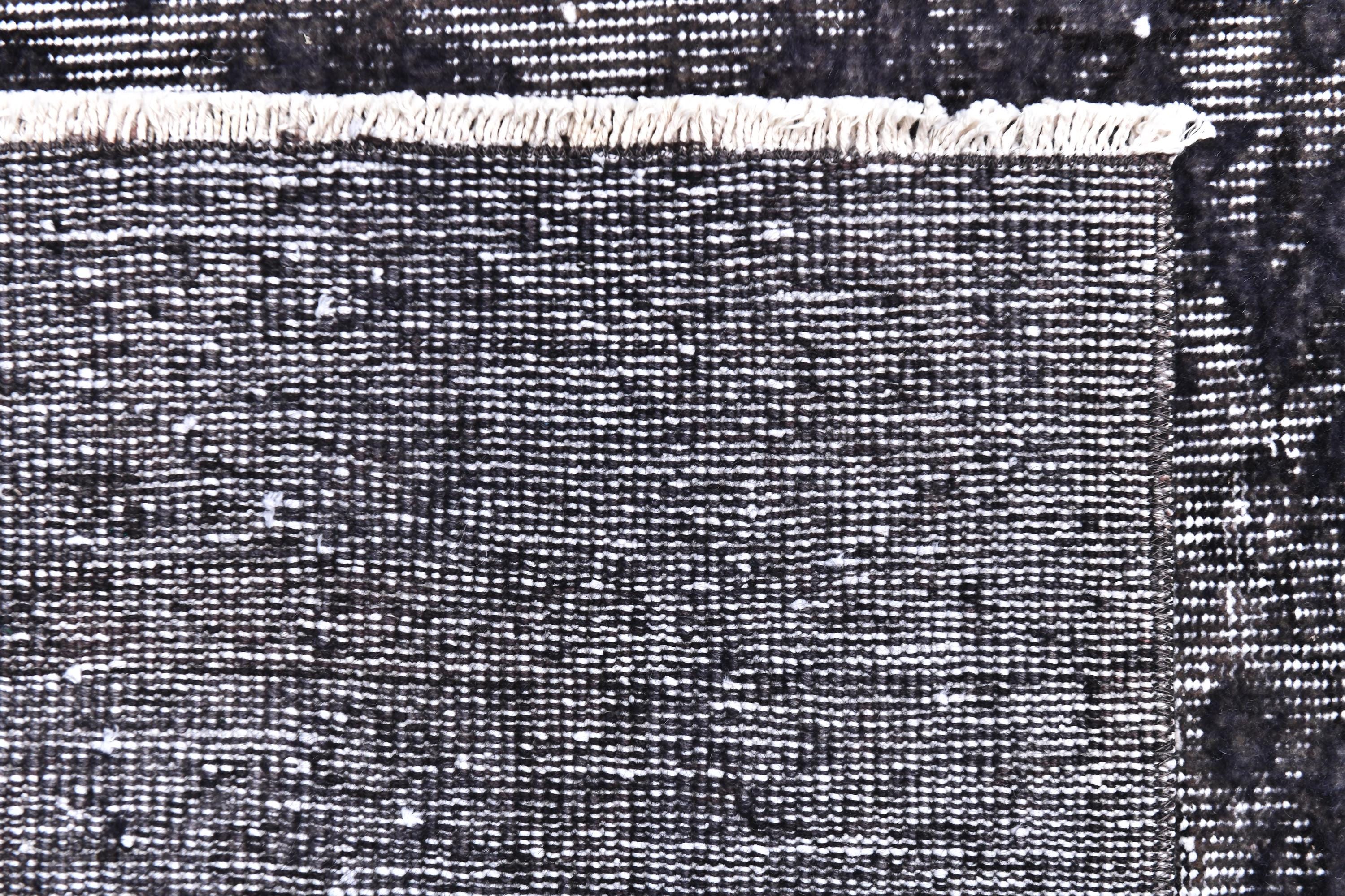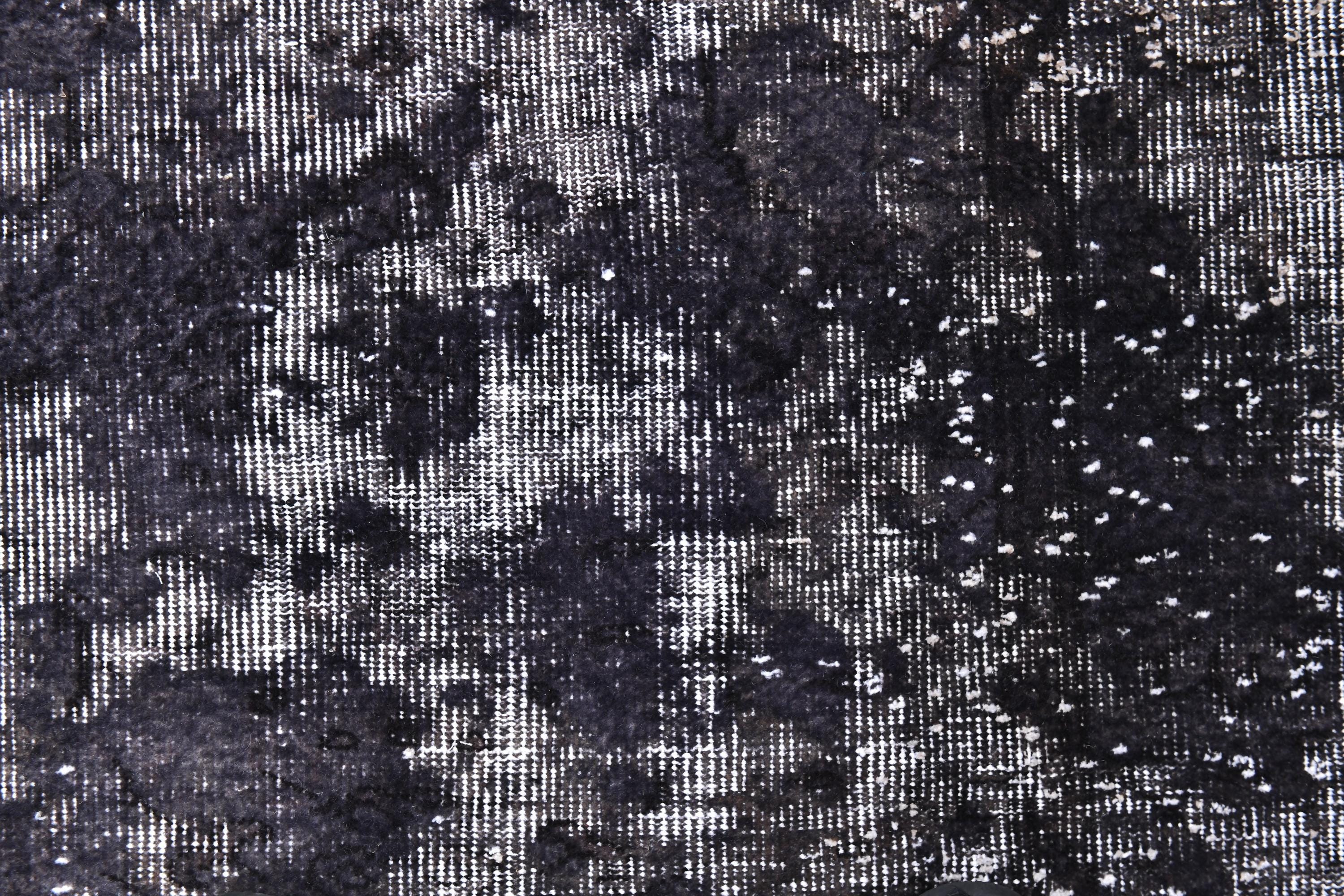 📜📌 Hand-knotted Turkish wool runner carpet transformed with black overdye process, revealing hints of gray and silver undertones. The 2x6 feet long hallway rug displays heavily distressed vintage patterns emerging through the dark surface, creating unique textured depth. Fringed edges and authentic aged patina make this modern black runner ideal for contemporary homes, offices, and minimalist interiors.