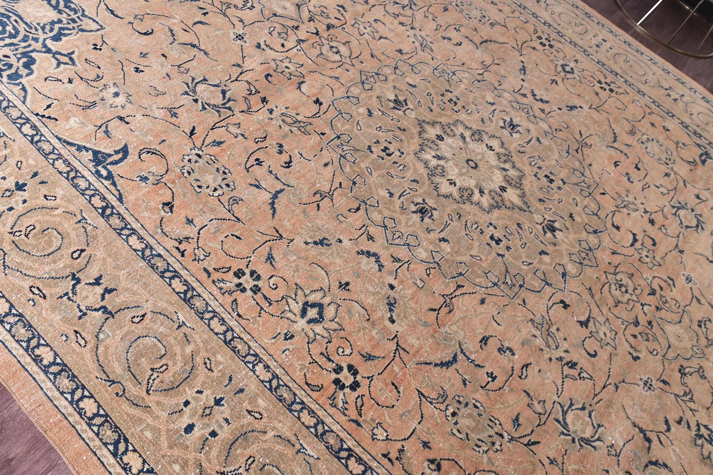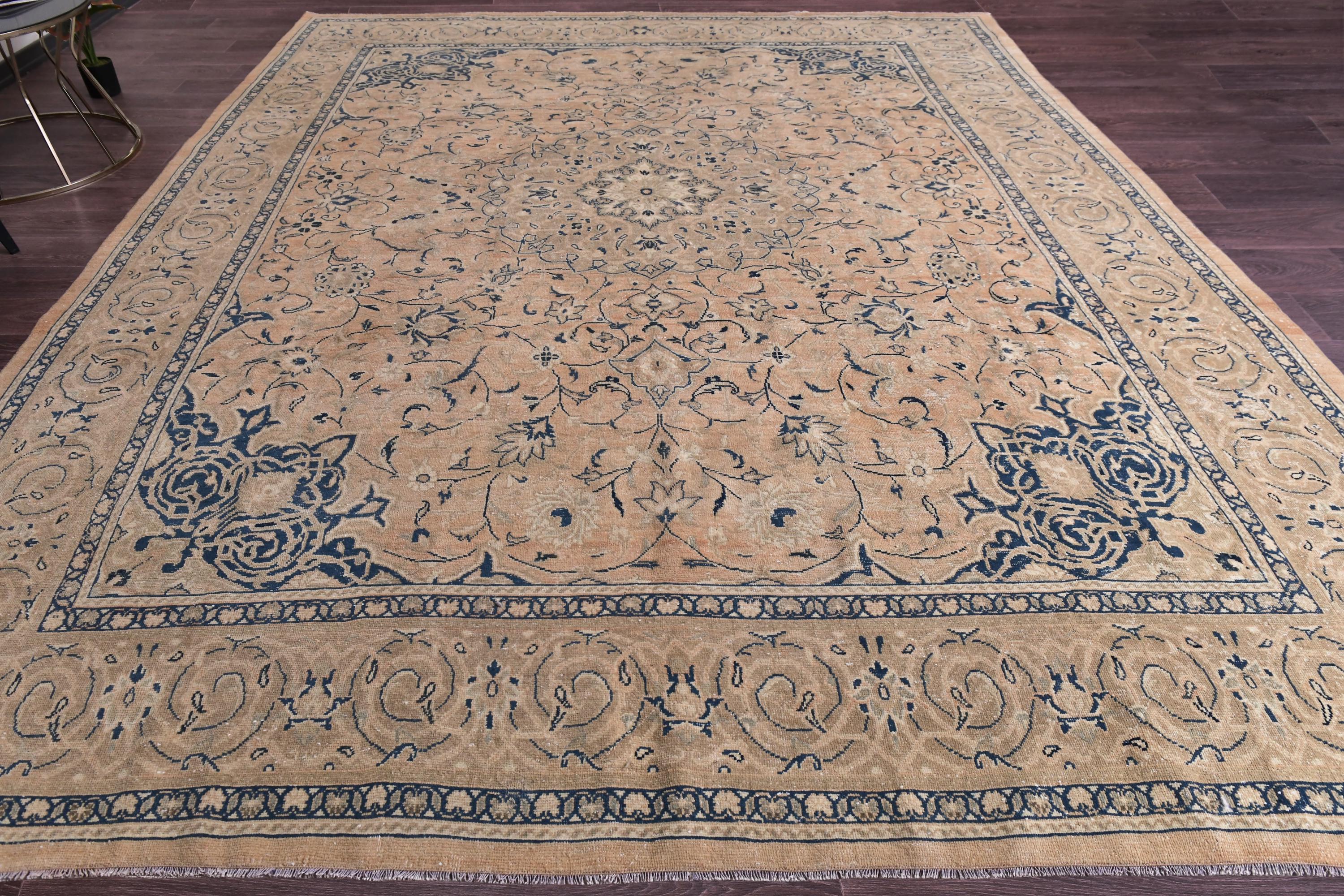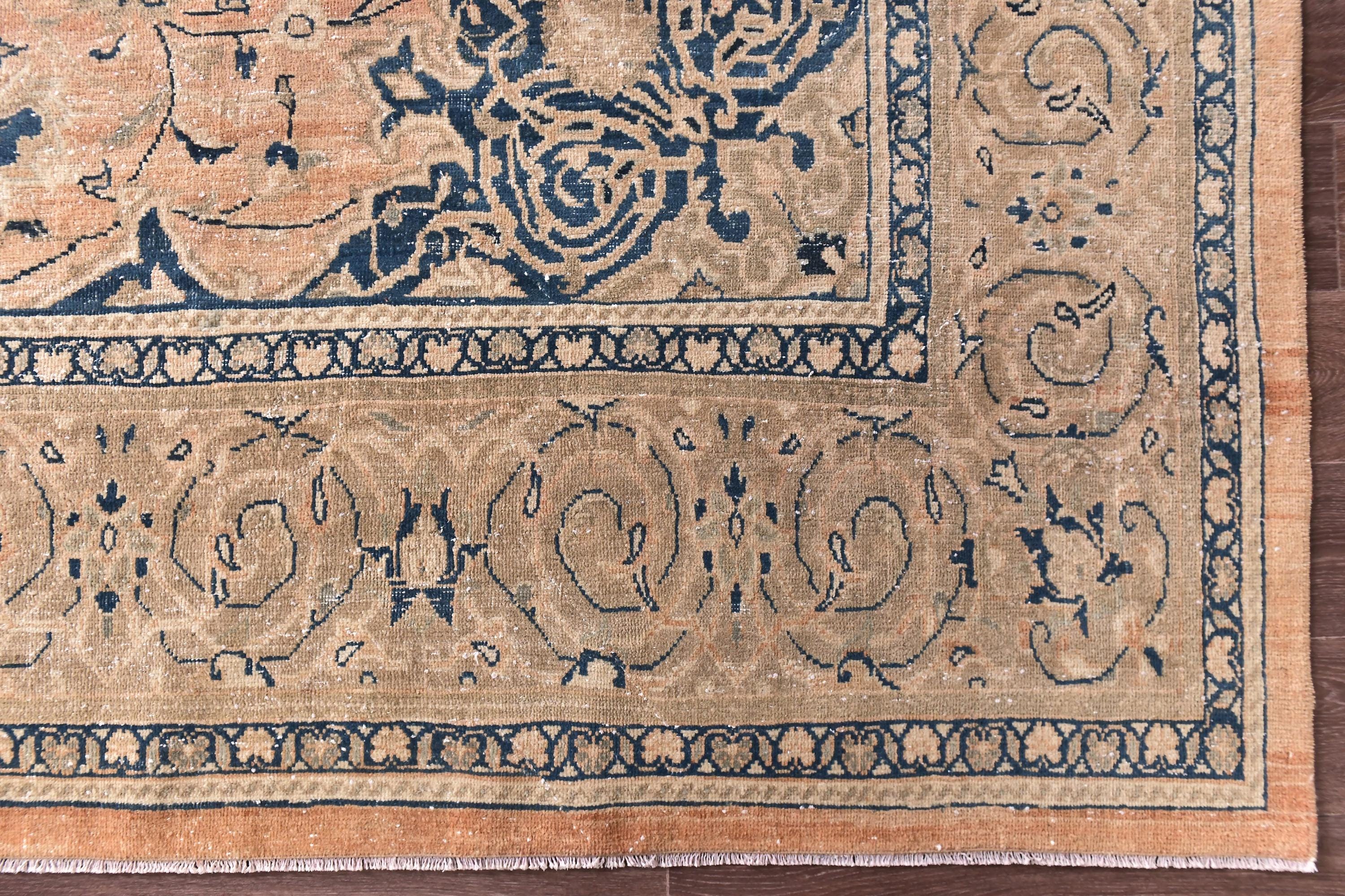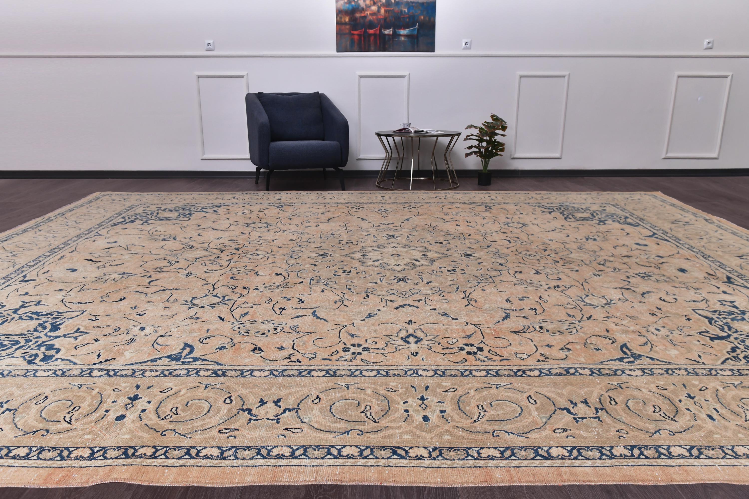 9x13 Antique Persian Area Rug, 9x13 Salmon Blue Brown Color, Oriental Rug, 9x13 Living Room Decor, 9x13 Oversize Rug, Handmade Wool Rug
