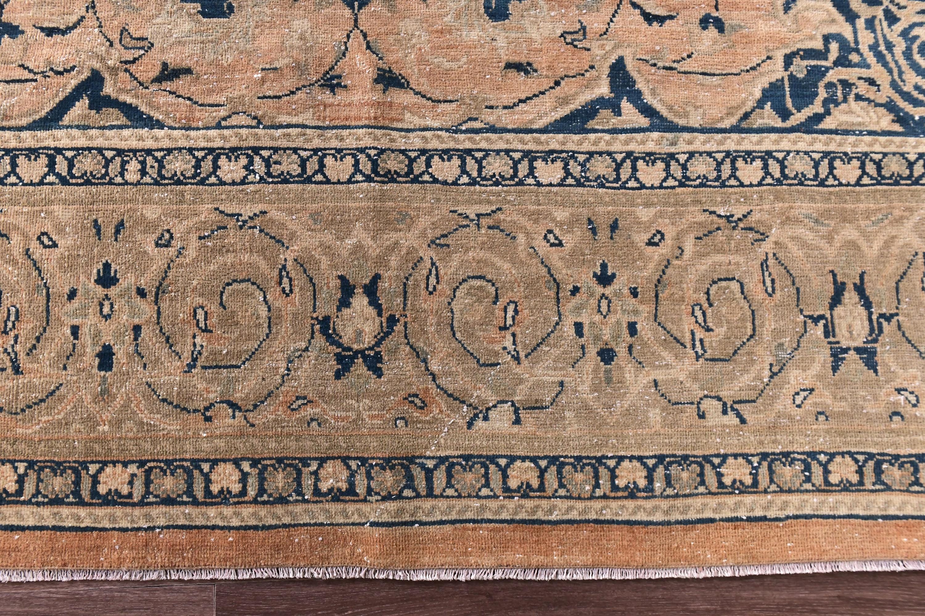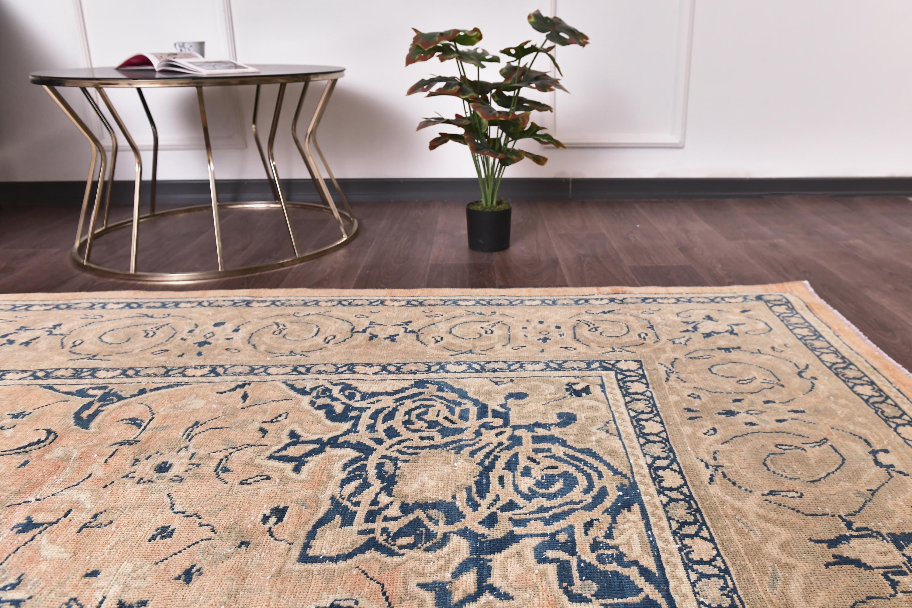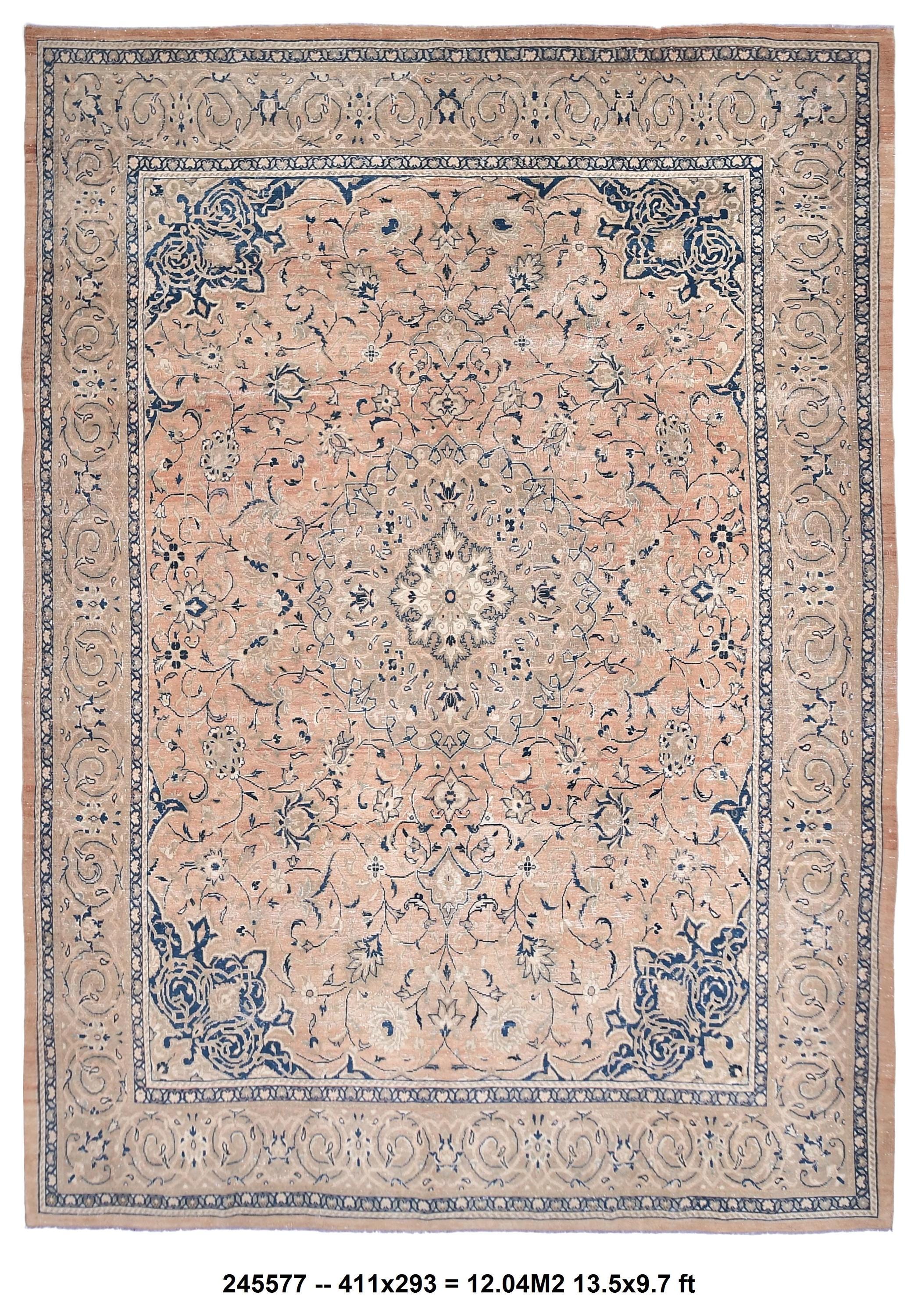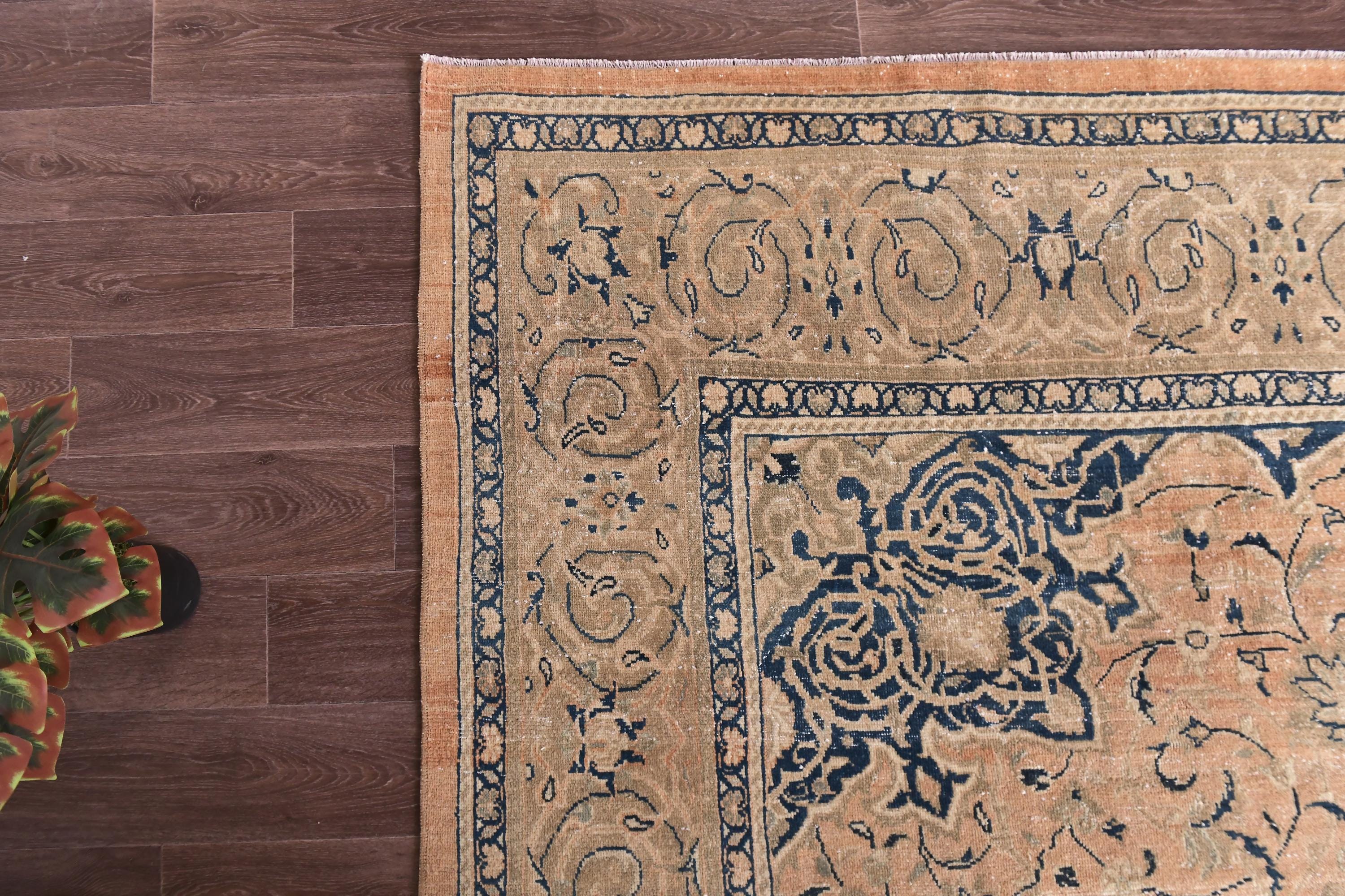 9x13 Antique Persian Area Rug, 9x13 Salmon Blue Brown Color, Oriental Rug, 9x13 Living Room Decor, 9x13 Oversize Rug, Handmade Wool Rug