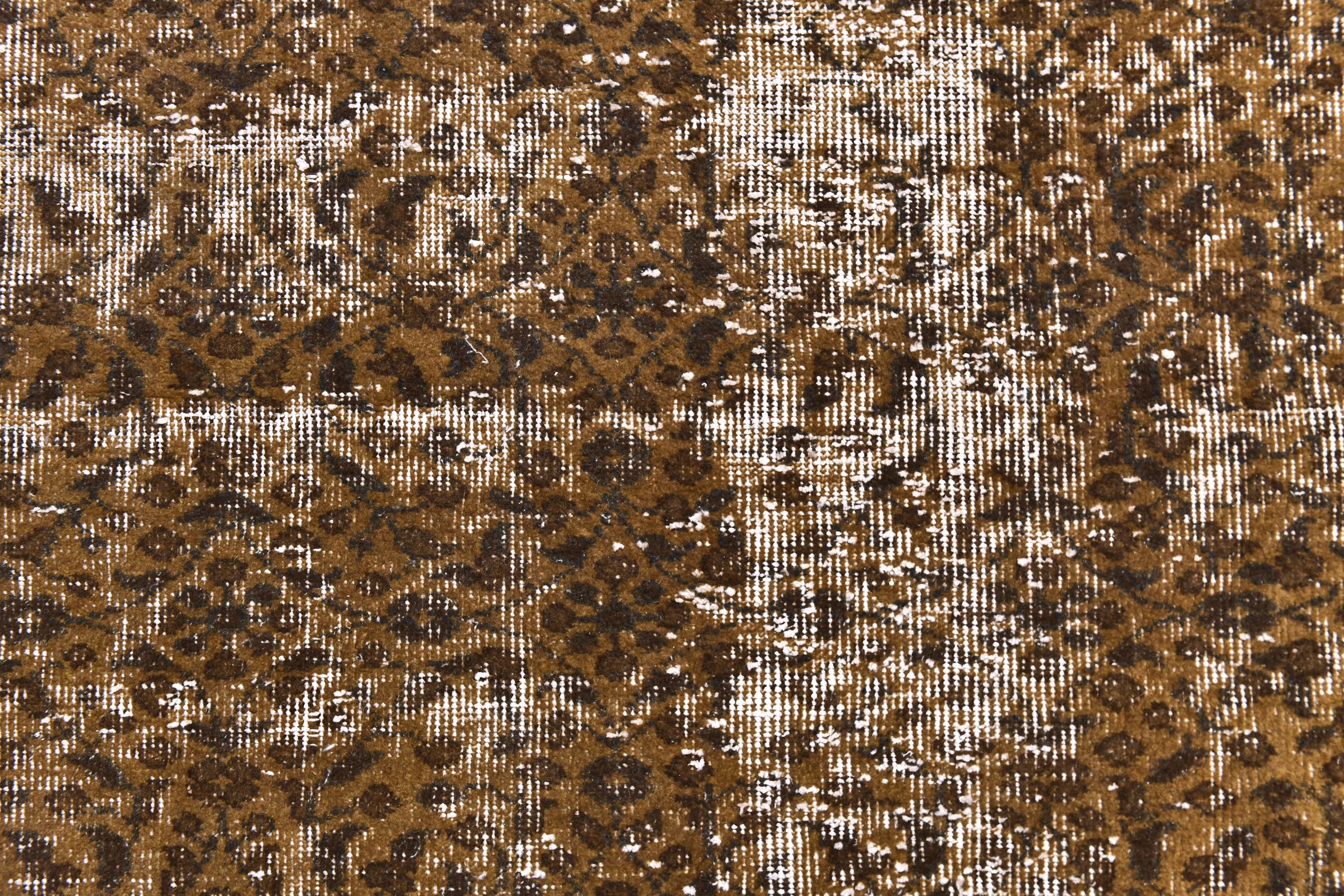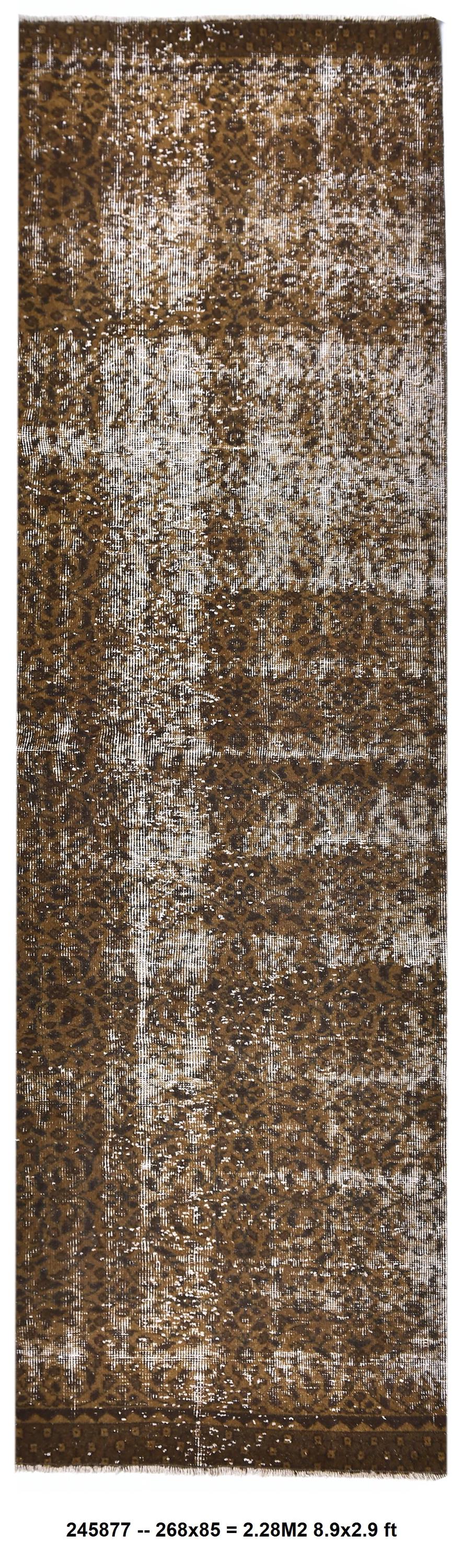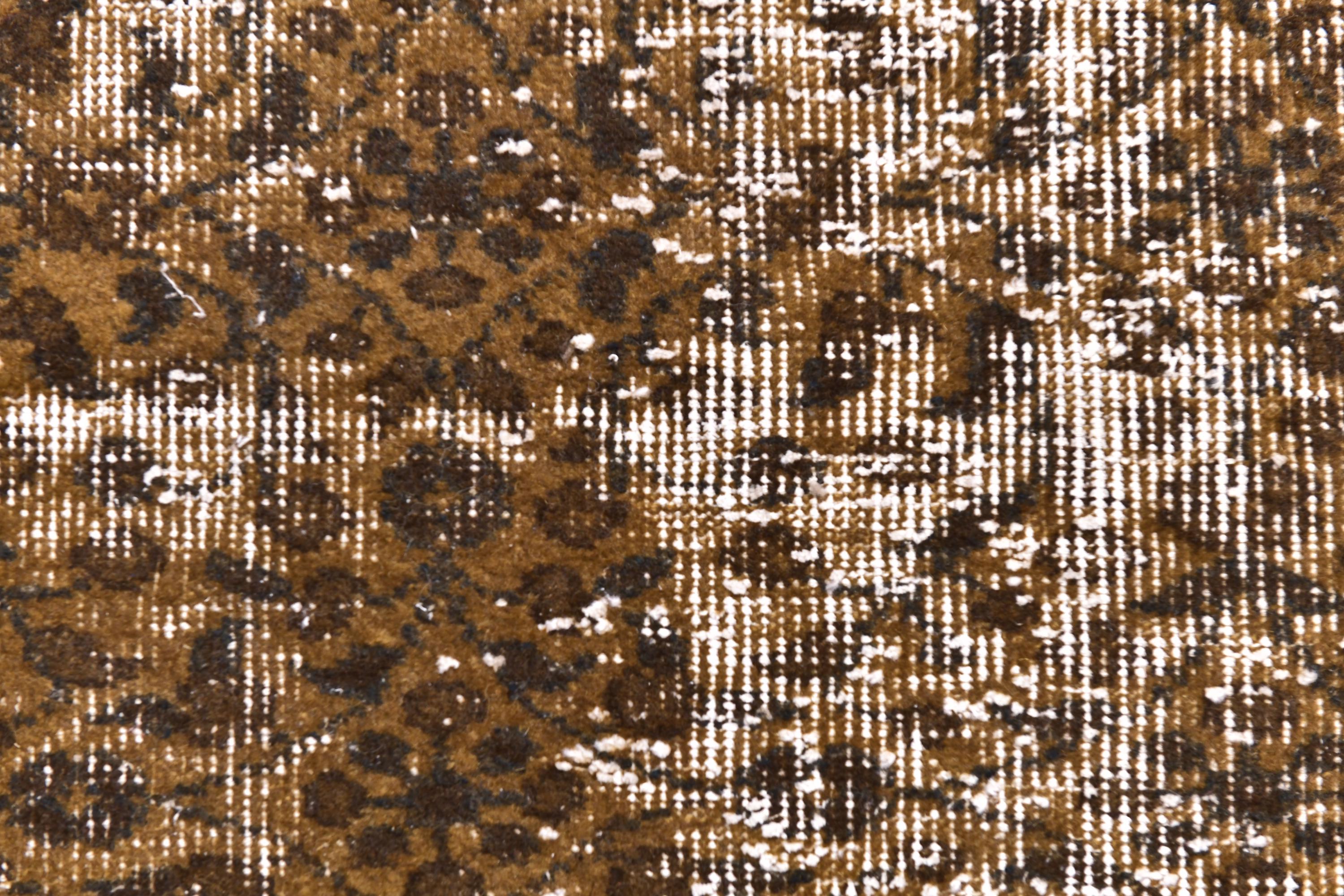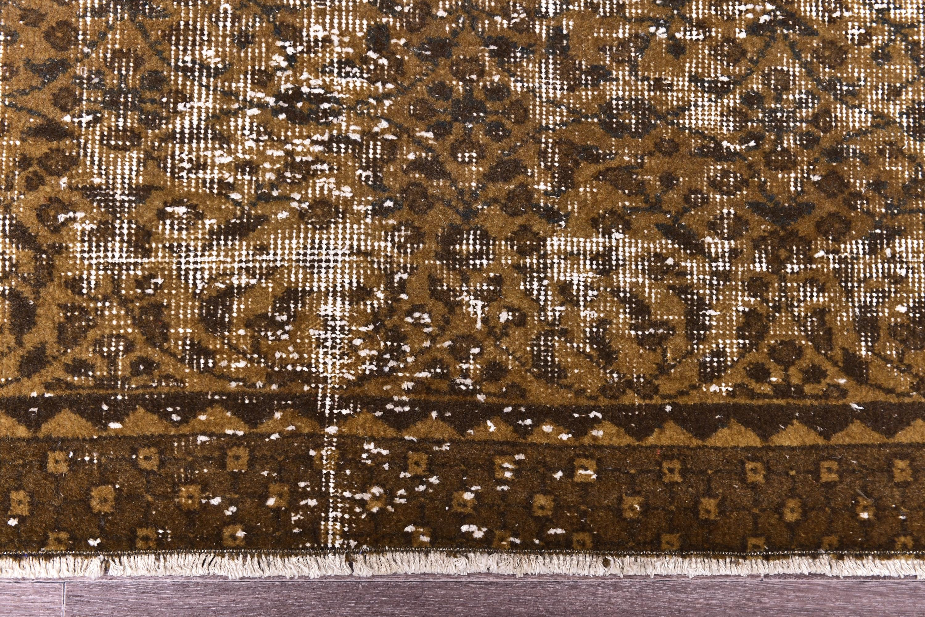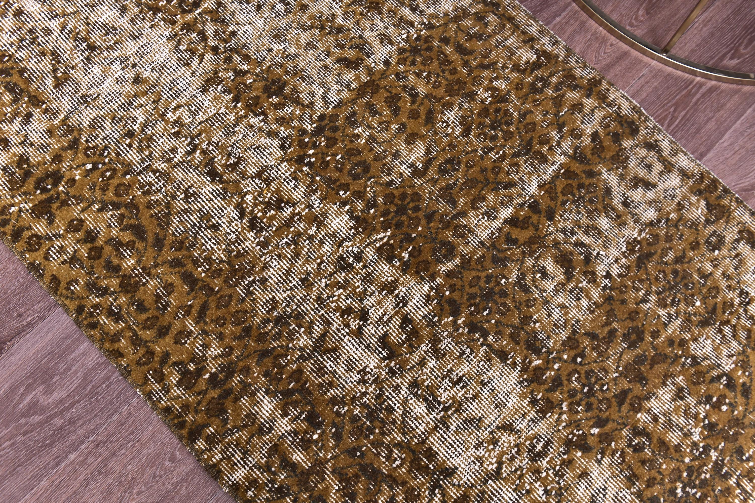 📜📌 Overdyed vintage Turkish runner rug in rich chocolate brown and gray tones with distressed weathered finish. This hand-knotted wool carpet features a faded traditional pattern beneath the overdye treatment, creating depth and texture. The low-profile pile and muted earthy palette make it perfect for modern, industrial, or bohemian hallway and entryway spaces.