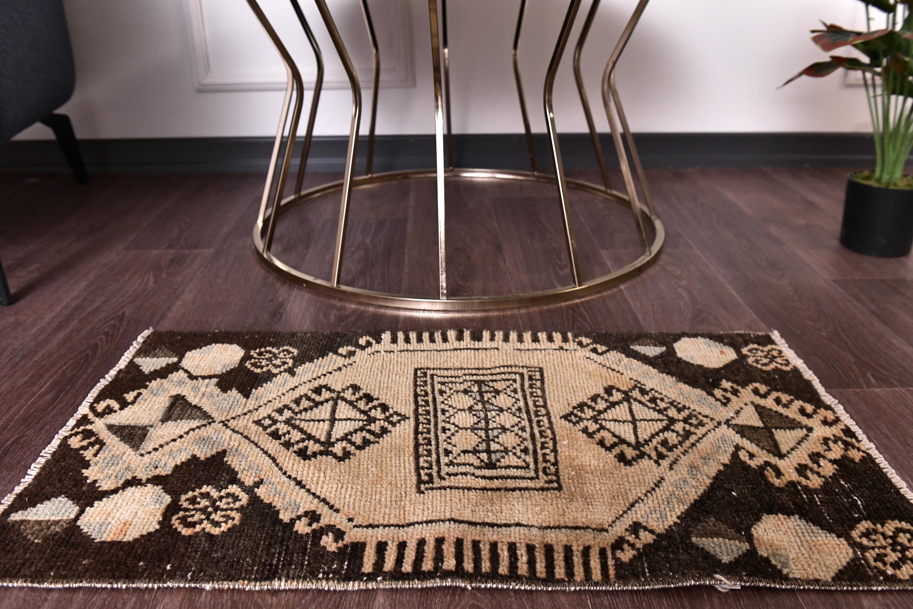 1x3 Colorful Geometric Doormat, Handwoven Decorative Entrance Rug, 1x3 Doormat Rug, Vintage Bath Mat, 1x3 Accent Rug, Traditional Rug 1x3