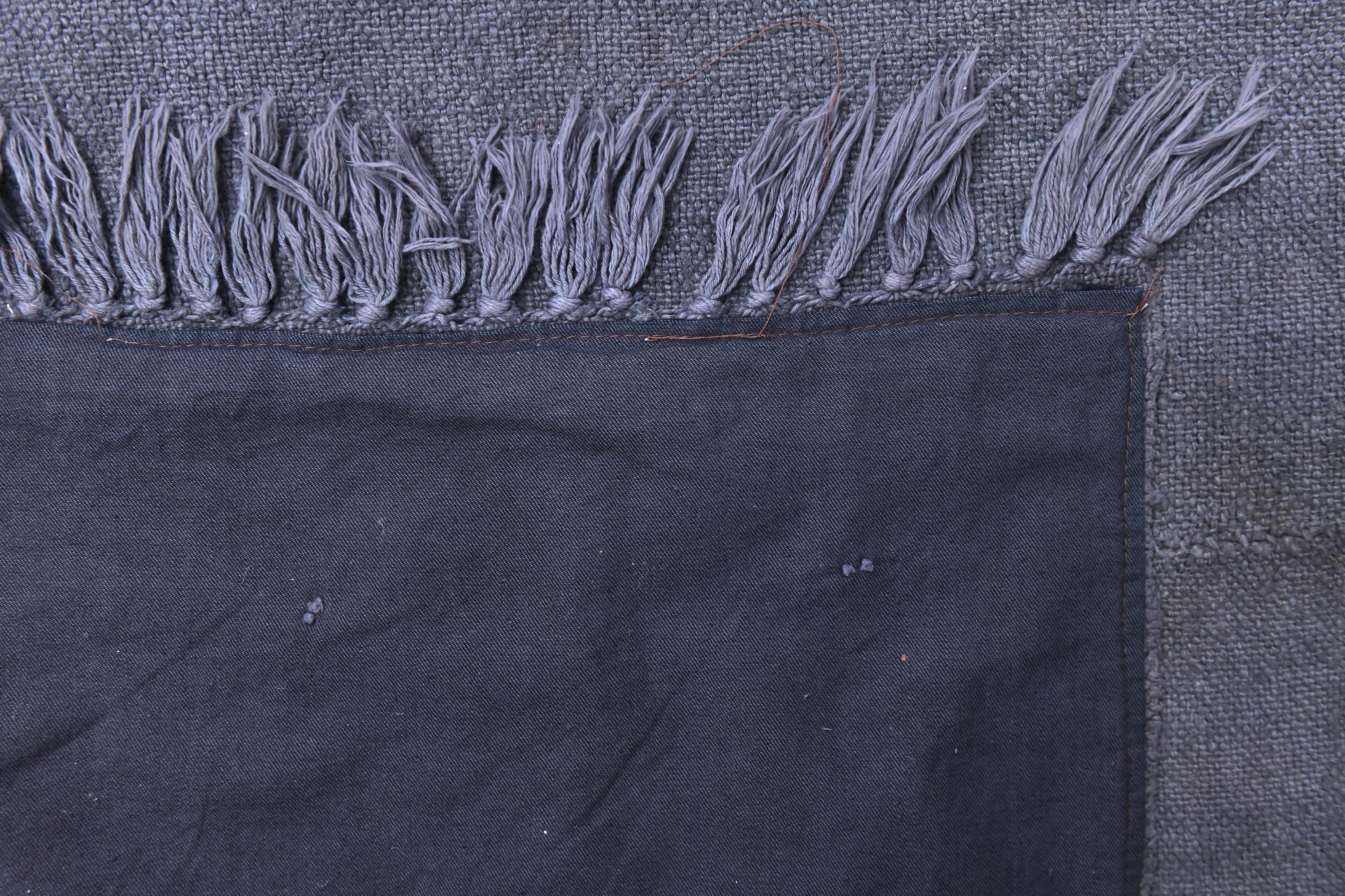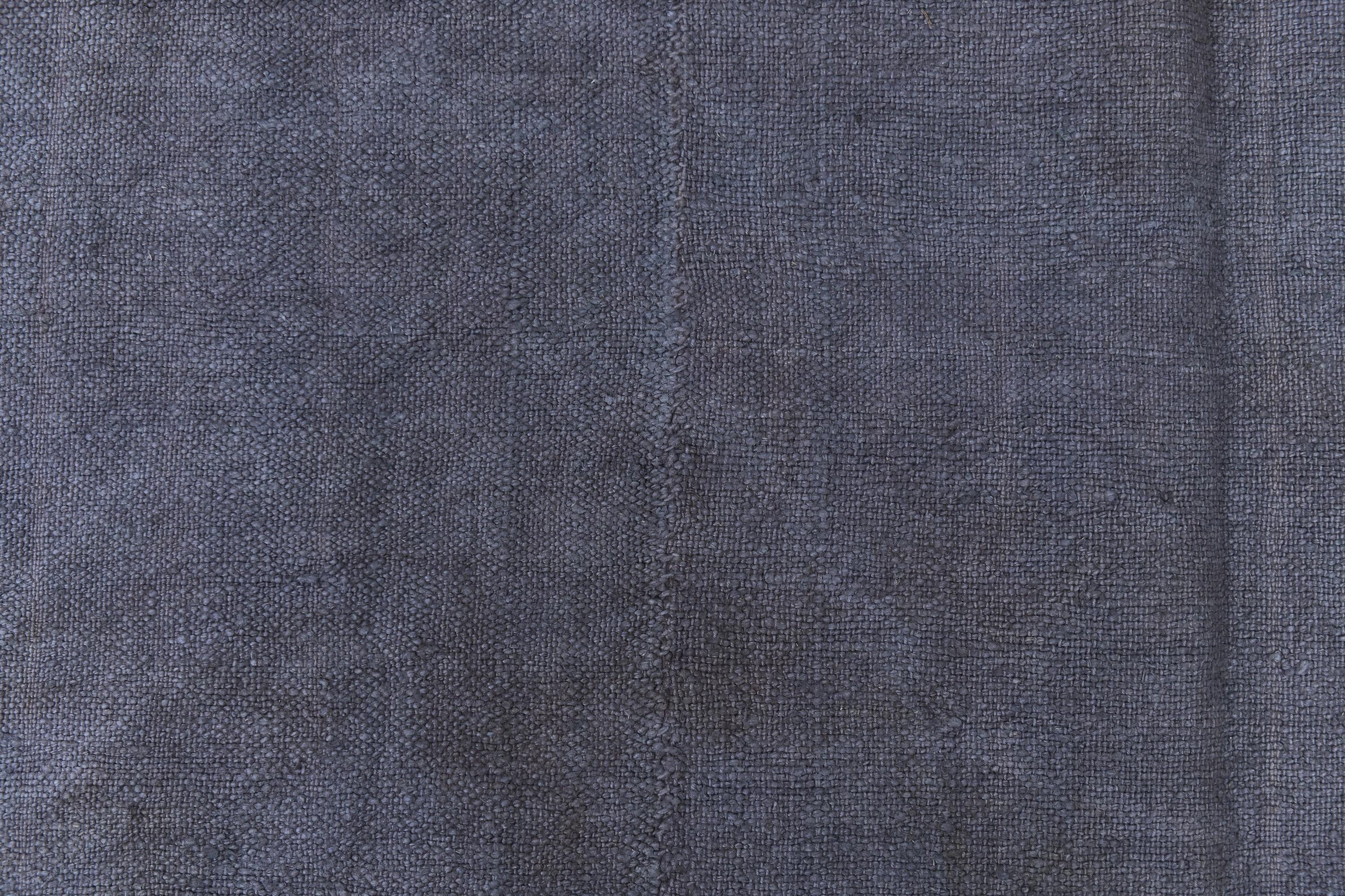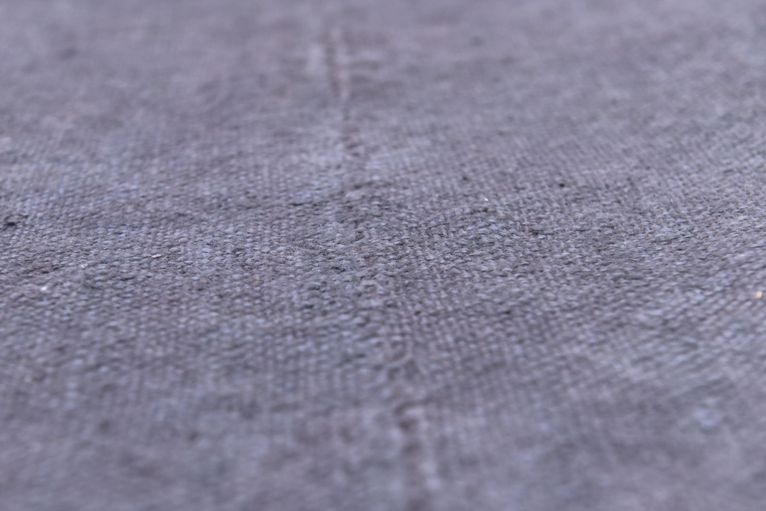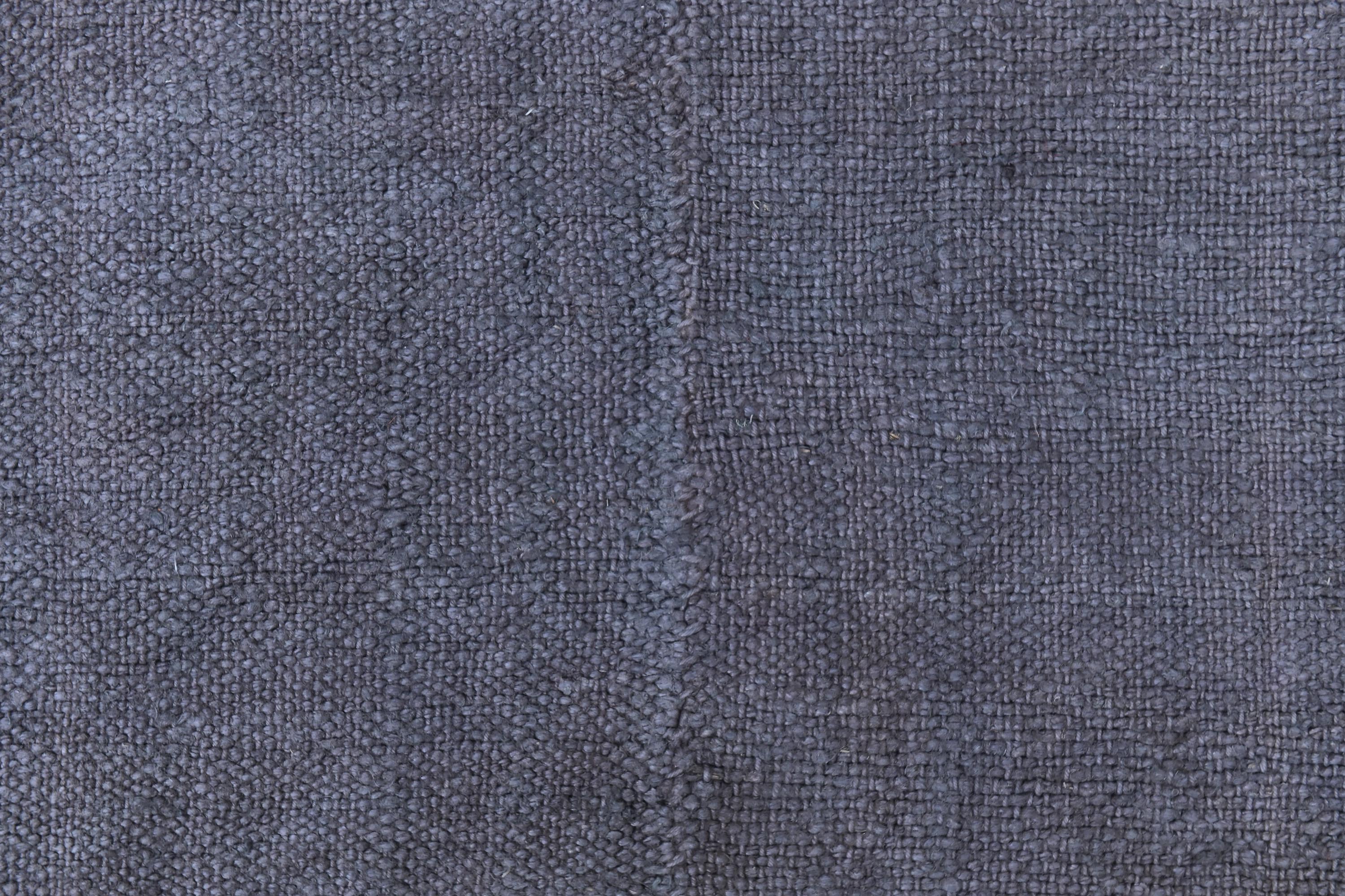 📜📌 Vintage hand-woven Turkish kilim rug in solid slate gray with natural wool texture and knotted fringe edges, displayed on hardwood floor in a modern room