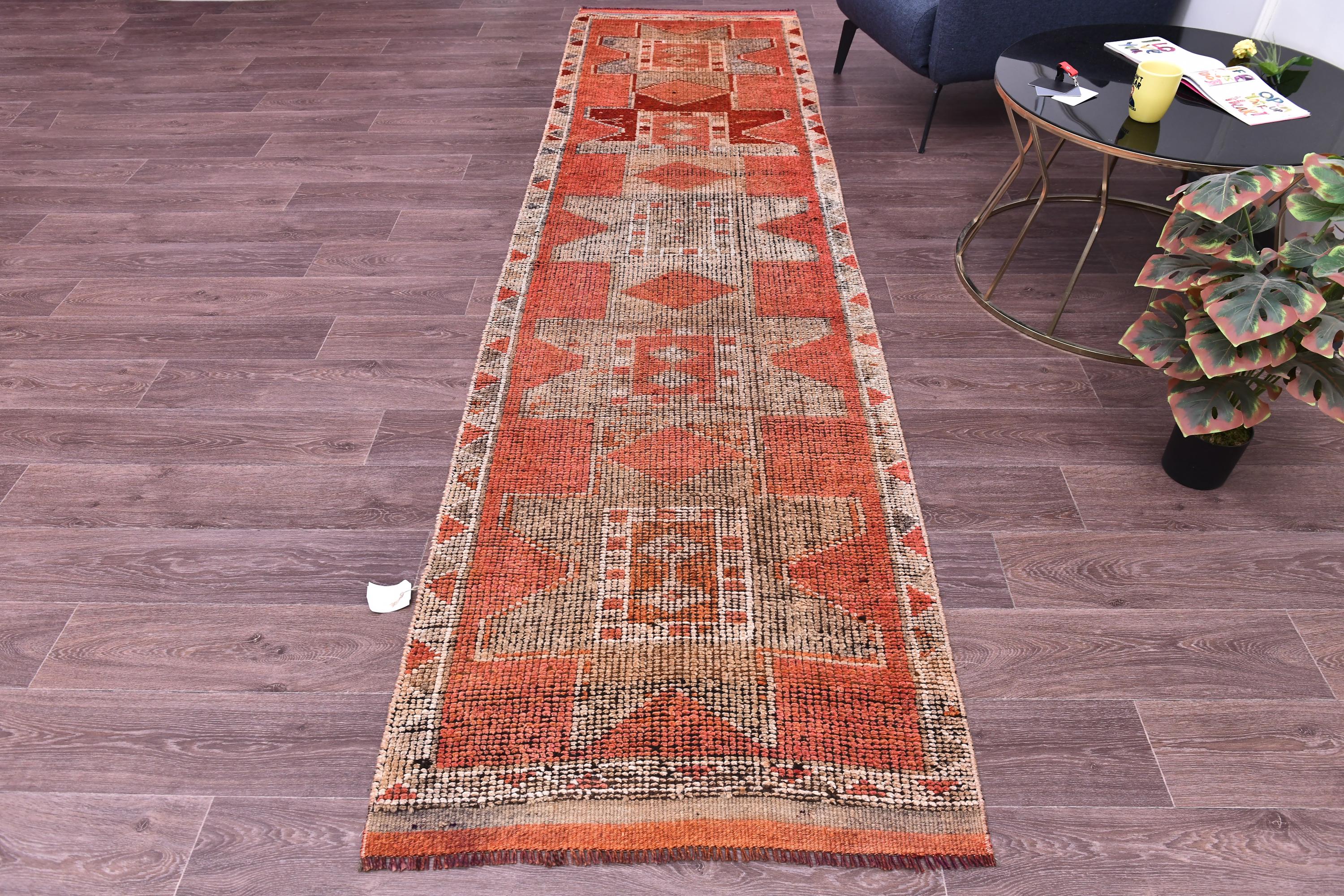3x13 Vintage Turkish Runner Rug, 3x13 Turkish Hand Knotted Hallway Rug, 3x13 Brown Color Rug, Handmade Wool Rug, 3x13 Wool Hallway Rug, Hallway Decor, 3x13 Handmade Hallway Rug, 3x13 Terracotta Runner Rug, 3x13 Brown Rug, Soft Wool Rug, Tribal Rug, Doorway Rug, 3x13 Vintage Runner,