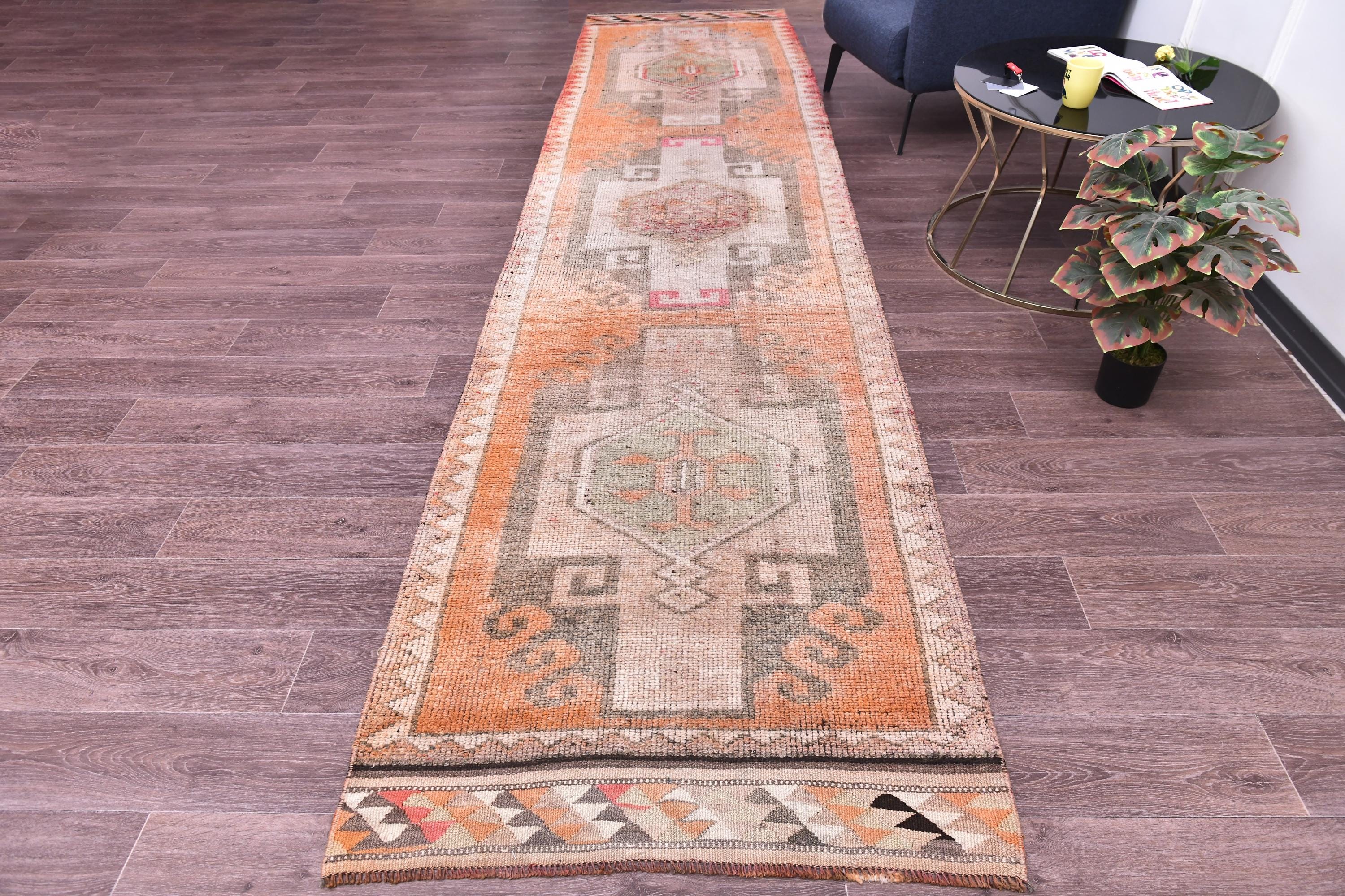 3x13 Vintage Turkish Runner Rug, 3x13 Turkish Hand Knotted Hallway Rug, 3x13 Brown Color Rug, Handmade Wool Rug, 3x13 Wool Hallway Rug, Hallway Decor, 3x13 Handmade Hallway Rug, 3x13 Terracotta Runner Rug, 3x13 Brown Rug, Soft Wool Rug, Tribal Rug, Doorway Rug, 3x13 Vintage Runner,